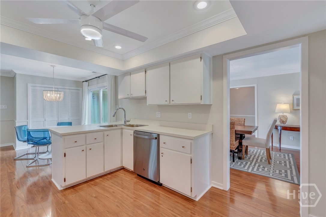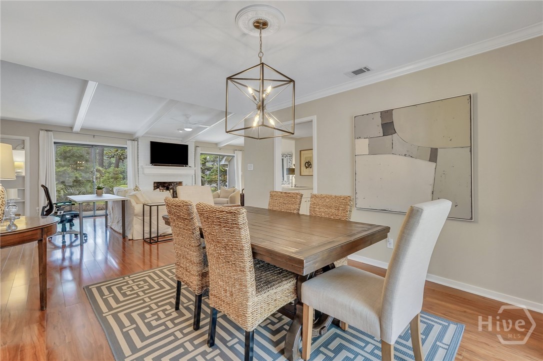 Welcome to your new sanctuary! Nestled in a serene neighborhood, this 3 bed/2 bath home offers the perfect blend of comfort and style. Step inside to discover a spacious living area adorned with a cozy fireplace and vaulted ceiling, The kitchen boasts stainless steel appliances while the adjacent dining area provides the perfect setting for meals. Relax and unwind in the comfort of three well-appointed bedrooms, each offering ample space and natural light. The primary suite features a private bath and loads of natural light. Wood floors throughout the home add warmth. The garage has easy to care for epoxy floors. Outside, a landscaped yard with patio awaits, complete with a sprinkler system for easy upkeep. The fenced side yard allows for private outdoor time. Some amenities require an additional membership. Roof, HVAC and water heater newer. This home would also make a wonderful monthly or long term rental.