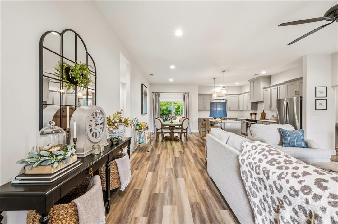Amazing home in a highly desirable location! This split, open floor plan offers both comfort and functionality, perfect for modern living. The gorgeous gourmet kitchen features custom cabinetry, a designer island, and ample space for cooking and entertaining. The dining area overlooks a peaceful wooded backdrop, creating the perfect setting for everyday meals or special gatherings. The spacious primary suite is a true retreat, complete with a separate walk-in shower, separate soaker tub, double vanities, and an oversized walk-in closet. An expanded laundry room with a folding counter and abundant storage adds convenience to your daily routine. All bedrooms are generously sized with ample closet space throughout. Step outside to enjoy the relaxing covered patio, watch the wildlife as this is an ideal spot for unwinding or entertaining guests. A storage building/workshop with electricity provides endless possibilities. No covenants—bring all your toys! Located just minutes from deep water boat access, this property is perfect for those looking to embrace the coastal lifestyle.