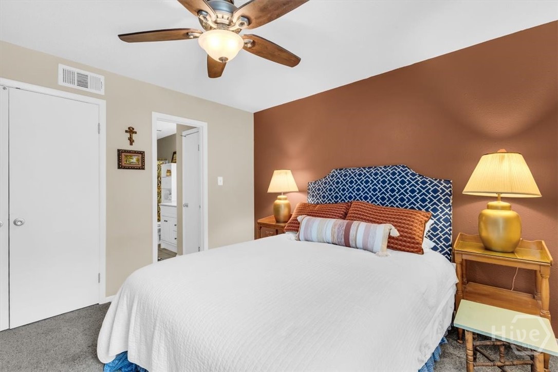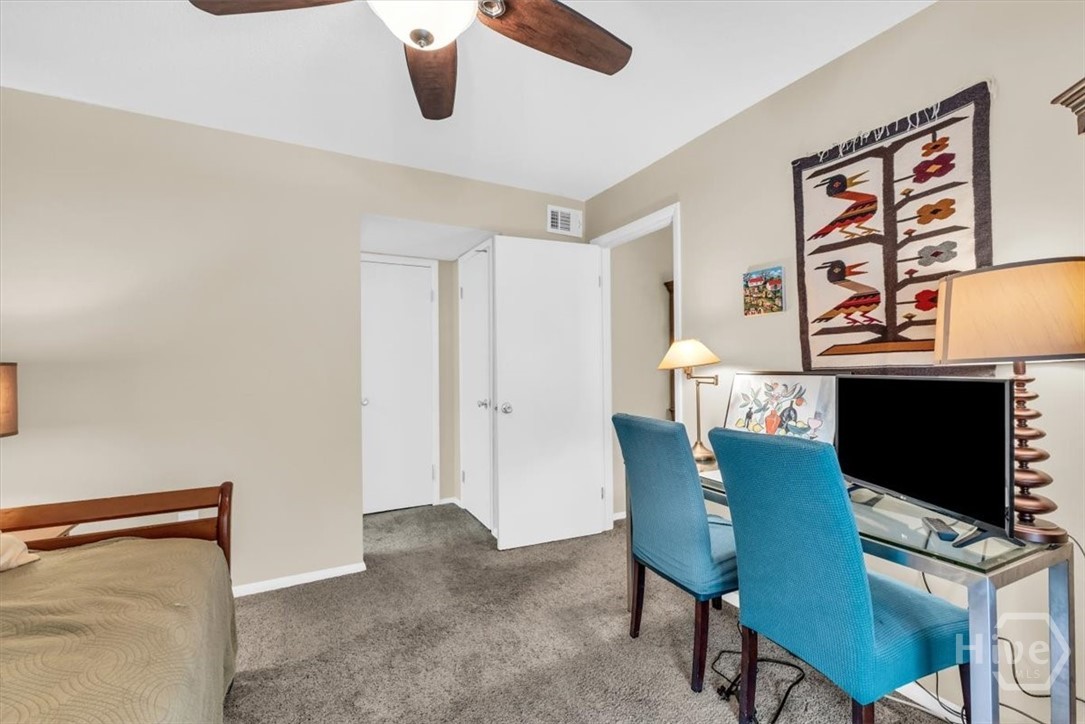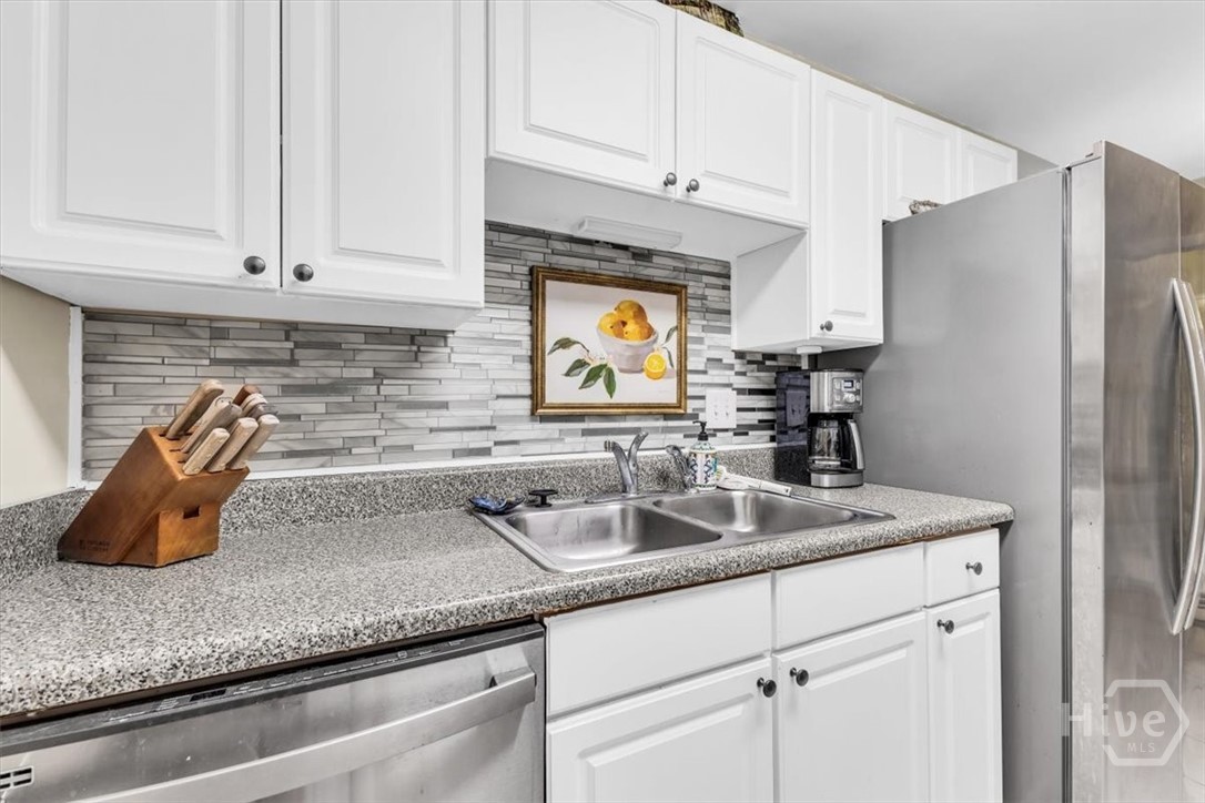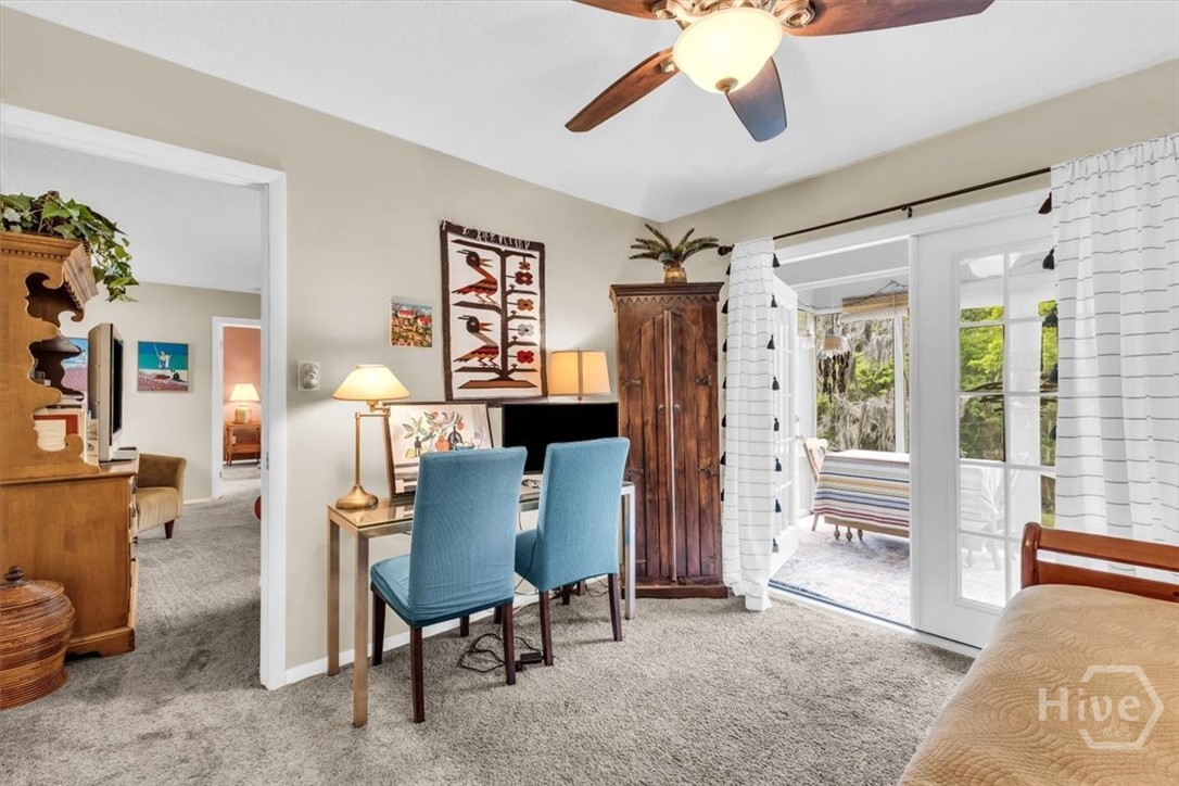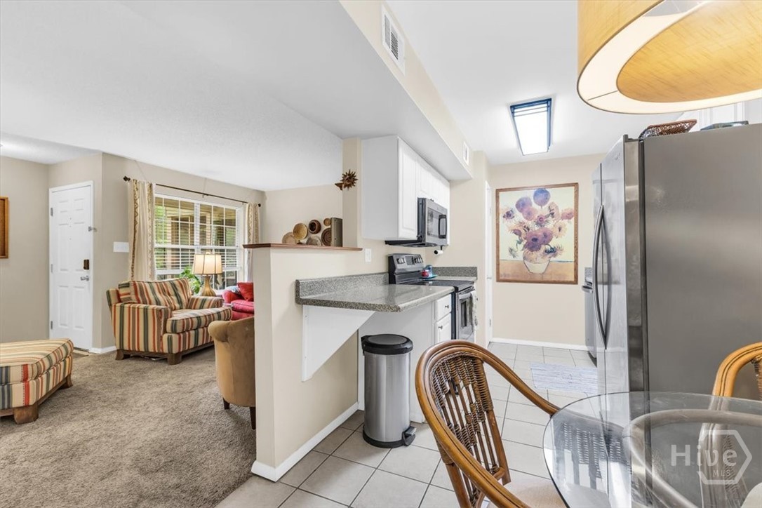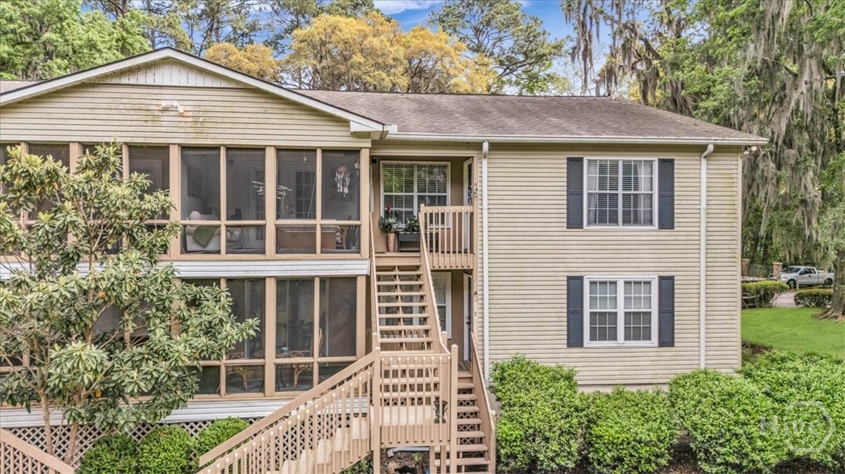 Charming 2BR/2BA second-floor condo on Wilmington Island featuring a bright, open split floor plan. The spacious living area flows into a well-appointed kitchen with stainless steel appliances, tiled backsplash, pantry, and generous cabinetry. The primary suite offers wooded views, French doors to a screened porch, dual closets, and a private ensuite bath. A separate guest bedroom and full bath provide ideal privacy. Additional highlights include a laundry room with storage, community pool, and picnic area. Conveniently located within walking distance of May Howard Elementary and just minutes from Saint Andrew’s School, Tybee Island, Savannah Country Club, YMCA, downtown Savannah, and more.