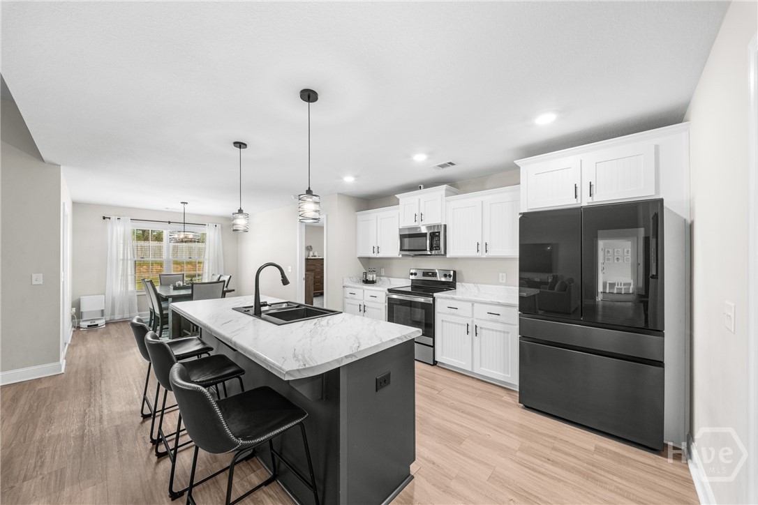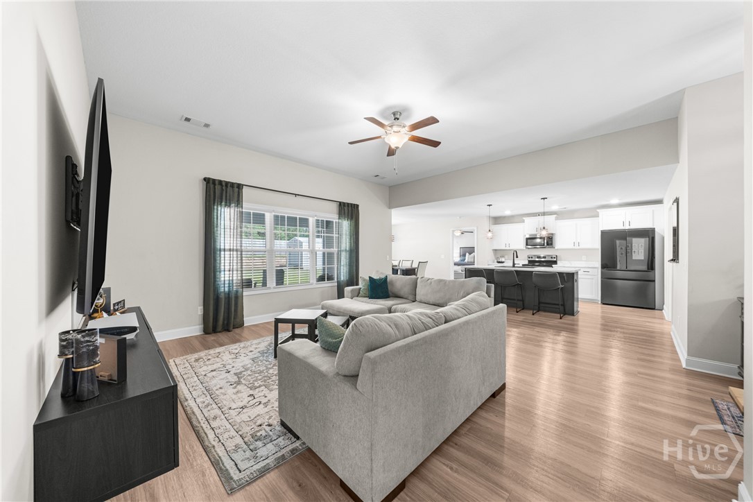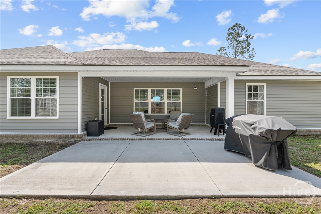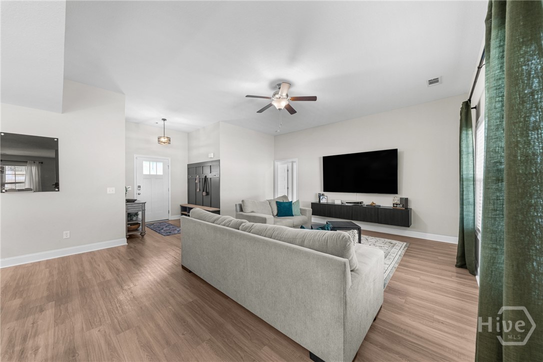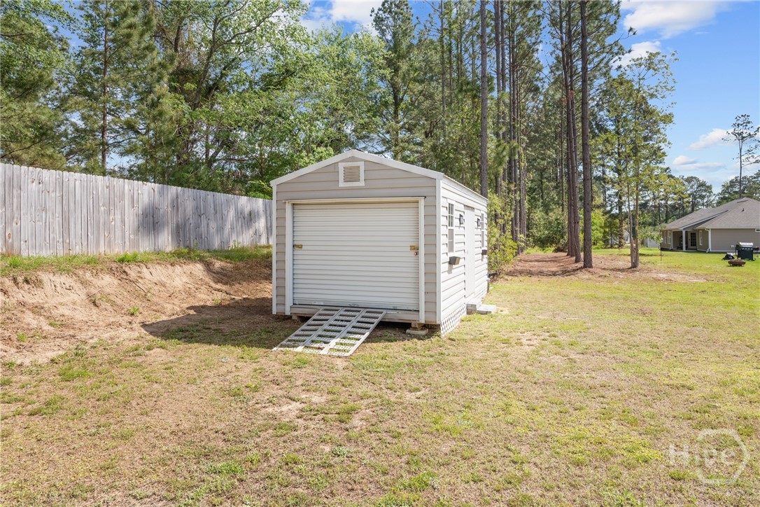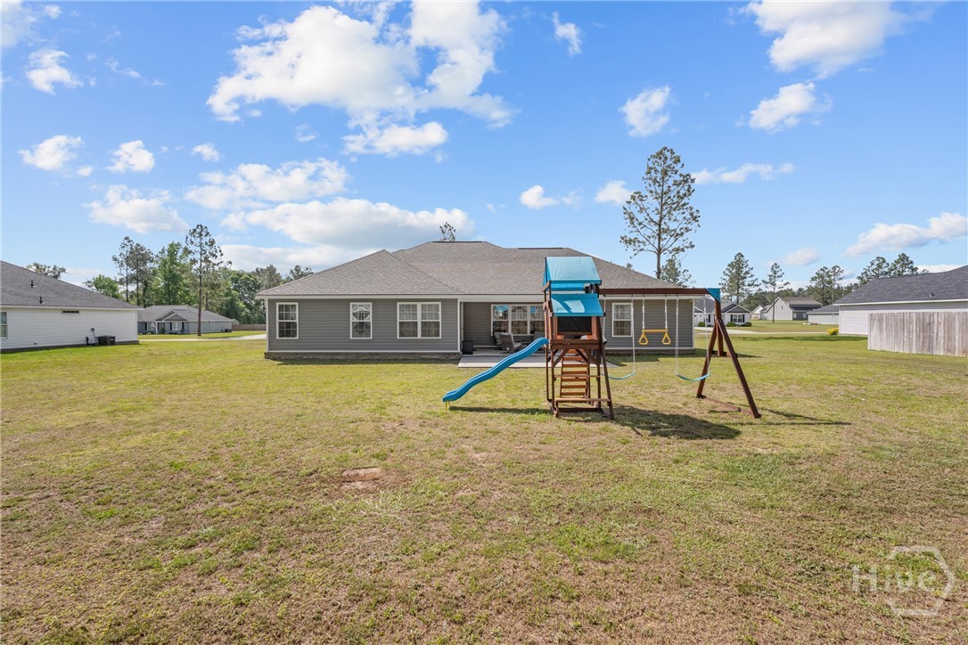 This one truly does HAVE IT ALL! - Stunning, LIKE-NEW home offers almost 2000 sqft of PRISTINE living space, packed with PREMIUM upgrades & move-in-ready features! This 4-bed, 2-ba gem is just 2.5 years young in one of Ellabell & Southeast Bulloch's most sought-after communities RIVER BLUFF! Beautiful curb appeal, lovely landscaping and inviting front porch open to impressive great room w/ custom foyer drop-zone and lofty 10ft ceilings. Well-appointed kitchen & dining area shines w/ oversized island, stainless steel appliances, composite sink & AMAZING WALK-IN PANTRY. Peaceful primary suite w/ double walk-in closets and spa-inspired bath w/ luxurious 60" SOAKING TUB & SEPARATE 48" SHOWER! Generous guest rooms & bath w/ double sinks for room to grow. Step out to the dreamy covered back porch & patio overlooking private back lawn. NUMEROUS upgrades include LARGE 10x20 OUTDOOR SHED w/ roll-up door providing space for storage, hobbies or workshop, full front & back irrigation, blinds, waterline filtration system....even the Swingset w/ playhouse for the kiddos! All saving you time & money! Just minutes to I-16, Pooler & Hyundai in the highly sought after SEB school district! This one will go FAST!
