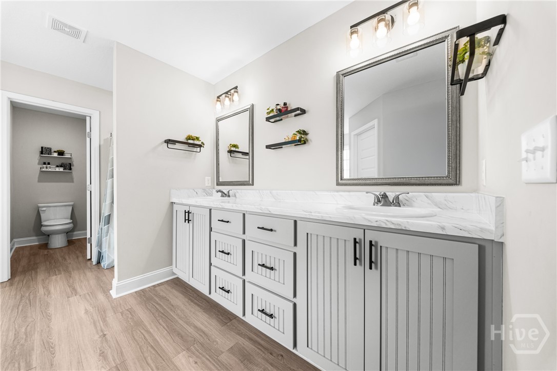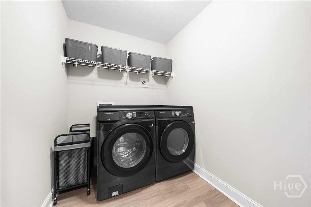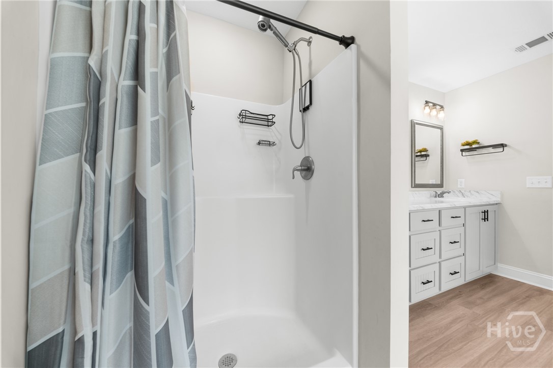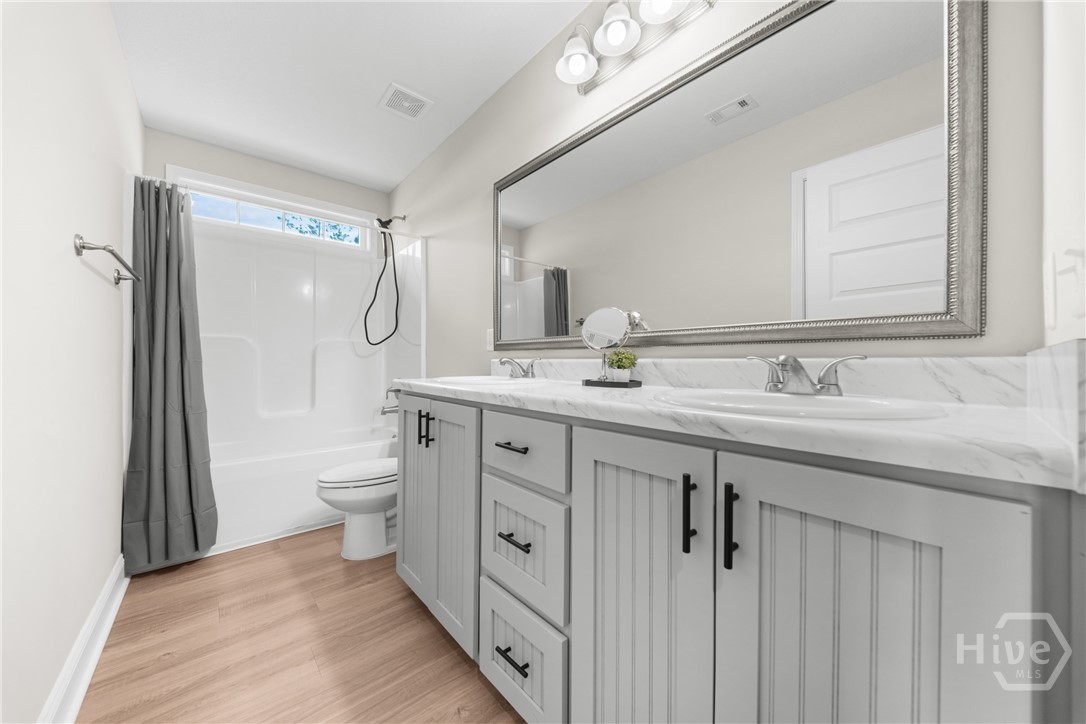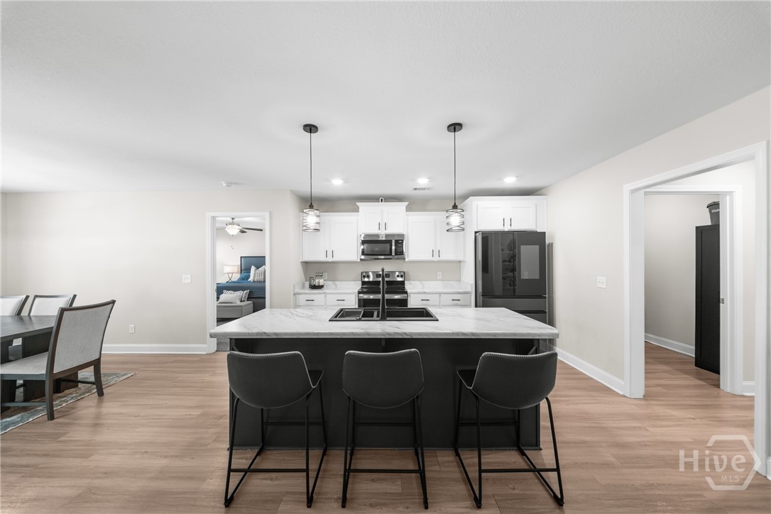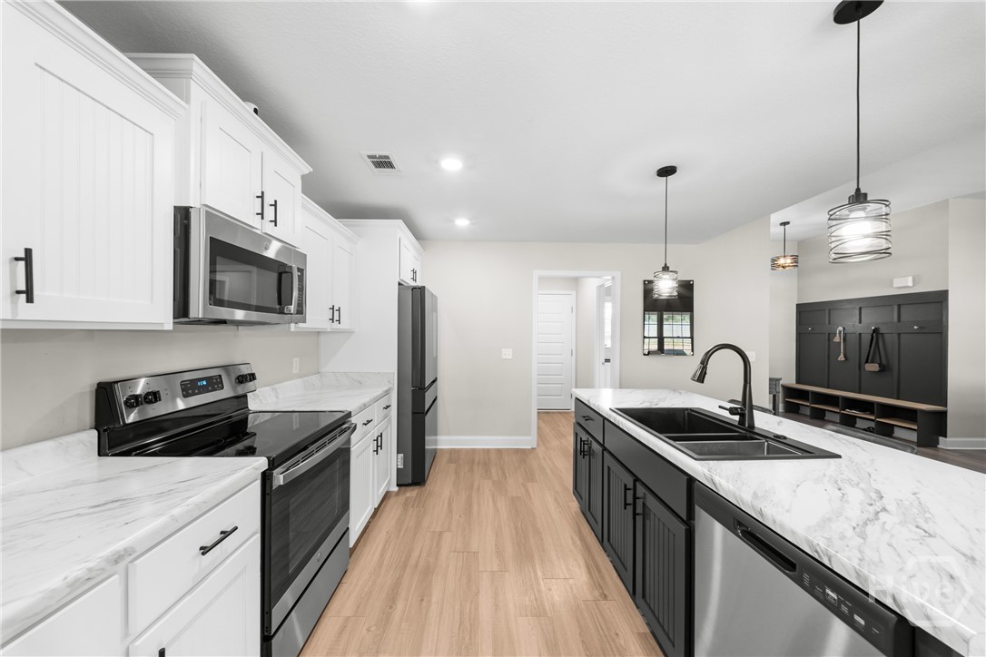This one truly does HAVE IT ALL! - Stunning, LIKE-NEW home offers almost 2000 sqft of PRISTINE living space, packed with PREMIUM upgrades & move-in-ready features! This 4-bed, 2-ba gem is just 2.5 years young in one of Ellabell & Southeast Bulloch's most sought-after communities RIVER BLUFF! Beautiful curb appeal, lovely landscaping and inviting front porch open to impressive great room w/ custom foyer drop-zone and lofty 10ft ceilings. Well-appointed kitchen & dining area shines w/ oversized island, stainless steel appliances, composite sink & AMAZING WALK-IN PANTRY. Peaceful primary suite w/ double walk-in closets and spa-inspired bath w/ luxurious 60" SOAKING TUB & SEPARATE 48" SHOWER! Generous guest rooms & bath w/ double sinks for room to grow. Step out to the dreamy covered back porch & patio overlooking private back lawn. NUMEROUS upgrades include LARGE 10x20 OUTDOOR SHED w/ roll-up door providing space for storage, hobbies or workshop, full front & back irrigation, blinds, waterline filtration system....even the Swingset w/ playhouse for the kiddos! All saving you time & money! Just minutes to I-16, Pooler & Hyundai in the highly sought after SEB school district! This one will go FAST!