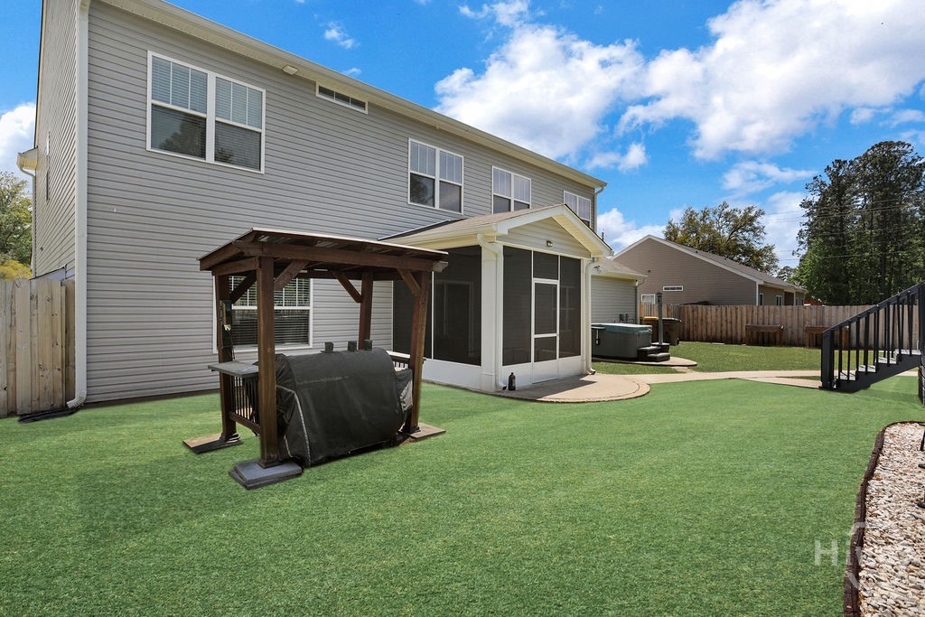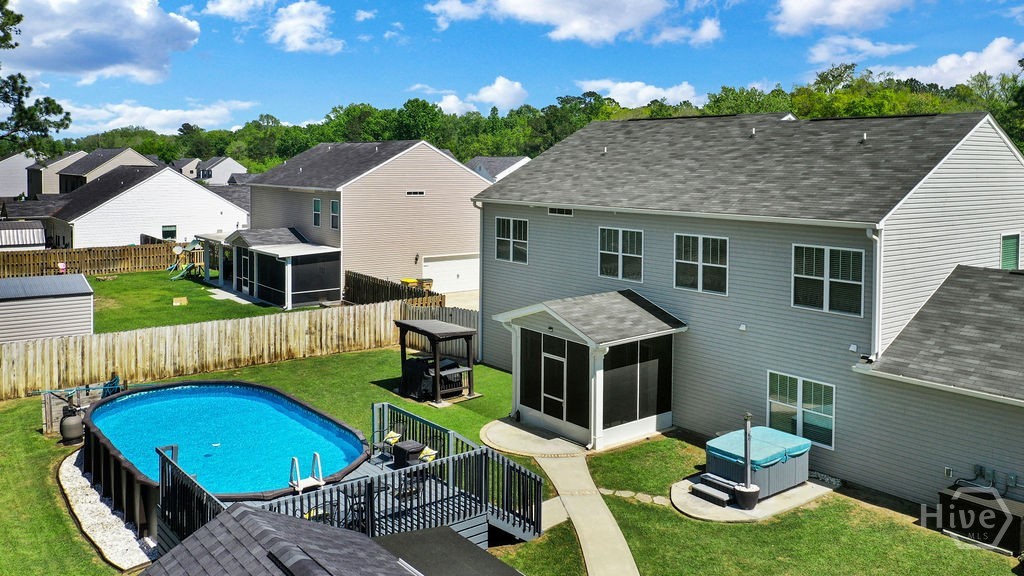 Luxury, leisure, and outdoor living come together to create your own private retreat in beautiful South Effingham. This exceptional property is designed for those who love to entertain, unwind, and truly enjoy home and a backyard built for making memories, featuring an above-ground pool with a custom-built deck that sets the stage for summer gatherings, weekend barbecues, and quiet evenings under the stars. Relax and recharge in the hot tub, or take advantage of the powered standalone shed, offering endless possibilities as a home office, gym, she-shed, or creative studio. Inside, this beautifully designed home offers an impressive 3,808 square feet of thoughtfully planned living space, blending comfort, function, and style. The open-concept layout provides a seamless flow ideal for both everyday living and hosting, while a separate private office creates the perfect space for working from home or enjoying a quiet retreat. A formal dining room sets the tone for special occasions, complemented by a spacious eat-in kitchen designed for casual meals and connection. The main level also features a guest suite, offering convenience and flexibility for visitors or multigenerational living. Upstairs, a generous loft provides additional living space, ideal for a media room, playroom, or secondary lounge. The owner’s suite is privately situated on the second floor and serves as a true retreat, featuring a spacious bedroom with luxury vinyl plank flooring and ample space to unwind. The en-suite bath offers dual vanities, a separate soaking tub and shower, and a large walk-in closet. Completing the home is a rare three-car garage, providing ample storage and convenience. This is more than a home; it’s a lifestyle designed for comfort, flexibility, and elevated everyday living.