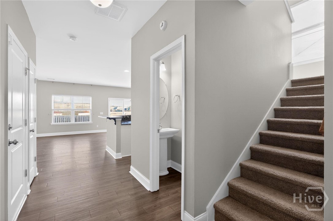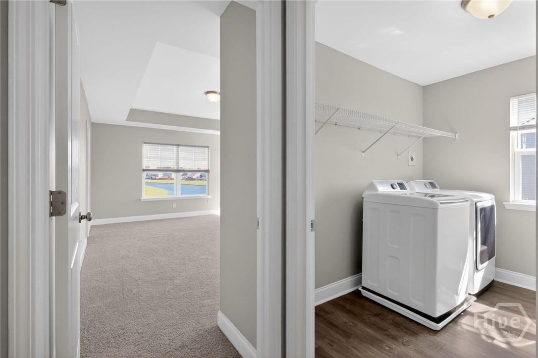 - 5 beds, 2.5 baths - 2721 sq. ft. - 130$/sq.ft. Hard to beat - Easy to navigate floor plan with more than ample rooms size - Stunning lagoon view from your master bedroom (and other areas) - All bedrooms are upstairs. Keep little ones nearby - All bedrooms have walk-in closets. Some with windows - Double sink vanities in both full baths - Separate shower and bath in master bathroom - Laundry room upstairs. Where the clothes actually are - Washer/dryer included - L shaped kitchen + island with sink - Huge living room - Separate dining area - Many windows. Abundant natural light - New carpets + fresh paint - 2 car garage - Safe and quiet neighborhood nested in the Highlands - Amenities include gym, pool, playground, tennis courts, clubhouse for your events - Easy access to I-95, Restaurants, Gulfstream, SCAD, Hunter AAF, Savannah Port, JCB - Close to Pooler Tanger Outlets