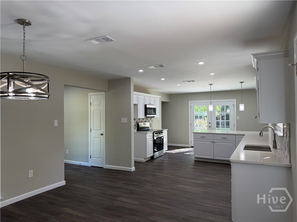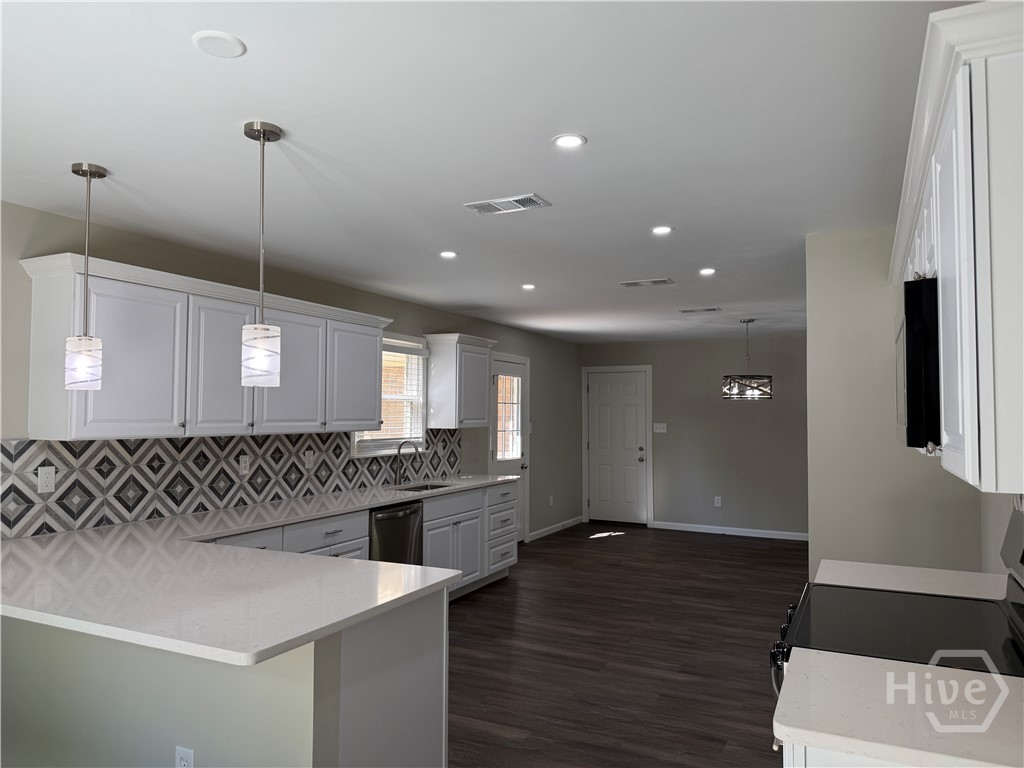 Retreat To Your Fully Renovated Home On Large Private Lot On Secluded, Cul-de-sac Street; Workshop + Additional Storage Buildings! Relax On Backyard Deck Or Front Yard Courtyard! Garden Area In Back Area Of Yard! NEW Roof, NEW HVAC, NEW Custom Kitchen Cabinets With Designer Quartz Counters And Stainless Appliances, UPDATED Bathrooms With NEW Cabinetry, NEW Paint, NEW Flooring, NEW Lights, NEW Ceiling Fans, NEW Water Heater AND MUCH MORE! Convenient To Hinesville, Fort Stewart, Richmond Hill & All Points Along I-95 & Savannah! See This Jewel Today!