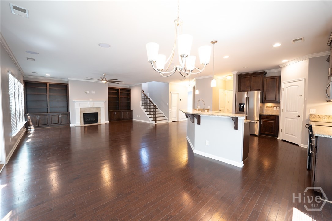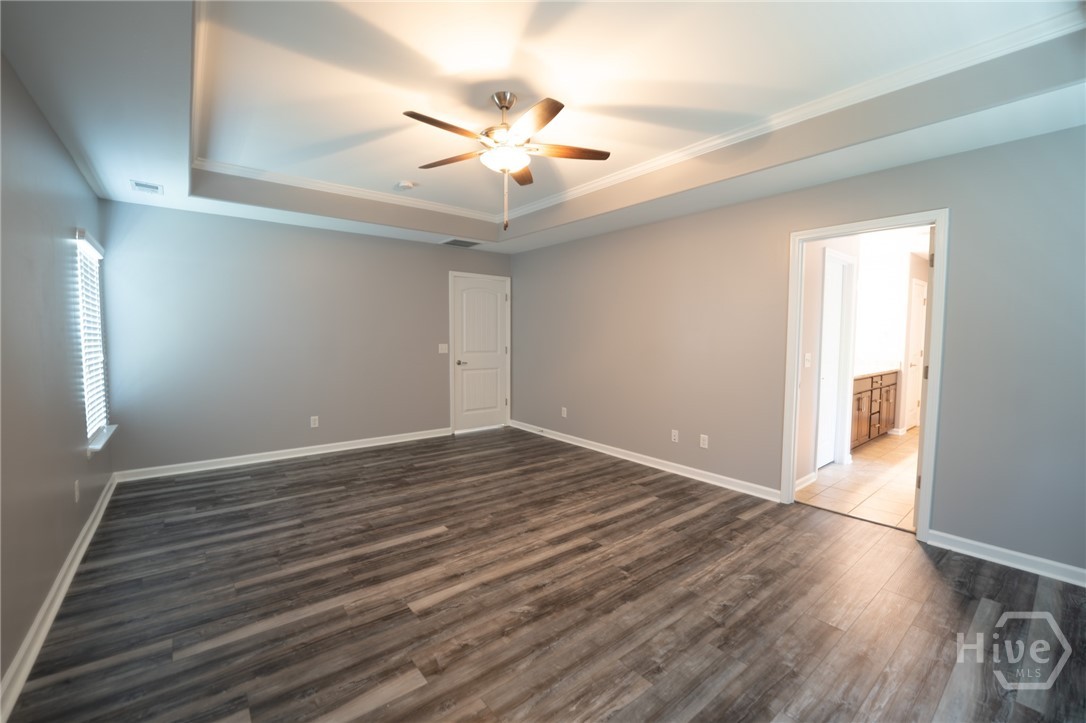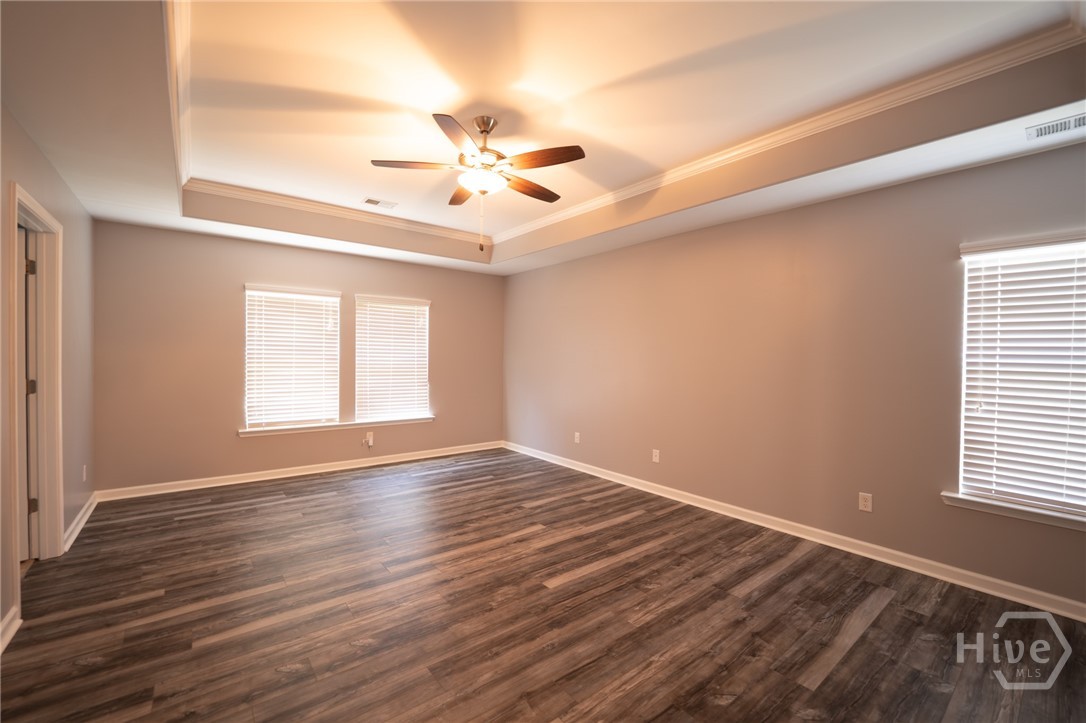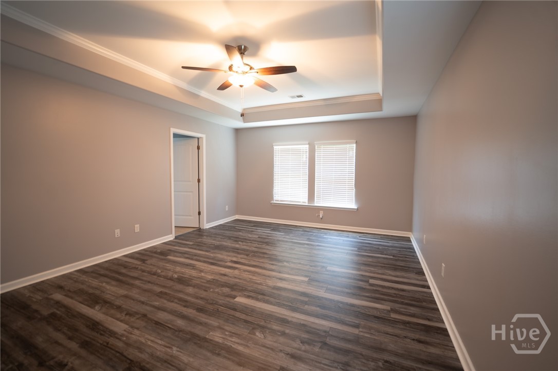 Welcome home to this spacious 4 bedroom, 2.5 bath home located in the heart of Pooler just off Pooler Parkway. Perfectly positioned for convenience, this home offers easy access to shopping, dining, Gulfstream, the airport, and major highways making any commute a breeze. Step inside to find beautiful hardwood floors throughout the main level and durable laminate flooring upstairs. The open concept layout features a large great room that flows seamlessly into the upgraded kitchen, complete with granite countertops, stainless steel appliances, and plenty of cabinet space. A formal dining room offers flexibility and can easily be used as a home office or flex space to fit your needs. Upstairs, all bedrooms are thoughtfully located for privacy, including a spacious primary suite featuring a double vanity, separate shower and soaking tub, and a large walk in closet. An additional loft area provides the perfect spot for a shared workspace, play area, or second living space. This home features built in Celling Mount Speakers throughout the Home. Enjoy outdoor living in the fenced in backyard, ideal for pets, entertaining, or relaxing evenings. Located in an amenity filled community, this home combines space, functionality, and an unbeatable location. Don’t miss your opportunity to make it yours!