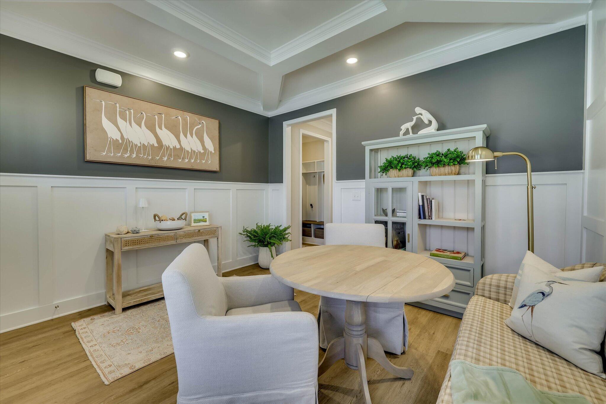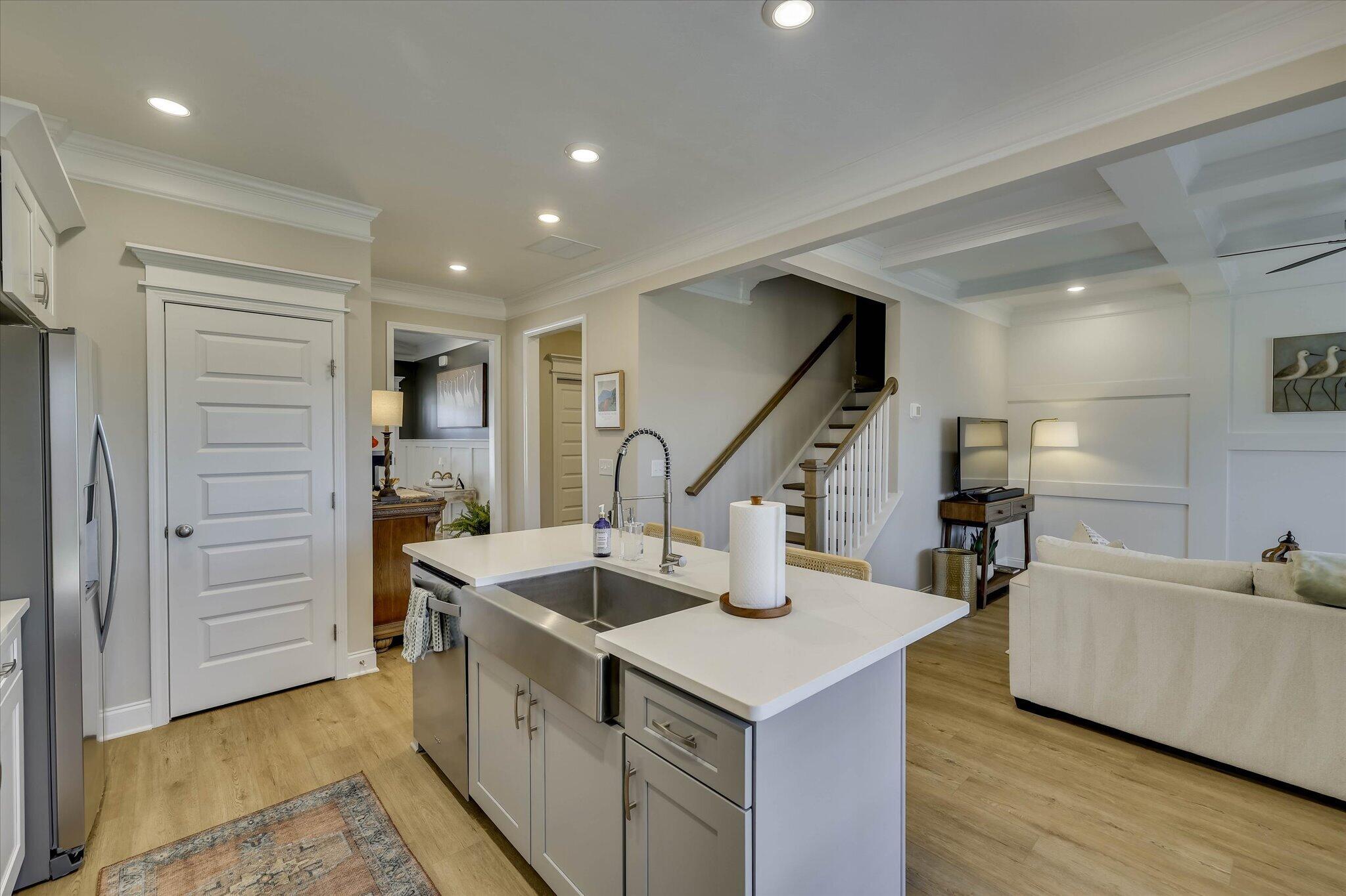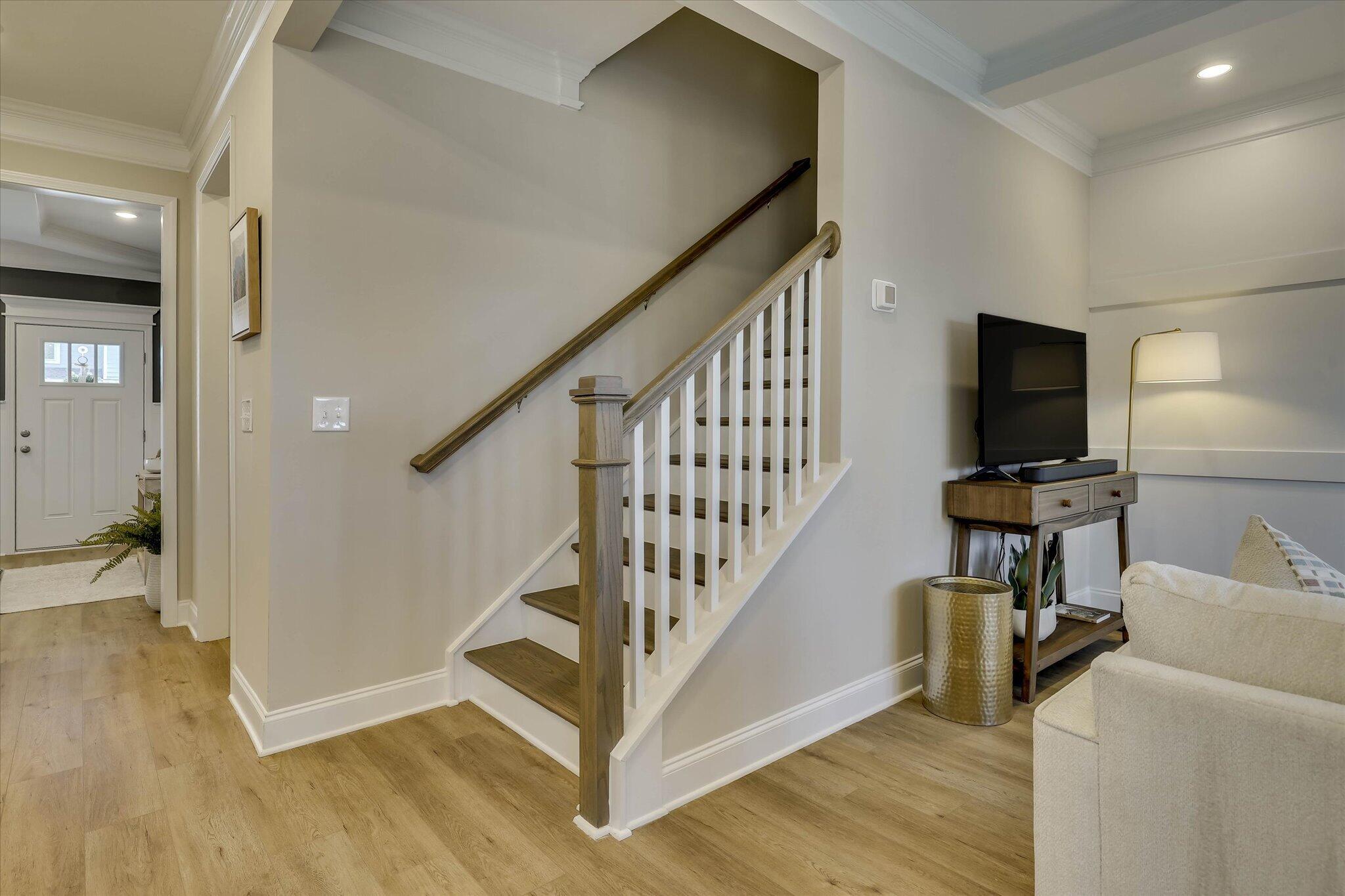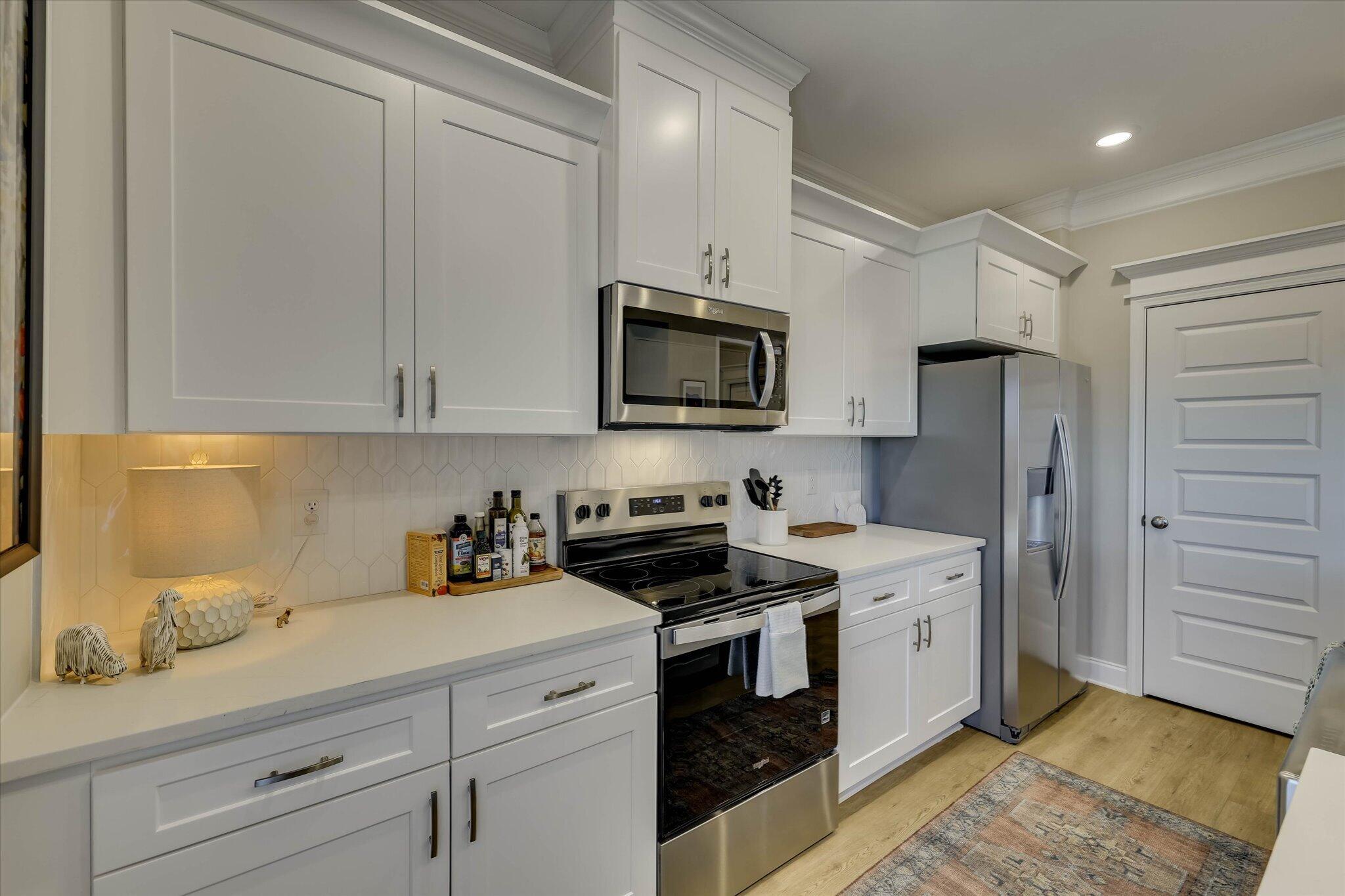 Enjoy low-maintenance living in this beautifully maintained end-unit home featuring an open and convenient floor plan. The property offers fully landscaped yards along with charming covered front and back porches, perfect for relaxing or enjoying time outdoors. Step inside to experience refined craftsmanship throughout the home, including heavy trim and exquisite molding around every window, along with detailed trim work in great room, flex/dining room, staircase and the owner's suite. The home features hardwood flooring throughout with absolutely no carpet. The staircase also showcases hardwood treads, adding to the home's elegant feel. The gourmet kitchen impresses with its open layout, Corian countertops, oversized island, designer backsplash, upgraded dishwasher and stainless-steel appliances. Natural light pours into the spacious great room, creating a warm and inviting atmosphere that is ideal for entertaining. The luxurious owner's suite serves as a private retreat featuring a large walk-in closet and an en-suite bath with a tiled shower, double vanity with Corian countertops, framed mirrors, and ceramic tile flooring. Additional bedrooms share a full bath also finished with ceramic tile flooring and Corian countertops. This home also includes a pre-wired home package with Cat5 internet and cable wiring. Ideally located and zoned for top-rated Columbia County schools, it is just minutes from restaurants, shopping, I-20, the medical district, and Fort Gordon, offering the perfect blend of comfort, style, and convenience.