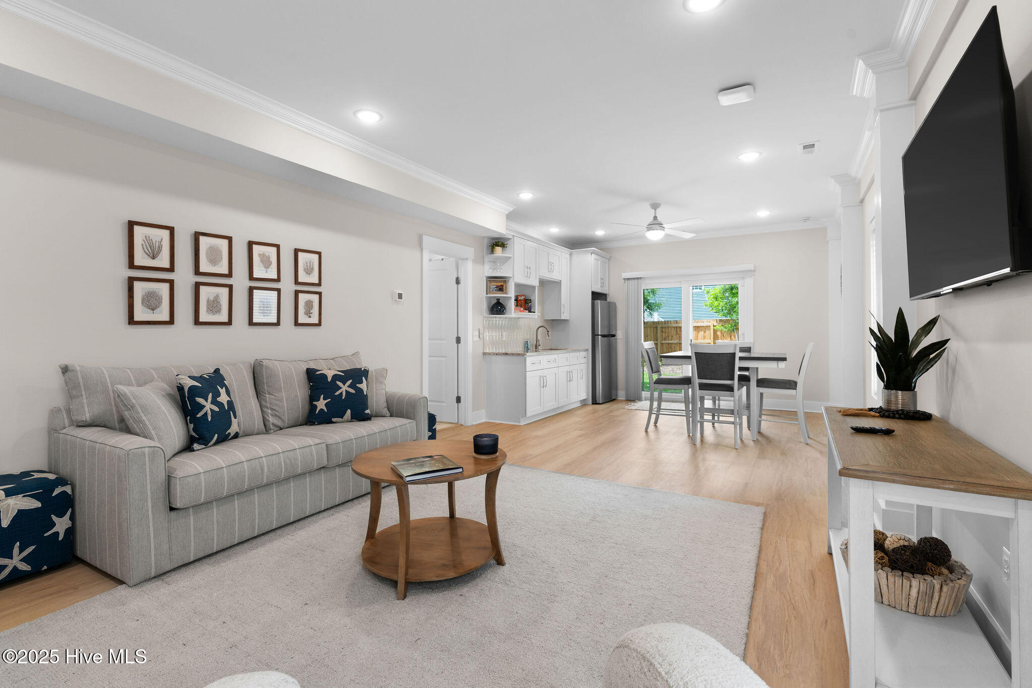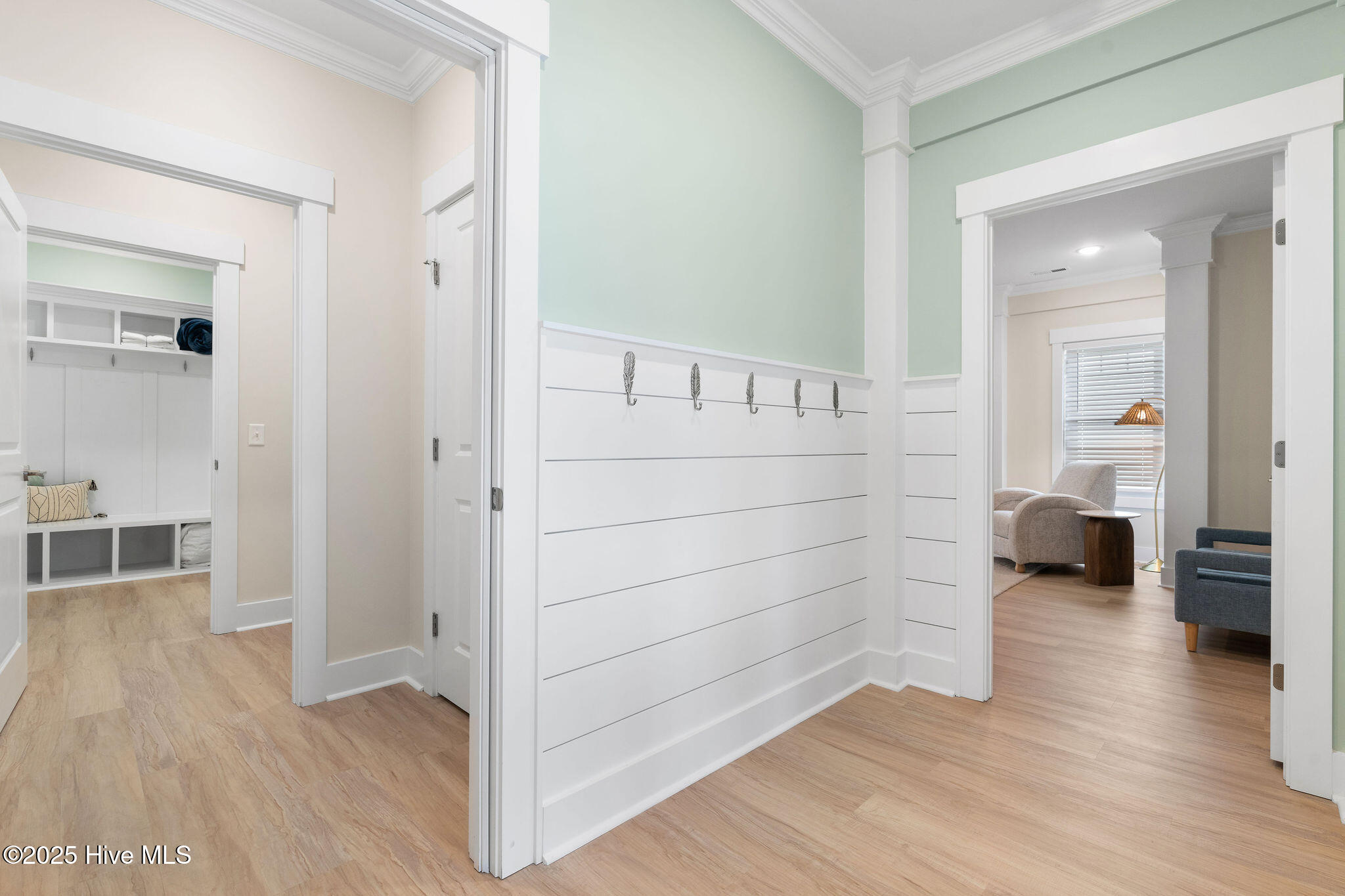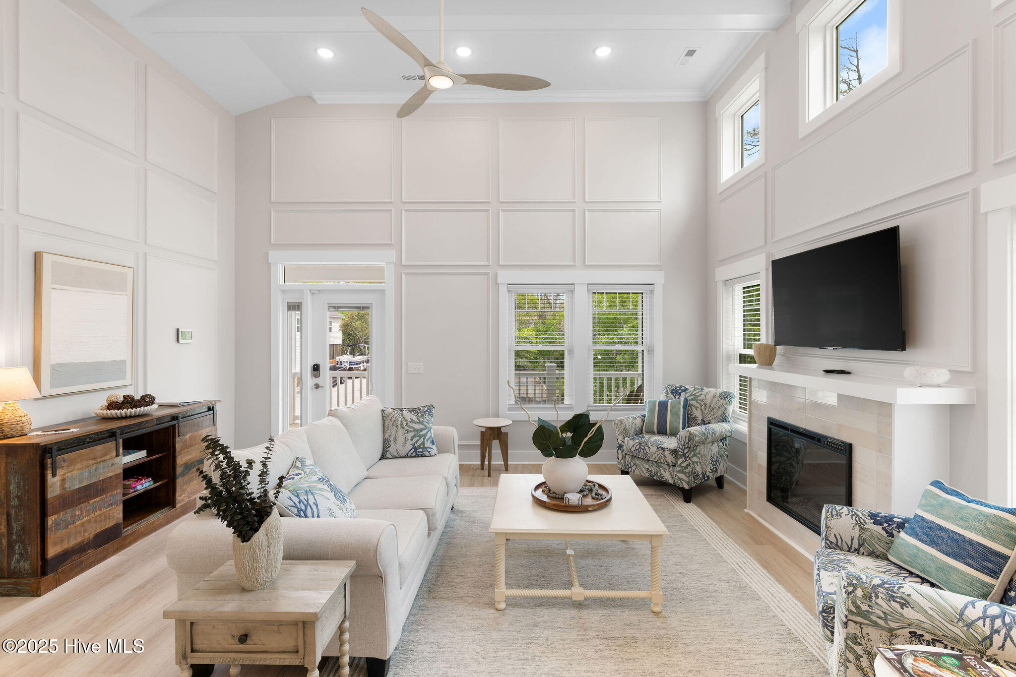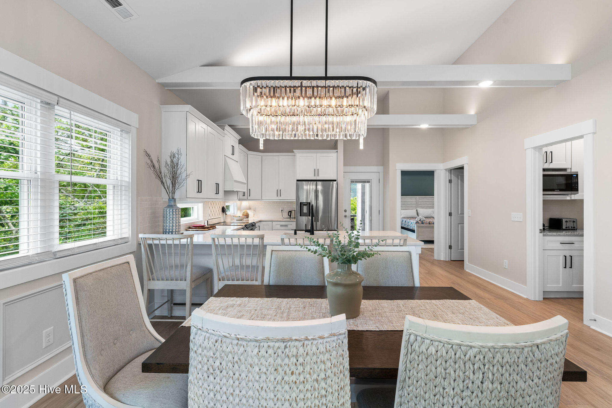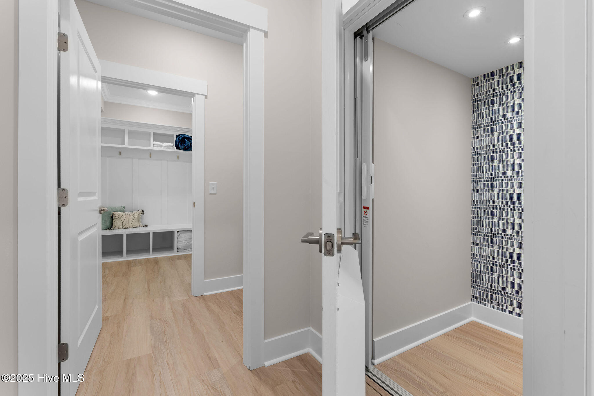 Indulge in refined coastal living within this 2024 Parade of Homes Diamond Award Winner! The Sandpiper, a masterpiece crafted by the esteemed 12-time Diamond Award winning, Seacoast Homes. Nestled on the serene southwestern edge of Oak Island, this meticulously designed sanctuary offers tranquility situated near the Davis Canal, with the beach just minutes away. Step onto the expansive front porch and be drawn into an airy, open-concept haven showcasing exquisite custom details ideal for both relaxed daily life and sophisticated entertaining. Admire the soaring vaulted ceilings, striking wood beams, designer fixtures, elegant custom moldings, and captivating windows. The main level boasts three generous bedrooms, including a truly breathtaking and luxurious owner's retreat. Extend your living outdoors to the screened porch, accessible from both the main living area and owner's suite, and savor the privacy of your fenced backyard. For added convenience, a private elevator descends to a stylish first-floor guest suite, complete with chic shiplap accents, detailed molding, and a luxurious full bath. Notable features include a dedicated golf cart garage, a comprehensive Ring Security Package, enhanced internet connectivity, a Navien tankless water heater, and a fully sealed and insulated attic.