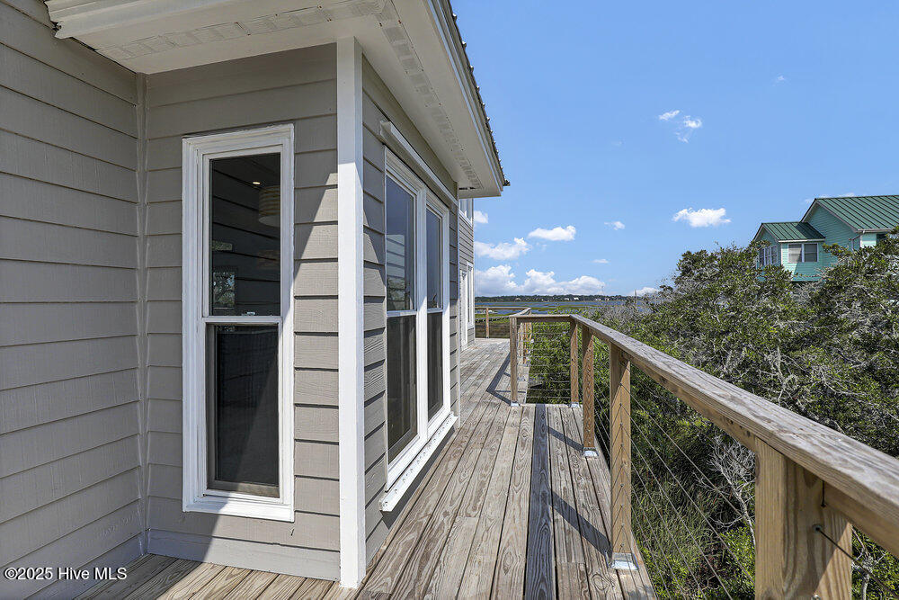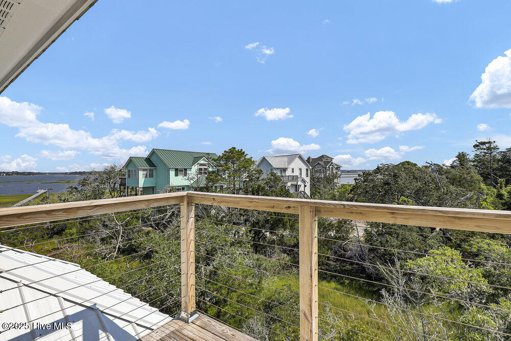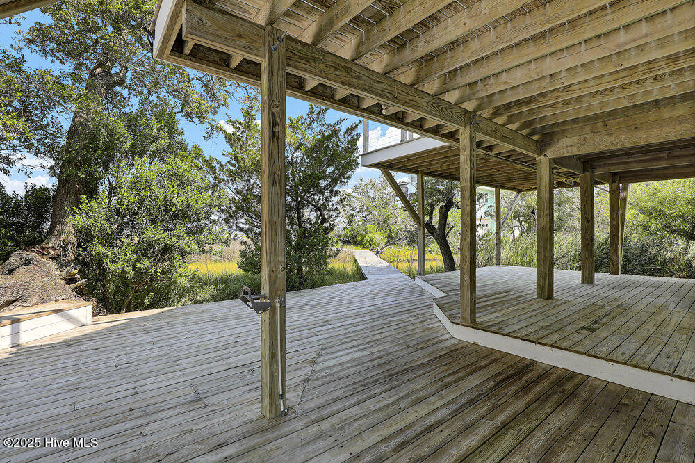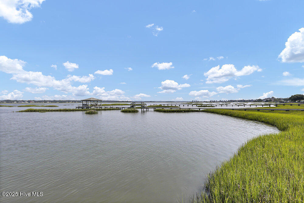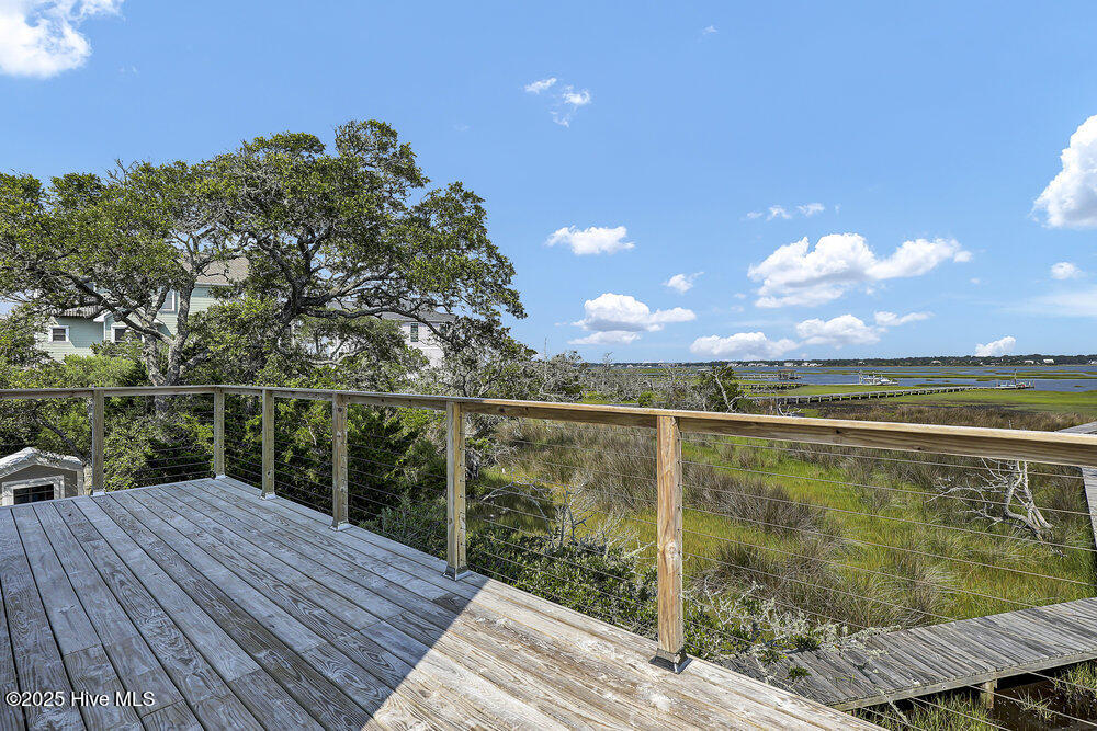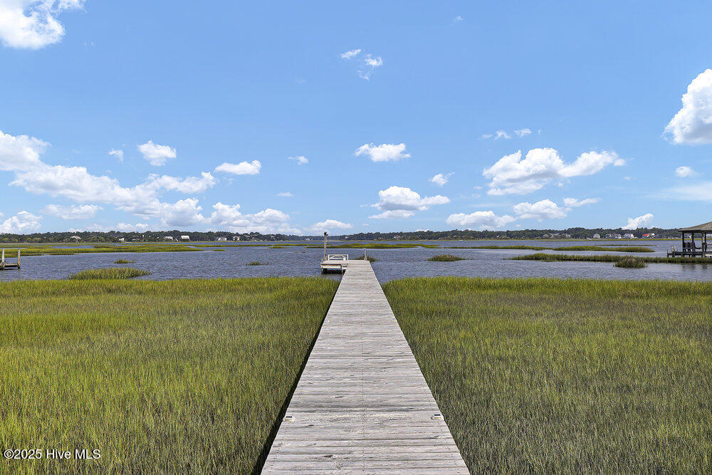As you drive back to your new home through a pergola covering the driveway, this home located on 1.41 acres opens up to breathtaking views over the dock leading out to sound and views of the ICWW. Recently remodeled, you will find custom cabinets, hard surface counters, solid Bamboo doors (absolutely beautiful workmanship) custom sliding doors from Poland, wrap around decks with cable rails, tile flooring and wall coverings, custom fixtures and sinks, and custom Bamboo trim work. The converted sunrooms previously decks, add a beautiful space off the living or dining area with a wall of glass for views, and featured in the second floor primary bedroom as quiet sitting or reading area, or office - who wants to work at the beach? Fully finished garage and spacious deck on ground floor for gathering after a day on the beach or boat with built in seating, outdoor shower, and much privacy due to large lot size and mature trees. Its hard to describe the views from every room in this home, so please book a showing for your private tour.