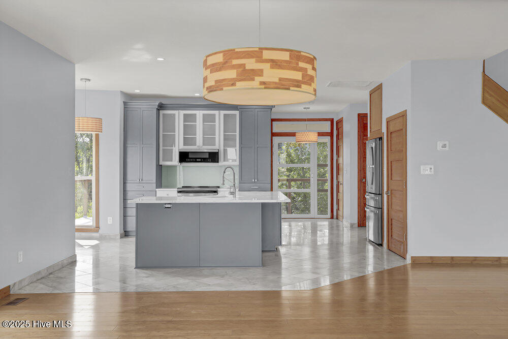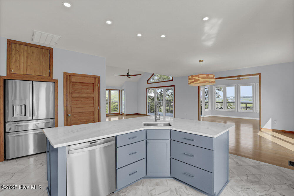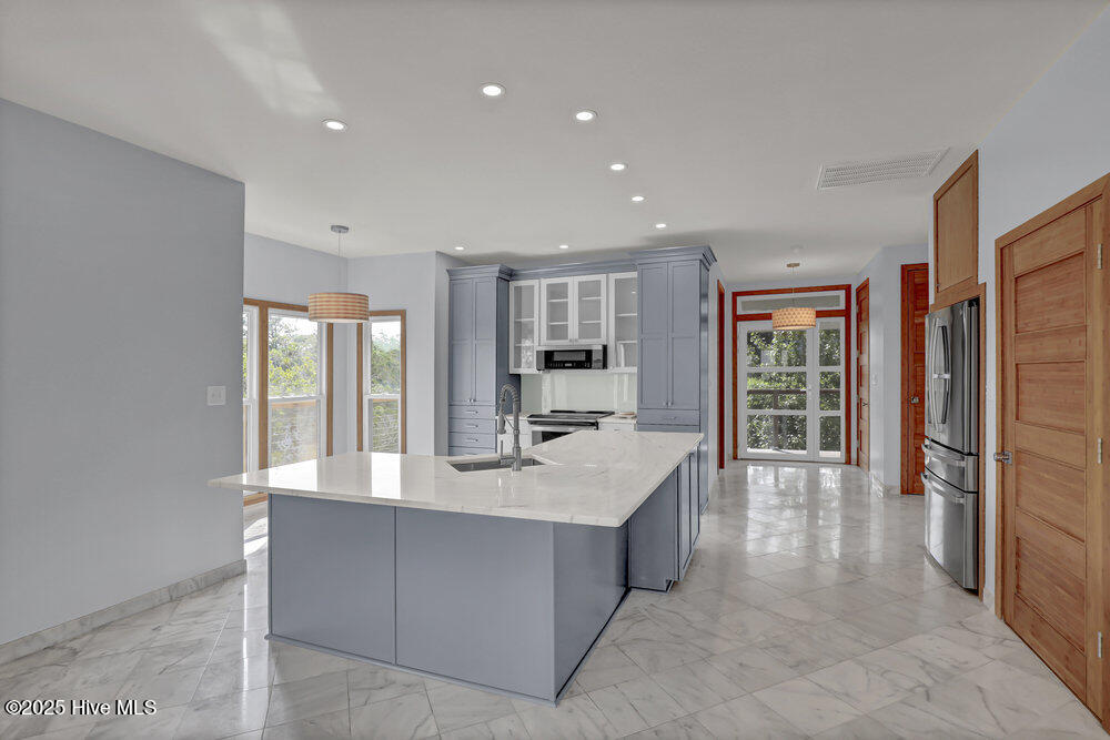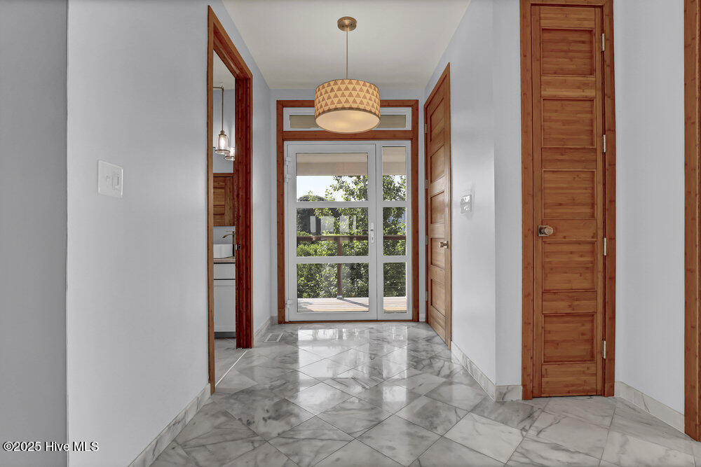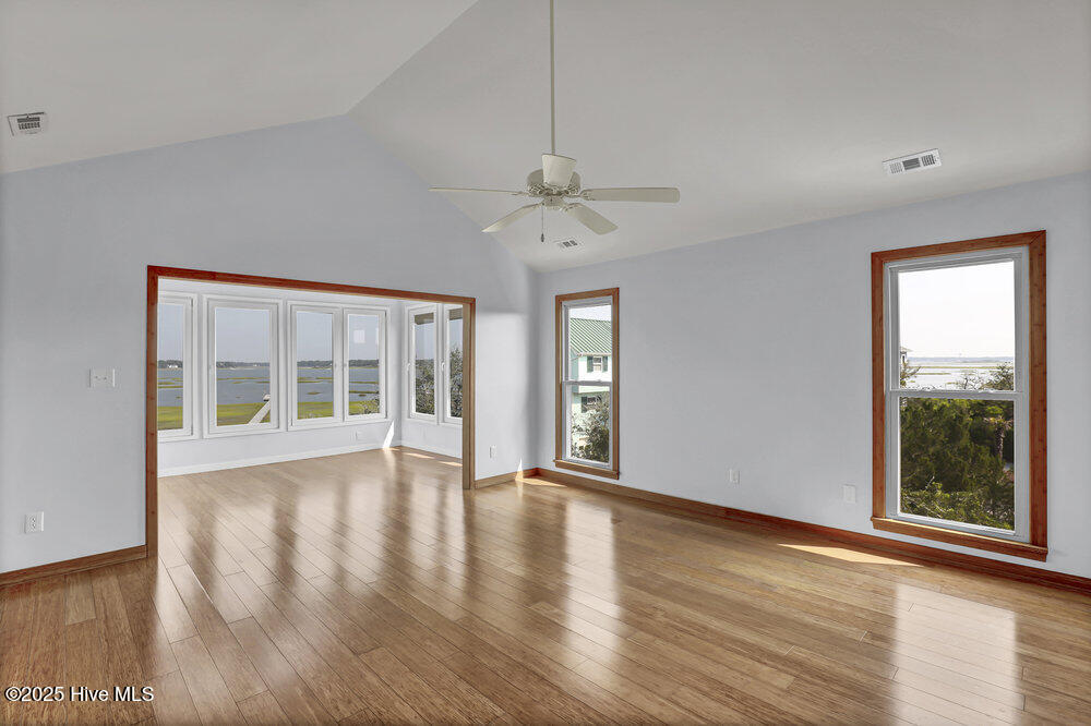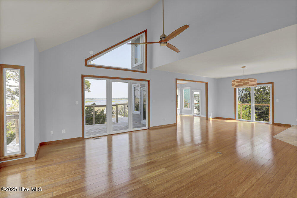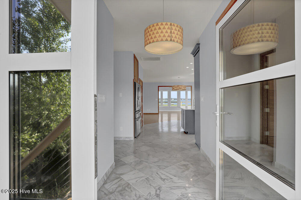 As you drive back to your new home through a pergola covering the driveway, this home located on 1.41 acres opens up to breathtaking views over the dock leading out to sound and views of the ICWW. Recently remodeled, you will find custom cabinets, hard surface counters, solid Bamboo doors (absolutely beautiful workmanship) custom sliding doors from Poland, wrap around decks with cable rails, tile flooring and wall coverings, custom fixtures and sinks, and custom Bamboo trim work. The converted sunrooms previously decks, add a beautiful space off the living or dining area with a wall of glass for views, and featured in the second floor primary bedroom as quiet sitting or reading area, or office - who wants to work at the beach? Fully finished garage and spacious deck on ground floor for gathering after a day on the beach or boat with built in seating, outdoor shower, and much privacy due to large lot size and mature trees. Its hard to describe the views from every room in this home, so please book a showing for your private tour.