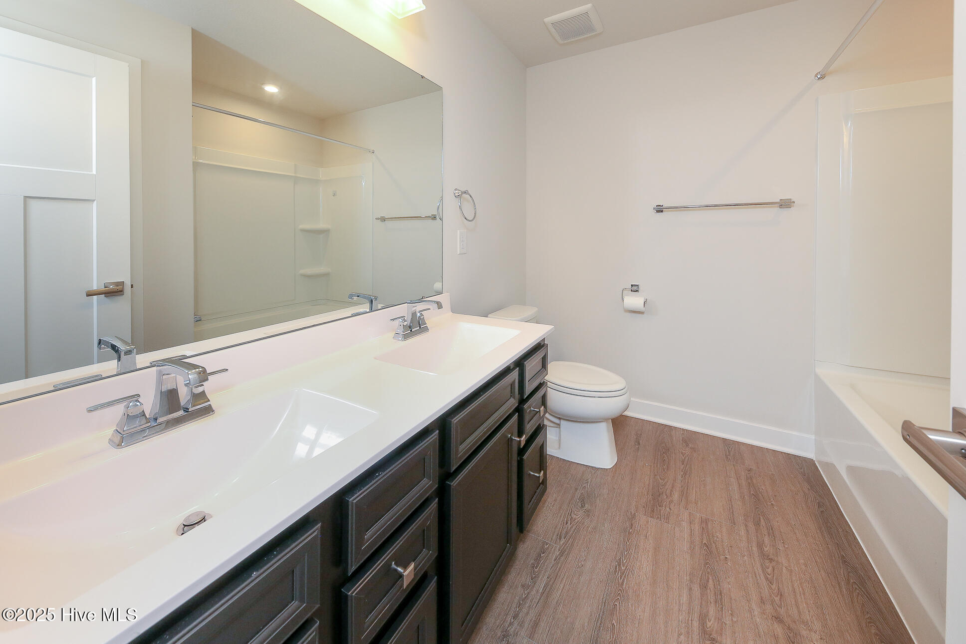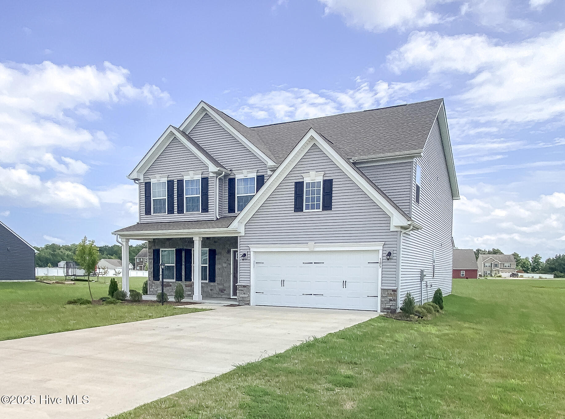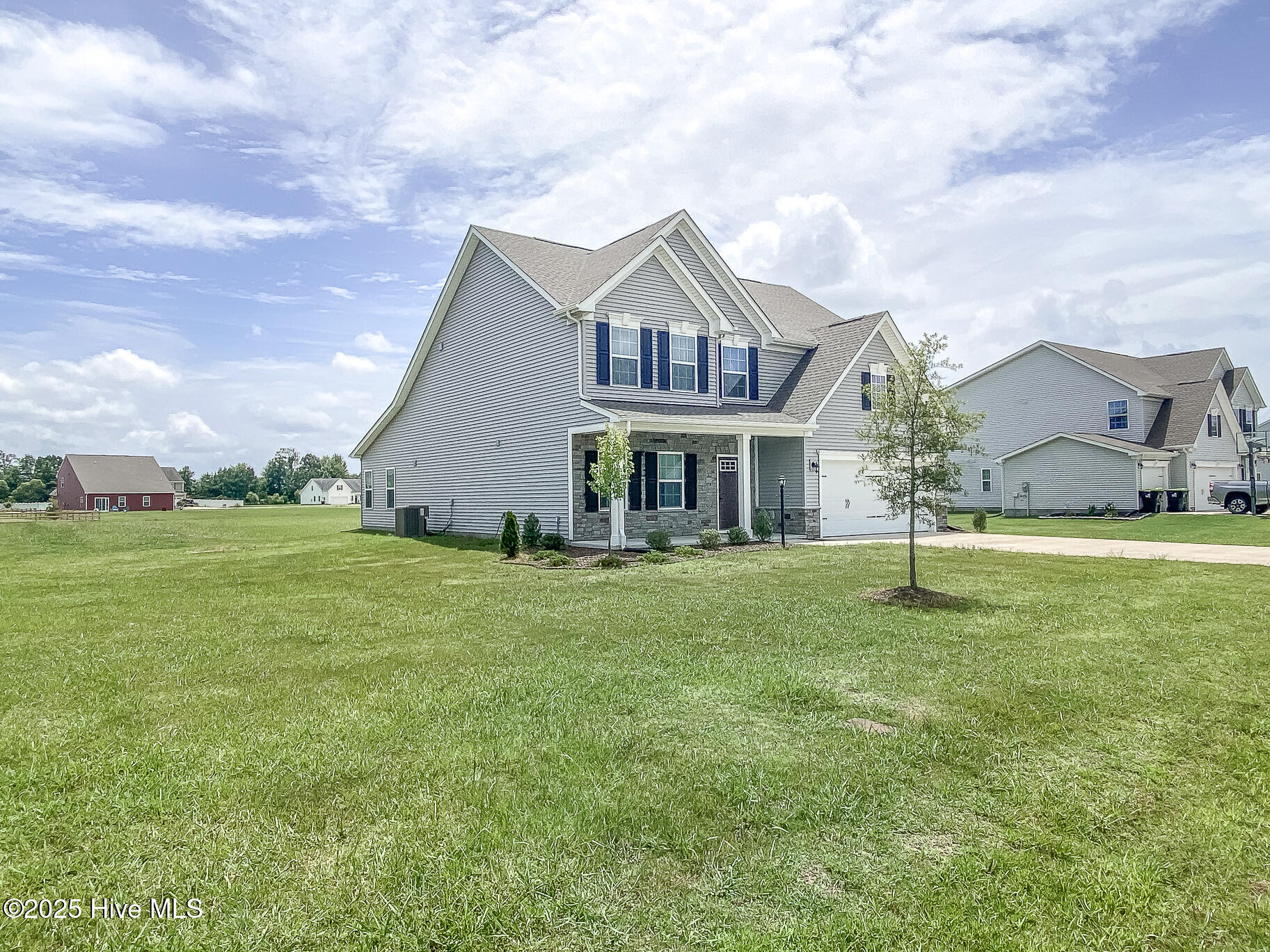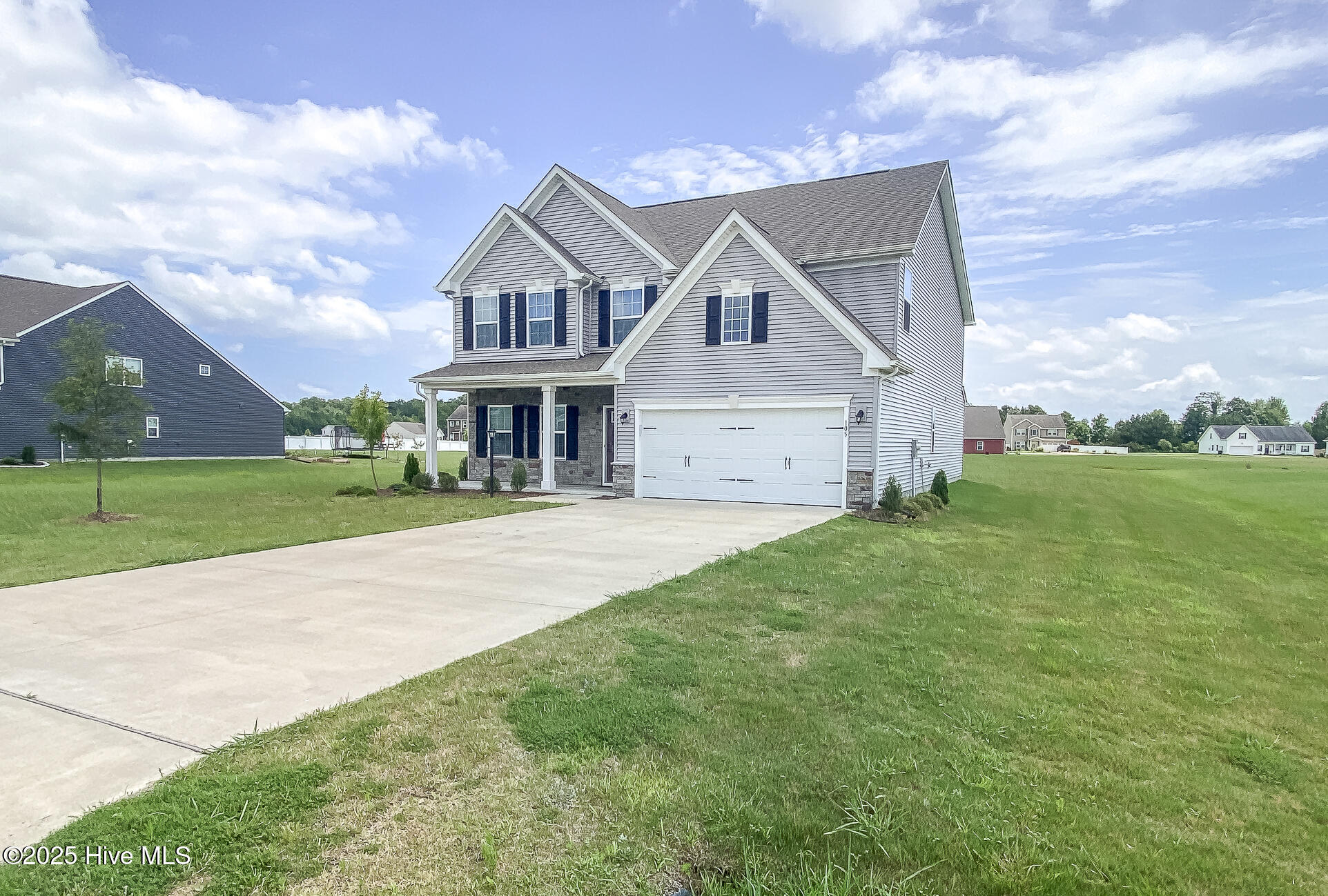 Looking for the perfect place to call home? This is it! With NO HOA and a nearly new feel, this spacious 5-bedroom, 3-bath home offers room for everyone—plus extra living areas both upstairs and downstairs. The main-floor primary suite features a generous walk-in closet, a separate soaking tub, and a walk-in shower. An additional bedroom on the main level has direct access to a full bath, making it ideal for guests or multi-generational living. You'll love the open, inviting kitchen, complete with granite countertops, rich dark cabinetry, stainless steel appliances, and a large island perfect for gatherings and entertaining. All of this sits on a .987-acre lot, giving you plenty of space for cookouts, outdoor fun, and future possibilities. Upstairs you'll find three more spacious bedrooms, a full bath, and a versatile communal space—great for a game room, media area, or office. This home has been exceptionally maintained and is truly move-in ready. Located just 10 minutes from local shopping, 40 minutes from popular Virginia destinations, and about 1 hour from the OBX, it's ideal for Virginia commuters who want a touch of country privacy without sacrificing convenience. Don't miss out—schedule your private tour today!