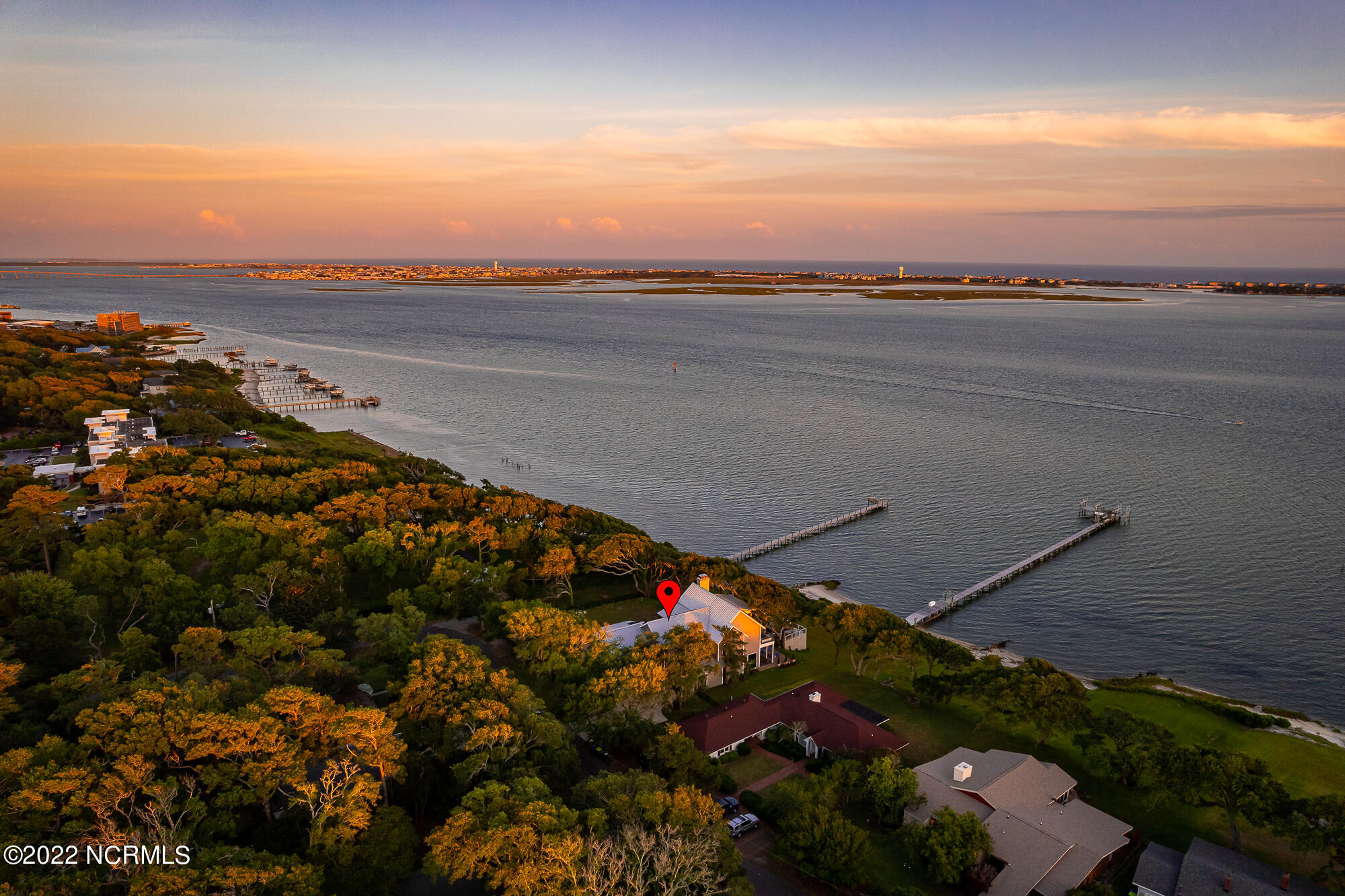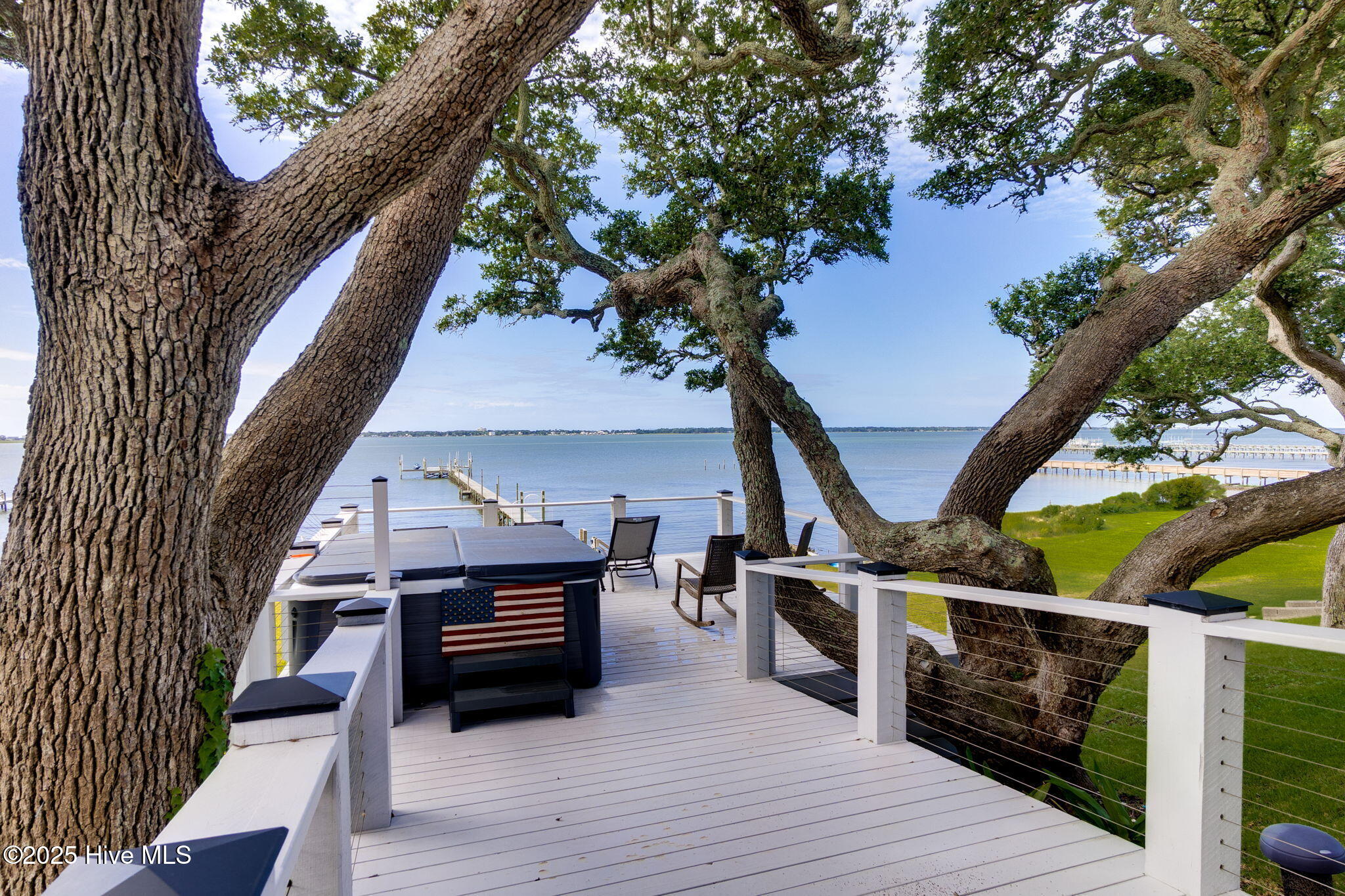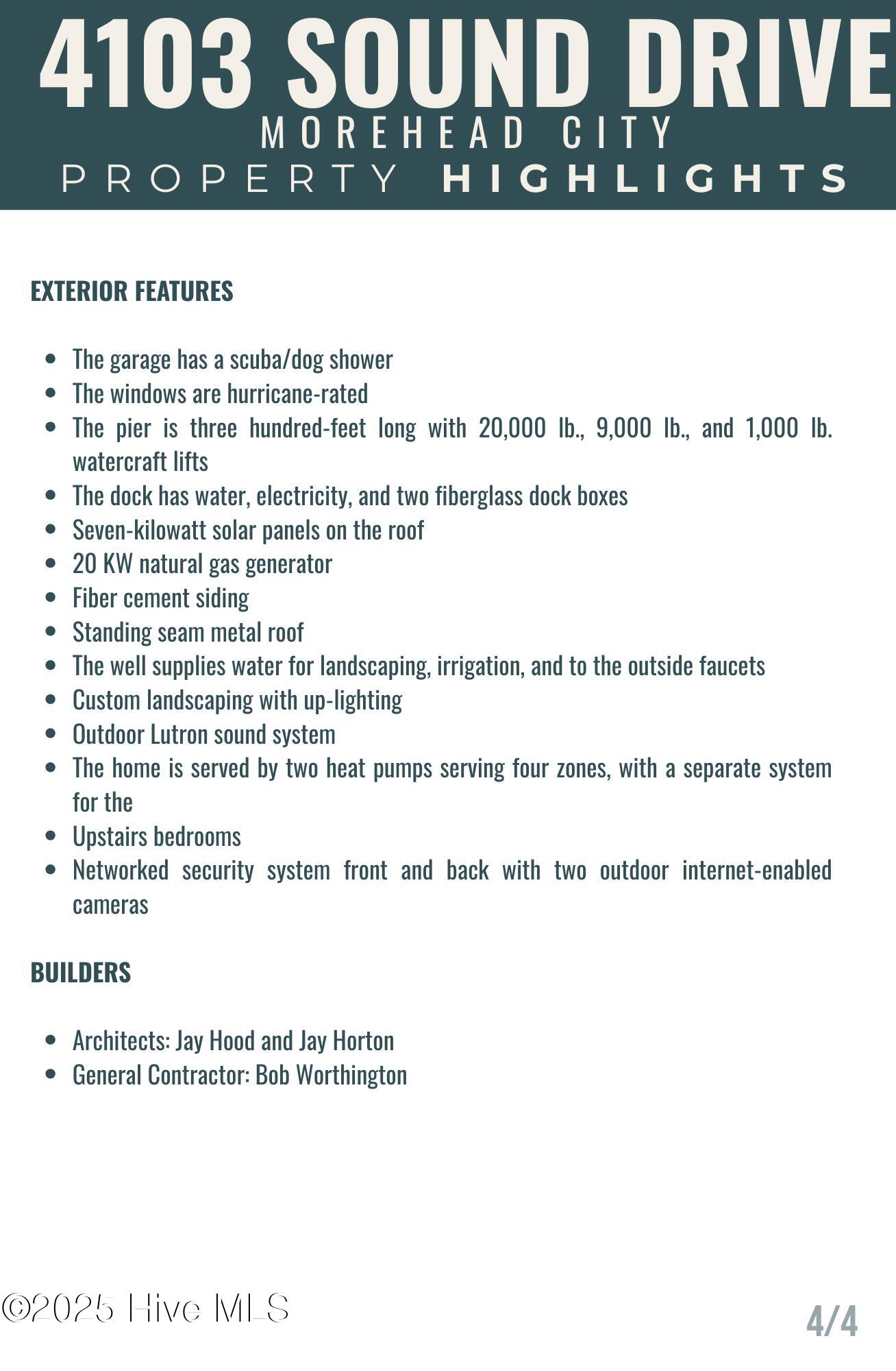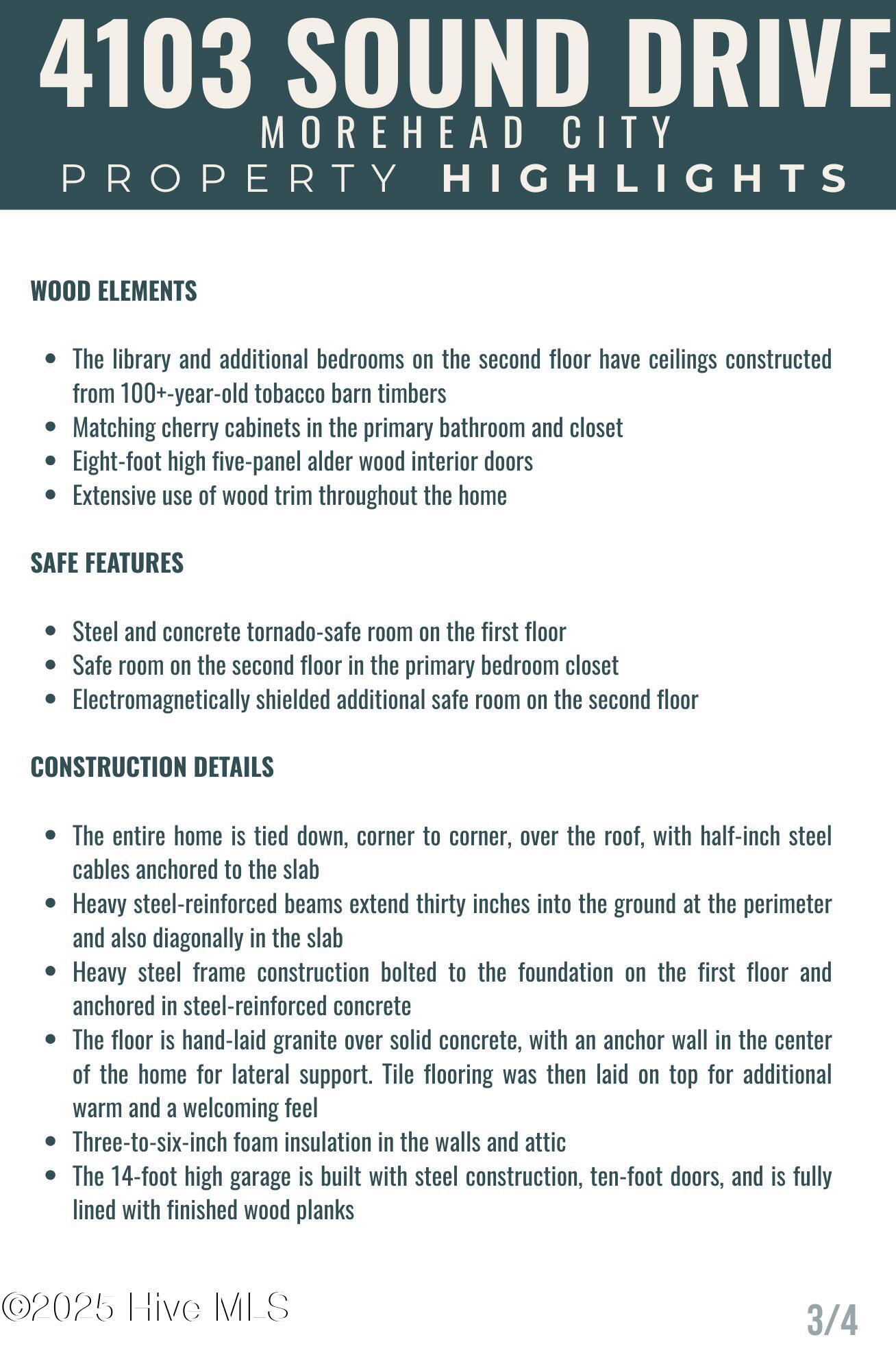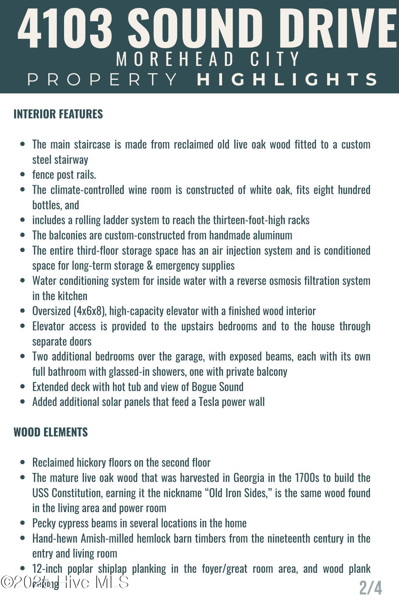 Welcome to 4103 and 4101 Sound Drive, featuring 5 bedrooms and 5 1/2 bath waterfront estate blending old-world influences with refined, high-end details. Set among wind-sculpted live oaks and lush gardens, the home offers sweeping views of Bogue Sound in endless shades of blue. This offering includes 4101 Sound Drive, the adjacent soundfront lot, creating an extraordinary estate along Bogue Sound. Inside, every space is designed to inspire—from the private library with rolling ladder to the wine room ready for evening toasts. The primary suite evokes luxury with a soaking tub framed by picture windows and a cozy fireplace. With five en-suite bedrooms, soaring ceilings, safe rooms, and countless custom features, this residence is both functional and unforgettable. (See additional information highlighting the property's construction and exceptional quality). Outdoor living is just as captivating, with covered porches and patios overlooking the Sound—perfect for summer afternoons and fall fiery sunsets. Architecturally, the home balances timeless southern design with modern sophistication. Double porches and expansive windows welcome natural light while connecting to the oversized soundside yard and three hundred-feet long dock with 20,000 lb., 9,000 lb., and 1,000 lb. watercraft lifts. An expanded deck holds a hot tub nestled amongst the live oaks, with additional storage below for all your outdoor gear. Rich in history and craftsmanship, the home incorporates repurposed timbers from 19th-century Amish barns, reclaimed hickory floors, tobacco barn beams, and live oak once destined for the USS Constitution—each detail infusing character and artistry. The gourmet kitchen, multiple gathering spaces, and custom finishes make it an ideal retreat for everyday living or entertaining on a grand scale. Come experience 4103 and 4101 Sound Drive- it's an elegant fortress, designed to inspire and endure for generations.