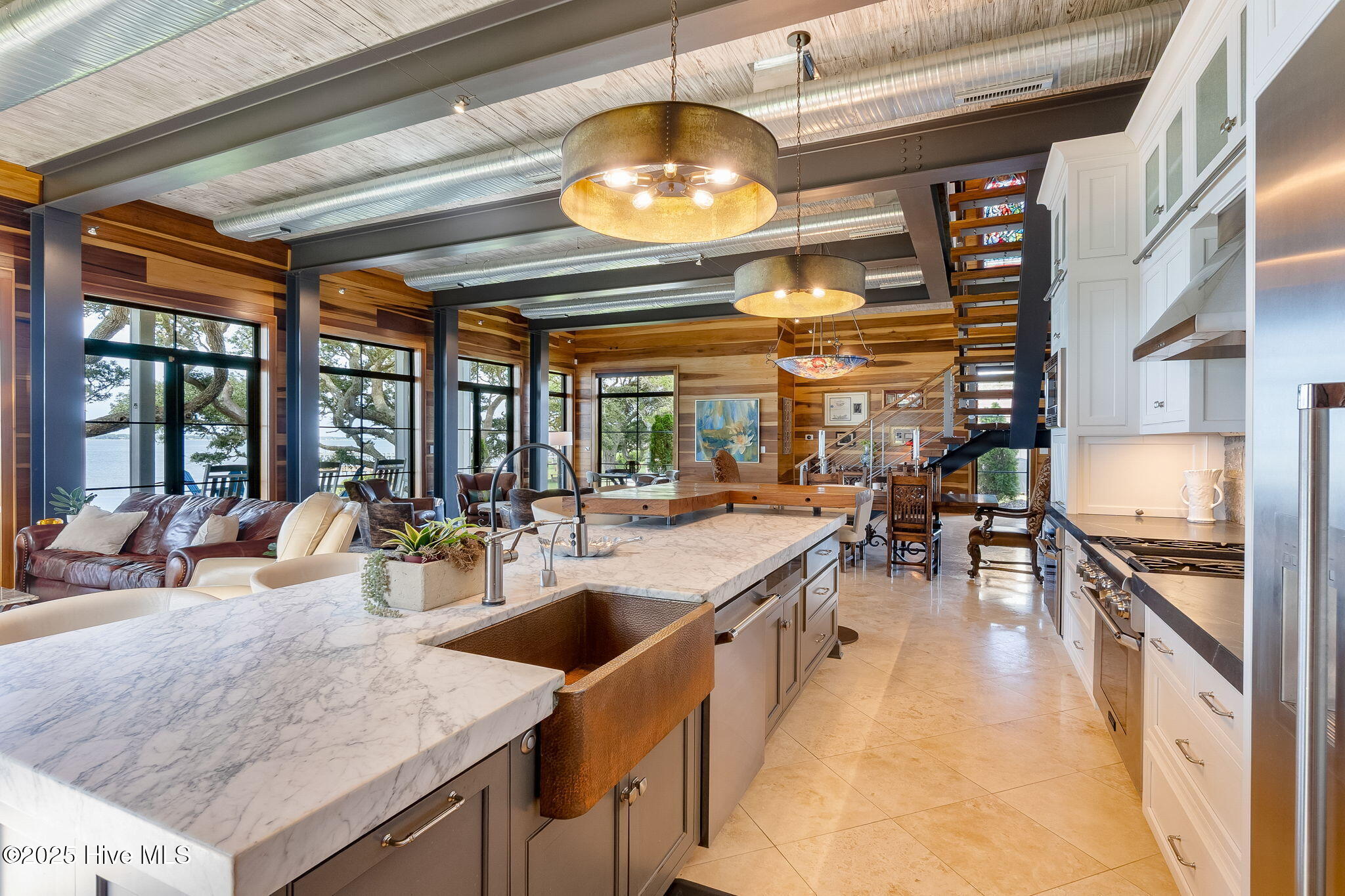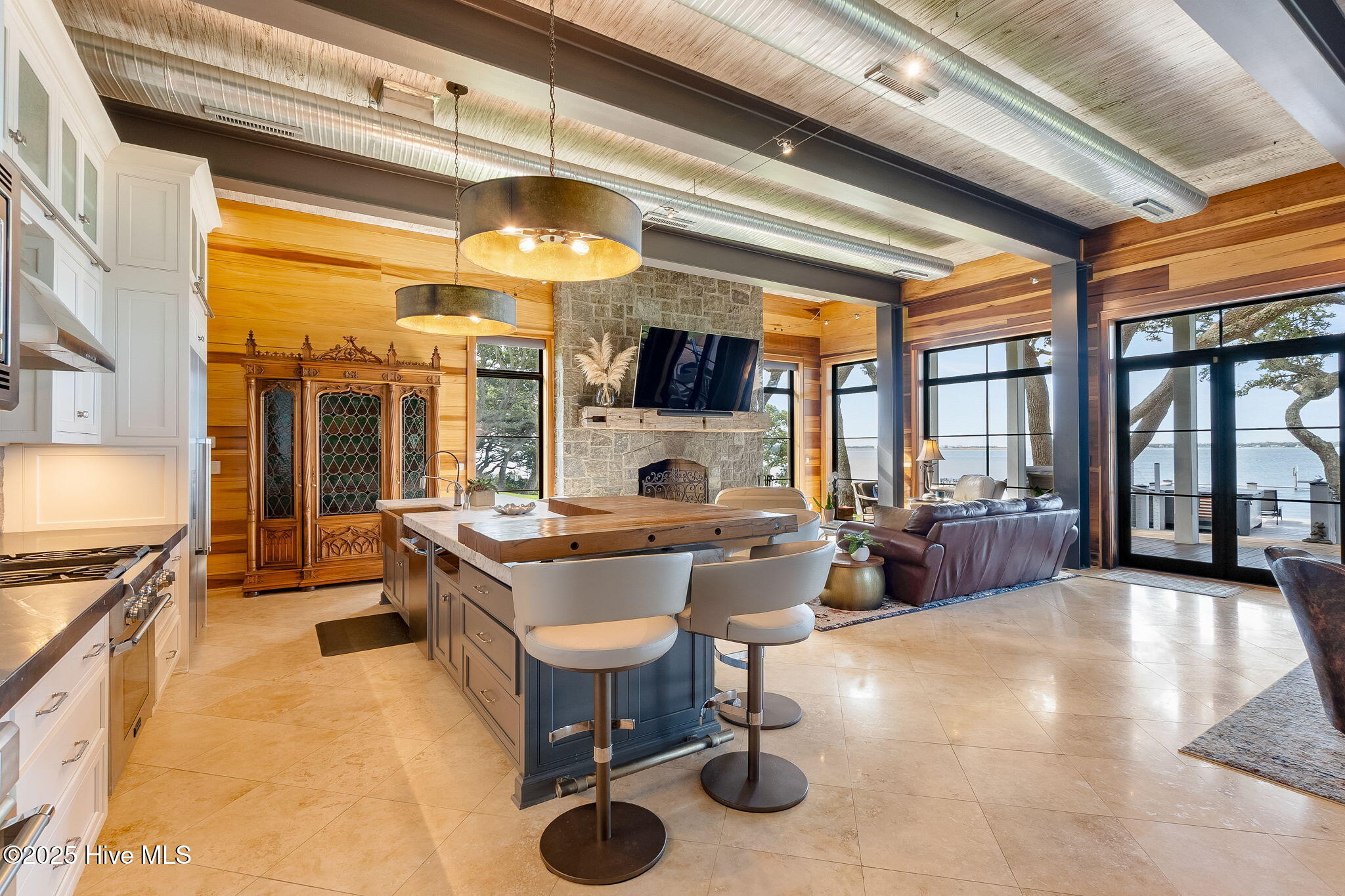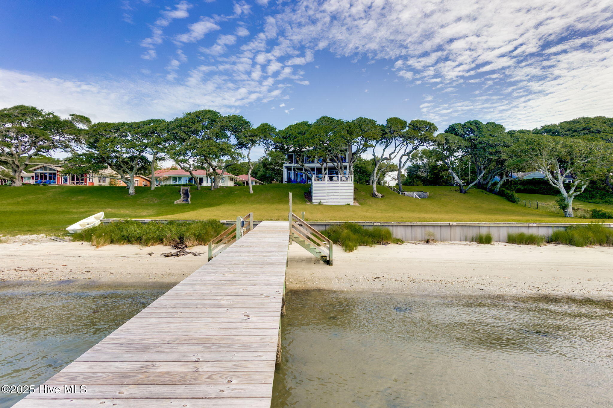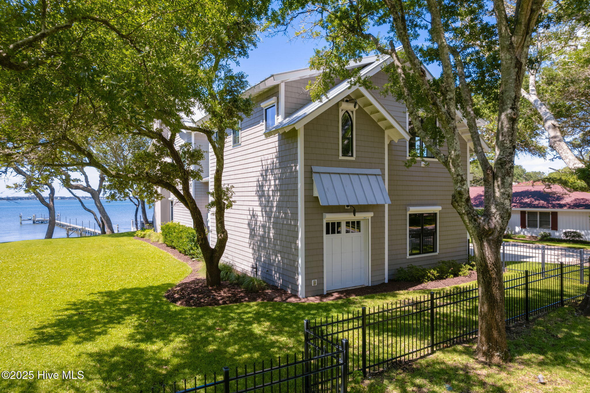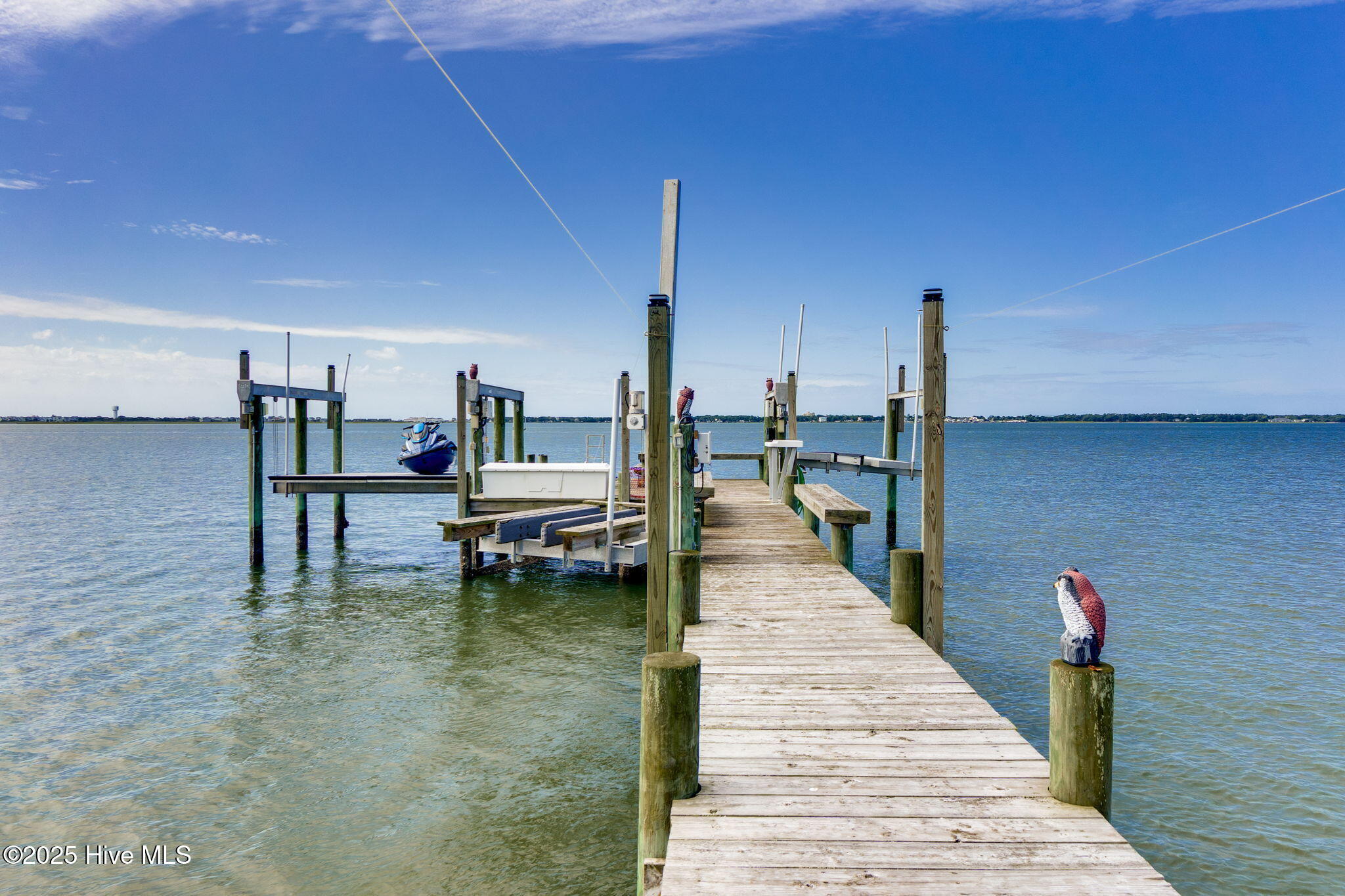 Welcome to 4103 and 4101 Sound Drive, featuring 5 bedrooms and 5 1/2 bath waterfront estate blending old-world influences with refined, high-end details. Set among wind-sculpted live oaks and lush gardens, the home offers sweeping views of Bogue Sound in endless shades of blue. This offering includes 4101 Sound Drive, the adjacent soundfront lot, creating an extraordinary estate along Bogue Sound. Inside, every space is designed to inspire—from the private library with rolling ladder to the wine room ready for evening toasts. The primary suite evokes luxury with a soaking tub framed by picture windows and a cozy fireplace. With five en-suite bedrooms, soaring ceilings, safe rooms, and countless custom features, this residence is both functional and unforgettable. (See additional information highlighting the property's construction and exceptional quality). Outdoor living is just as captivating, with covered porches and patios overlooking the Sound—perfect for summer afternoons and fall fiery sunsets. Architecturally, the home balances timeless southern design with modern sophistication. Double porches and expansive windows welcome natural light while connecting to the oversized soundside yard and three hundred-feet long dock with 20,000 lb., 9,000 lb., and 1,000 lb. watercraft lifts. An expanded deck holds a hot tub nestled amongst the live oaks, with additional storage below for all your outdoor gear. Rich in history and craftsmanship, the home incorporates repurposed timbers from 19th-century Amish barns, reclaimed hickory floors, tobacco barn beams, and live oak once destined for the USS Constitution—each detail infusing character and artistry. The gourmet kitchen, multiple gathering spaces, and custom finishes make it an ideal retreat for everyday living or entertaining on a grand scale. Come experience 4103 and 4101 Sound Drive- it's an elegant fortress, designed to inspire and endure for generations.