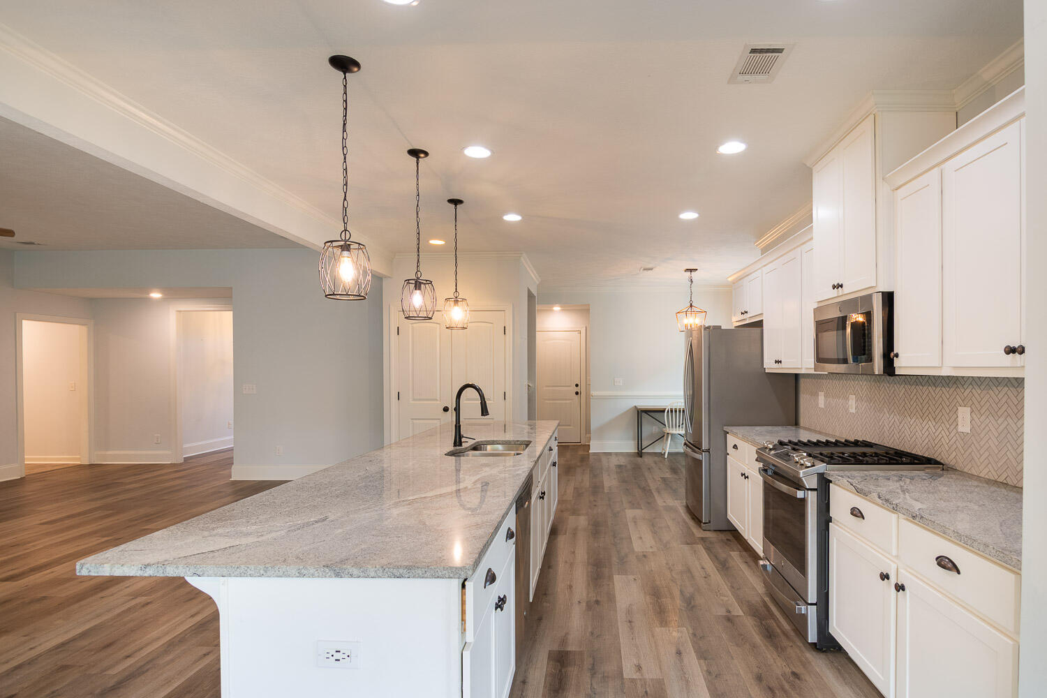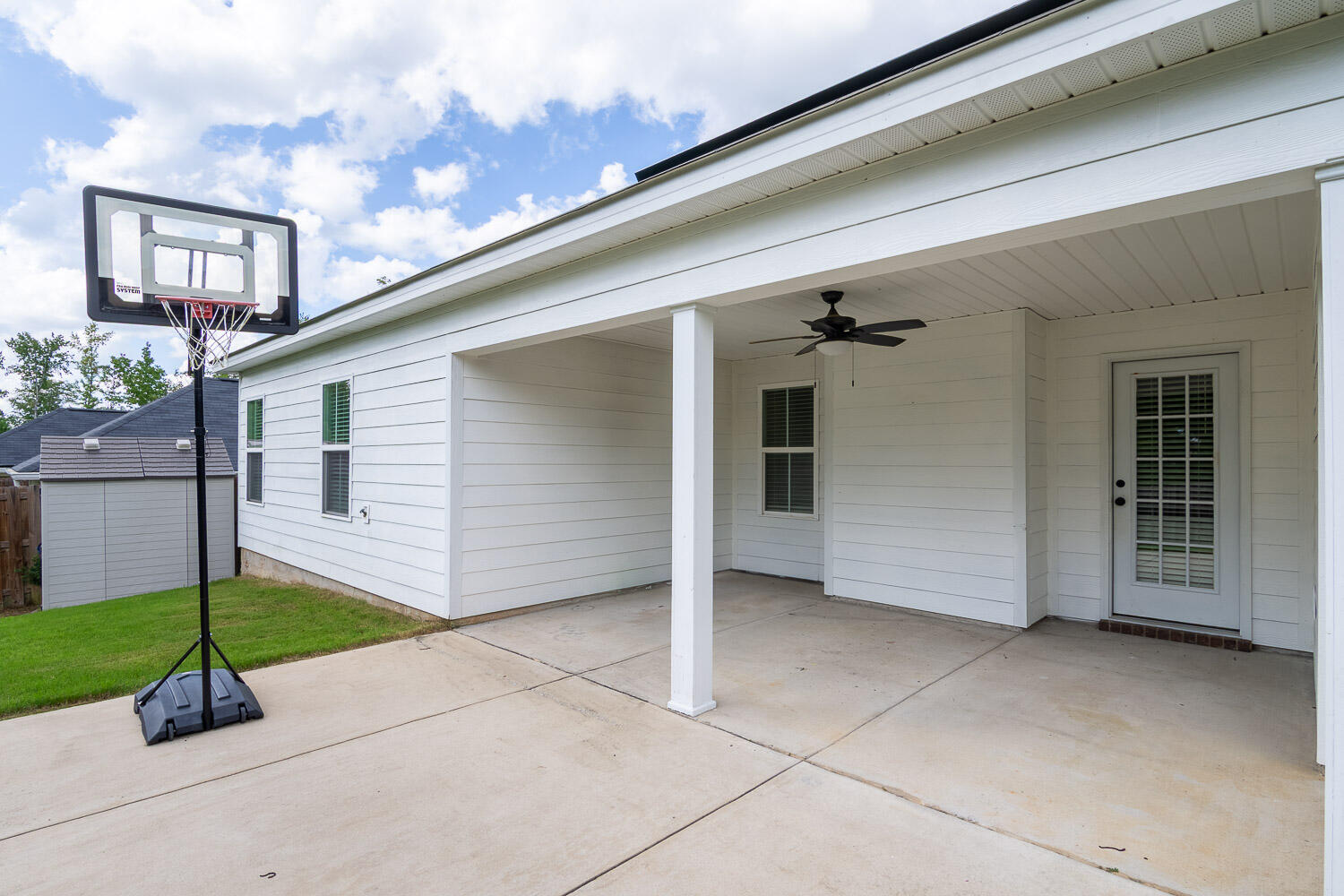 Hard to find ranch style floor plan with tons of upgrades, situated in a cul-de-sac. 4 bedrooms, including owner's suite, on main floor, and an additional bedroom/flex room with a full bathroom upstairs! This home has beautiful curb appeal and has been freshly landscaped and power-washed. Walk in off the front porch to a welcoming foyer and open floor plan. The living room has high ceilings, a custom shiplap wall surrounding the fireplace, and an upgraded ceiling fan. The gourmet kitchen features a large granite island, pendant lighting, stainless steel appliances, custom tile backsplash, and separate pantry. There is both a breakfast room and a formal dining room with heavy trim-work. The spacious owner's suite features his and her walk in closets, en-suite bath with garden tub and separate shower, and his and her vanities. Downstairs there are 3 other spacious bedrooms, and a full bathroom with dual vanities. Upstairs is another full bedroom, large enough to be a game room or home office, with a private full bathroom and LVT flooring. Outside is a privacy fenced in backyard with covered patio and storage shed that backs up to green-space for added privacy. Easy access to I-20/Fort Gordon and Medical District and sought after Columbia County Schools.