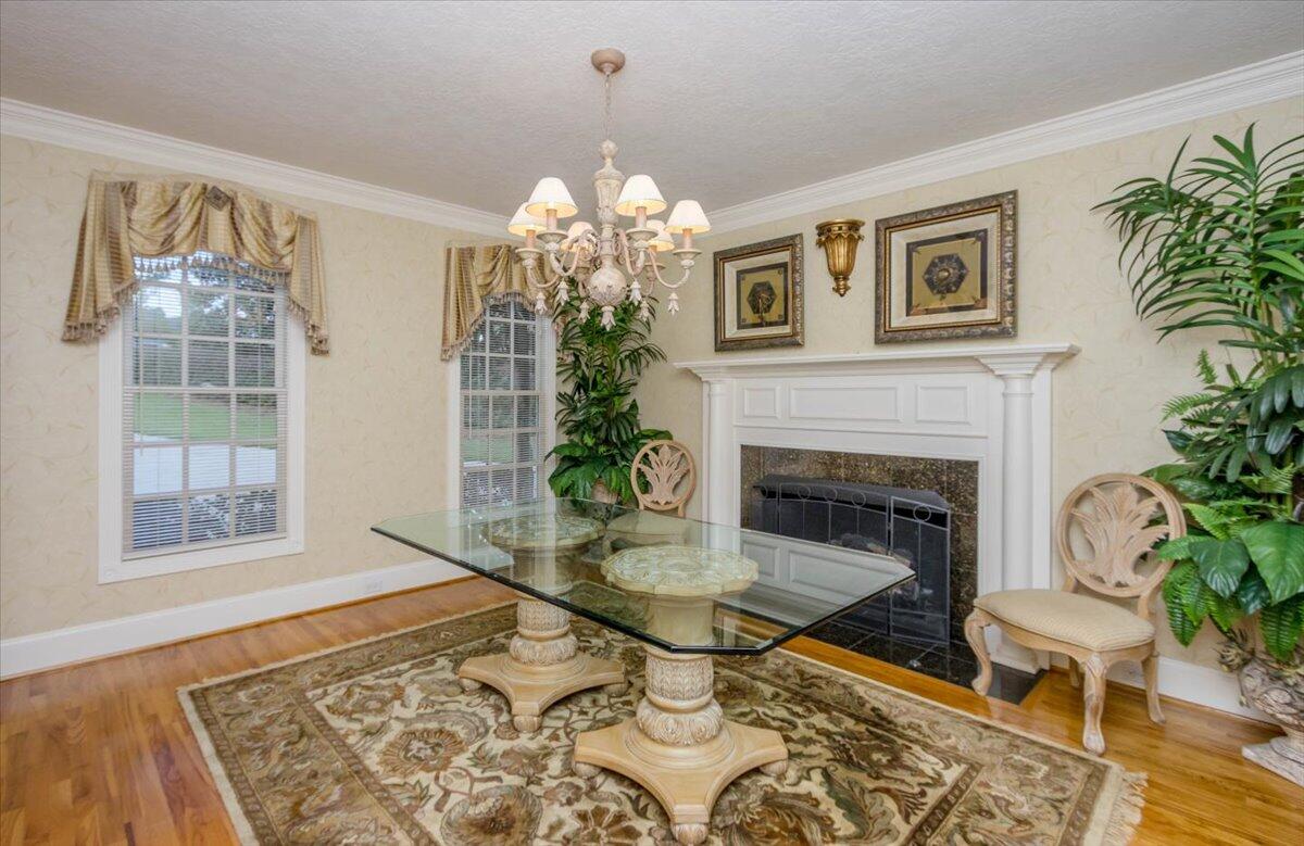 Custom brick home with quality upgrades throughout! Enjoy gleaming hardwood floors, 4 bedrooms, and 3.5 bathrooms. This thoughtfully designed home features 3 fireplaces, 2 covered porches - one off the primary suite for quiet mornings and another off the great room for relaxing evenings. The unique playroom offers versatile use, while the finished workshop and walk-in crawl space add valuable functionality. Situated on a cul-de-sac lot, the side-loading garage includes an extra storage room. Located in a gated community with fantastic amenities - neighborhood pool, tennis/pickleball/basketball courts, and a clubhouse. Centrally located near restaurants, medical facilities, and shopping.