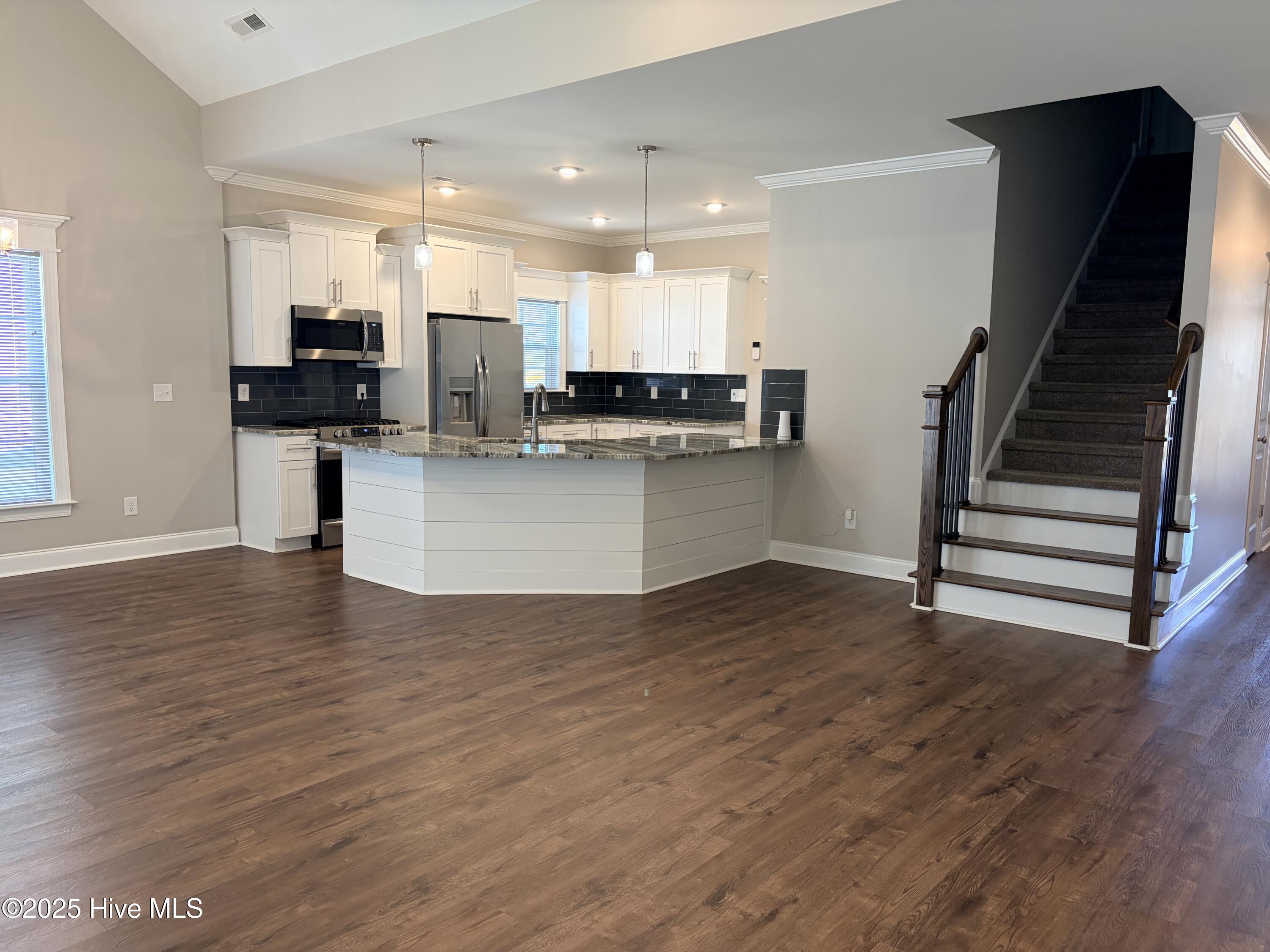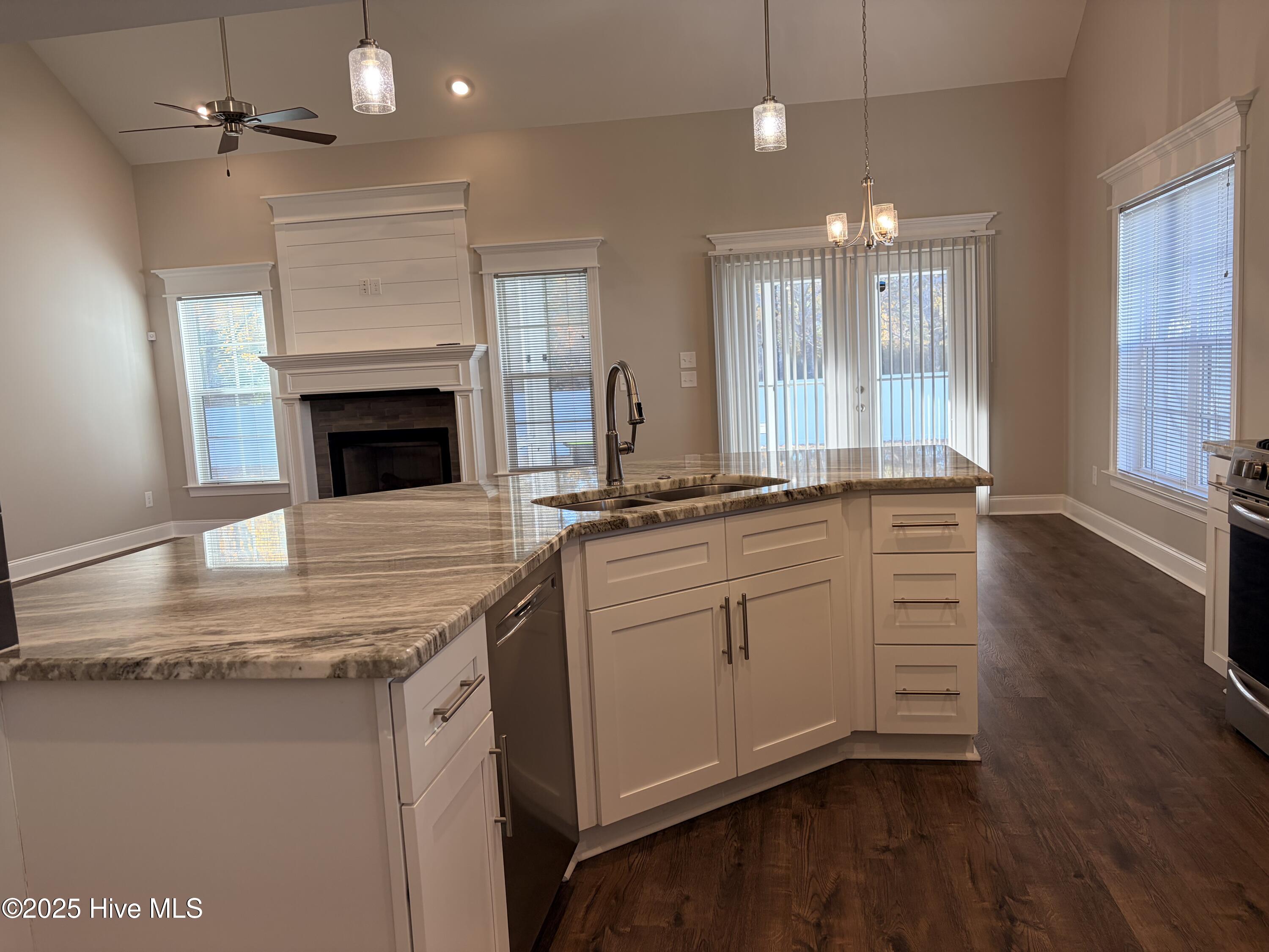Welcome to this immaculate 4-bedroom, 3-bath home in the desirable new-construction community of Dalton's Cove. This home truly has everything you need and more! Step inside to an open floor plan with soaring 9+ ft. ceilings, luxury vinyl plank flooring, and a bright living space perfect for entertaining. The chef's kitchen features a gas stovetop, granite countertops, stainless steel appliances, and a washer/dryer. The Master Suite is a true retreat with tray ceilings, a large walk-in closet, and a spa-like en suite. This home has also been enhanced with thoughtful upgrades, including a screened-in back patio, white vinyl privacy fence, extended driveway, and gutters. Flex screens and blinds have been installed on all windows, while storm doors were added to the front and side entries. The owners have also beautifully landscaped the front flower bed with decorative blocks, and for added peace of mind, a SimpliSafe alarm system has been installed. Home also has a tankless Hot Water Heater for energy efficiency! With its modern finishes, spacious layout, and move-in ready improvements already complete, this home offers the perfect blend of style, comfort, and convenience—all within a vibrant neighborhood where new homes are still being built. Don't miss your chance to own this turn-key beauty in Dalton's Cove!