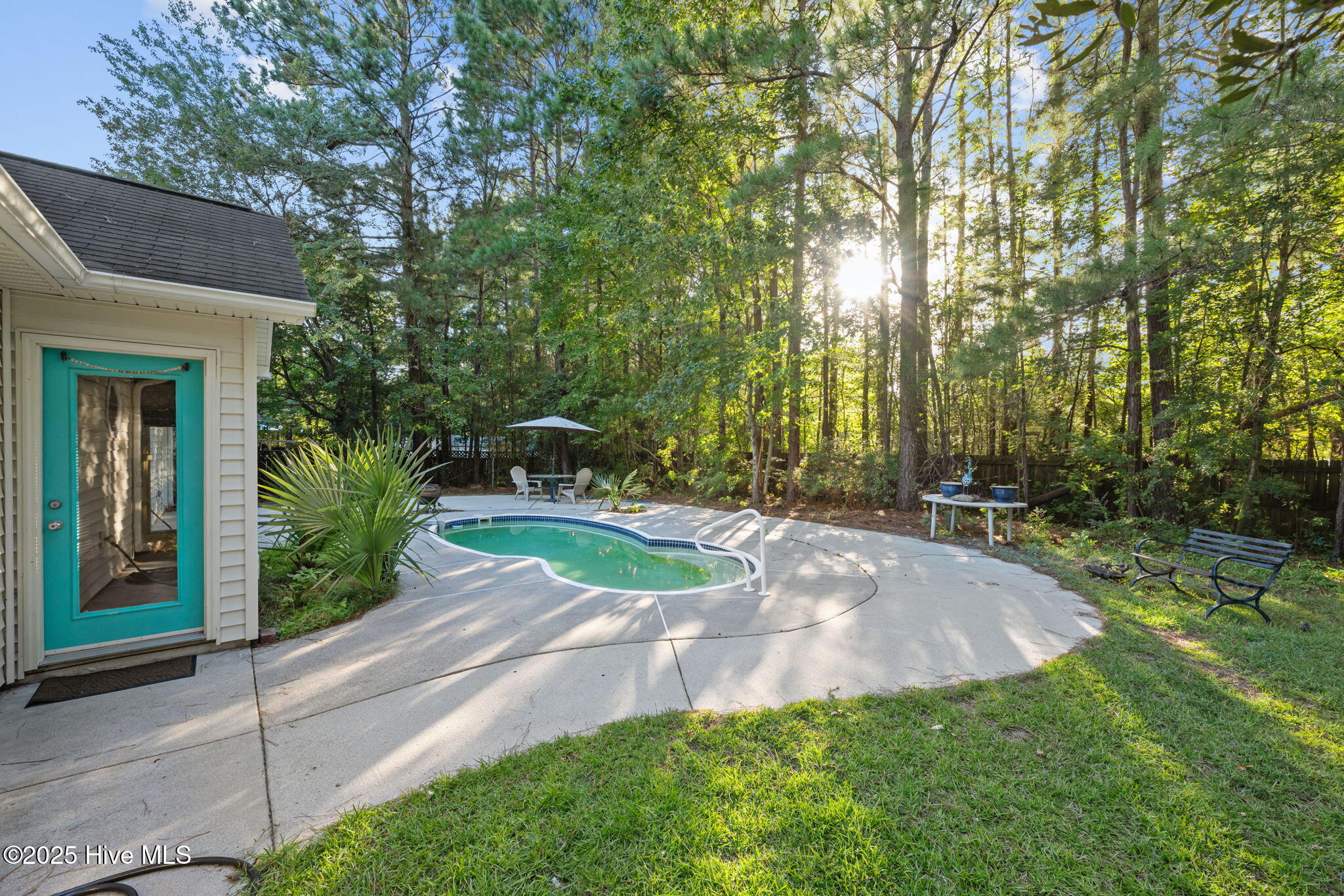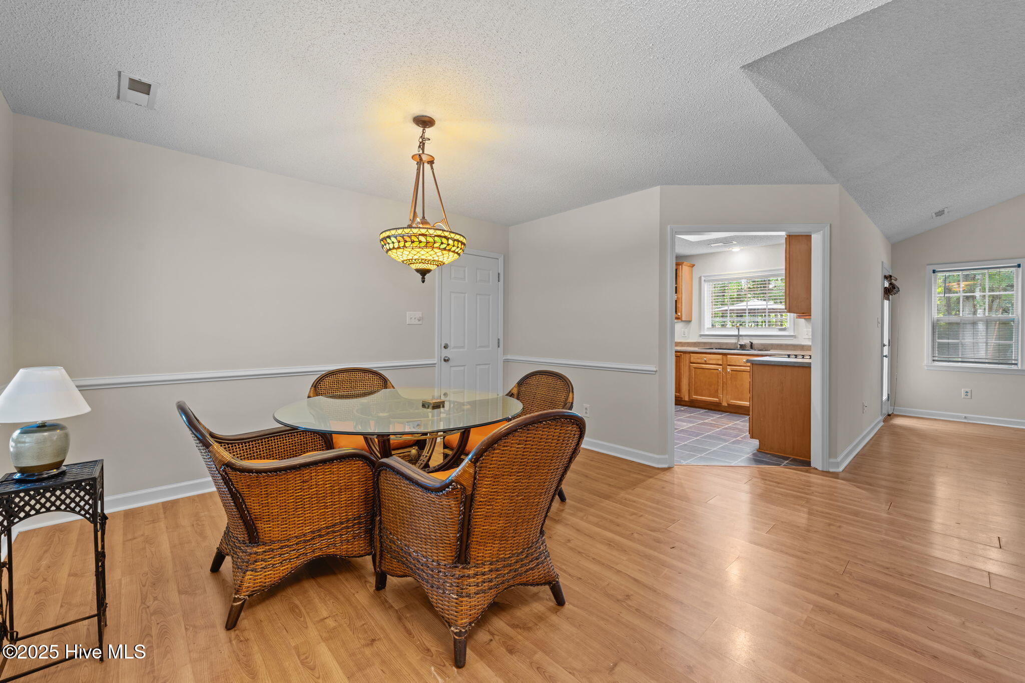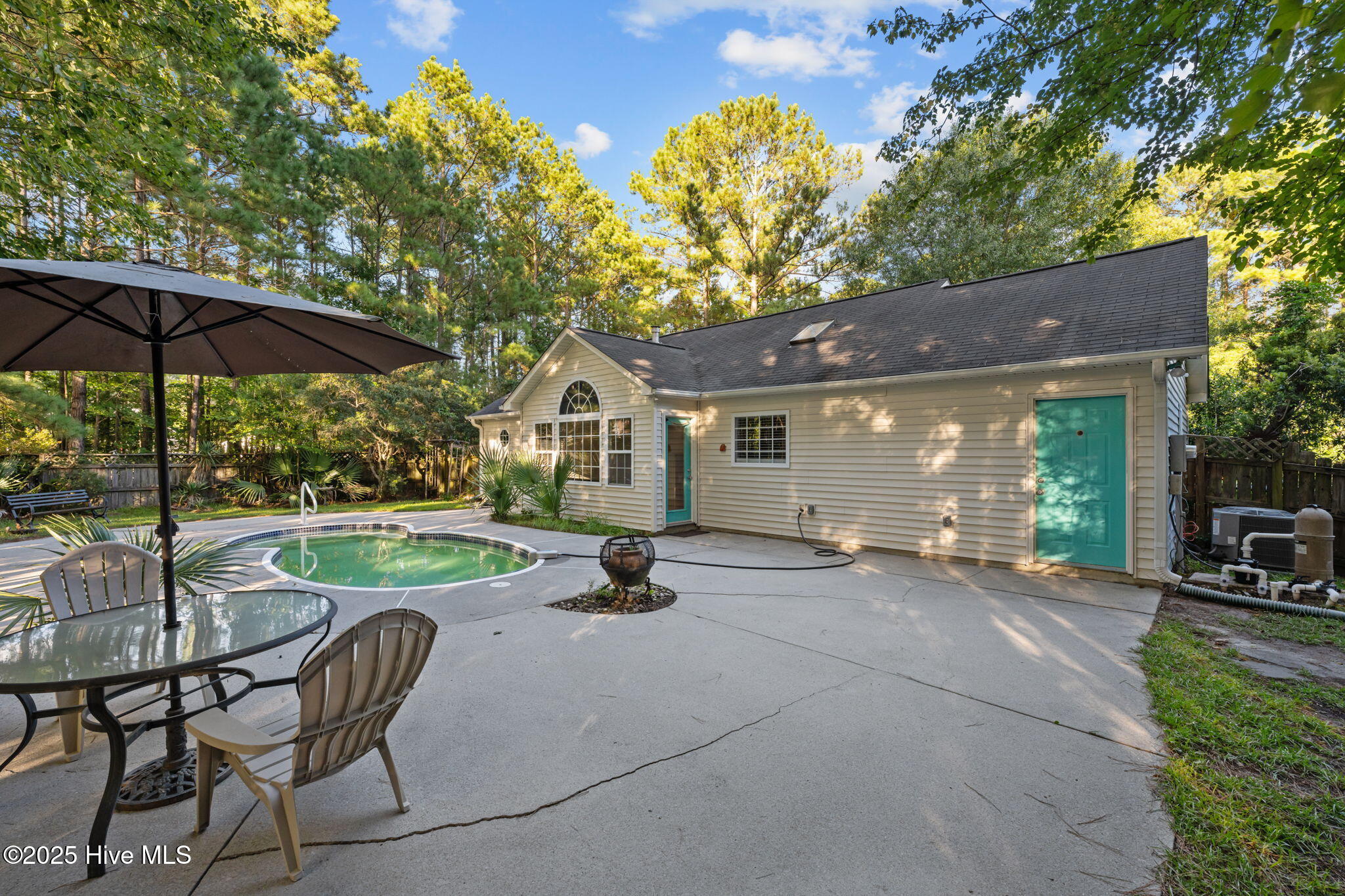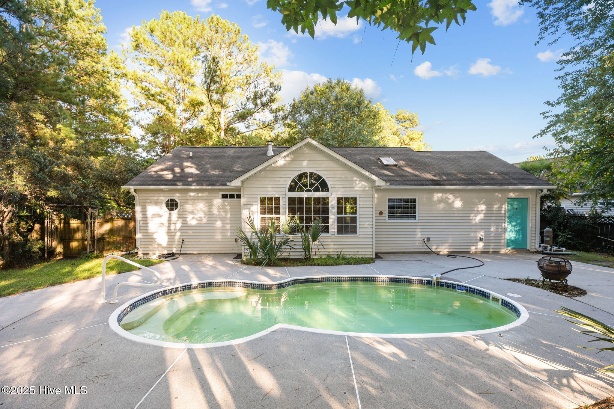 Welcome home to this beautifully maintained, one-owner home, offering inviting spaces both inside & out, located in desirable Derby Park. From the moment you arrive, the newly painted front door and charming rocking chair front porch set a welcoming tone. Step inside to an open-concept layout with wonderful flow from front to back—perfect for family living or entertaining. Most of the interior has been freshly painted, including all interior doors, with durable laminate flooring throughout the living, dining, and hallway areas. The spacious dining area, adorned with chair rail and a large double window, provides ample room for family meals, sits conveniently off the kitchen. A generous living room features soaring cathedral ceilings, a gas-log FP with tile hearth and surround, and a back wall of triple windows with a palatial transom window above, filling the space with natural light and offering beautiful views of the backyard. Two French doors open to your private outdoor oasis—an in-ground pool surrounded by a concrete patio and framed by a wooded border. The kitchen is both functional and bright, with abundant cabinetry, ample counter space, newly installed, never used appliances including a wall oven with built-in microwave, raised dishwasher, electric cooktop, and range hood—all replaced in 2025. A skylight and a window offer great natural light in this area. An updated black stainless steel refrigerator conveys with the home. The spacious owner's suite includes new carpet (June 2025), a ceiling fan, large walk-in closet, and a private bath with pedestal sink and step-in shower. Two additional bedrooms offer flexible space for new owners as guestroom, a home office, craft room, etc Nicely appointed hall bath for guests. Additional features include a one-car garage w/bookshelves for storage and a rear exit to the yard. In the garage is also pull-down attic stairs. Complete HVAC system was just recently replaced in 2025. More....