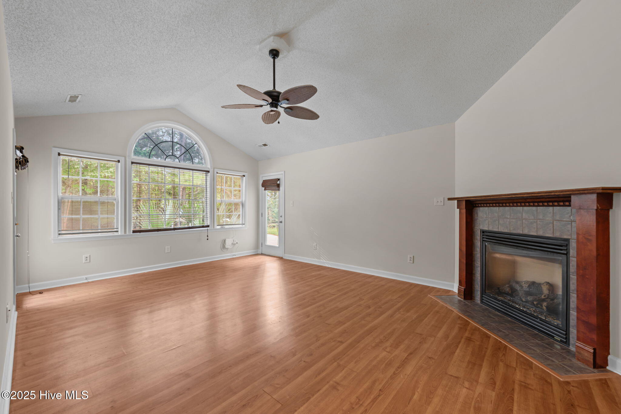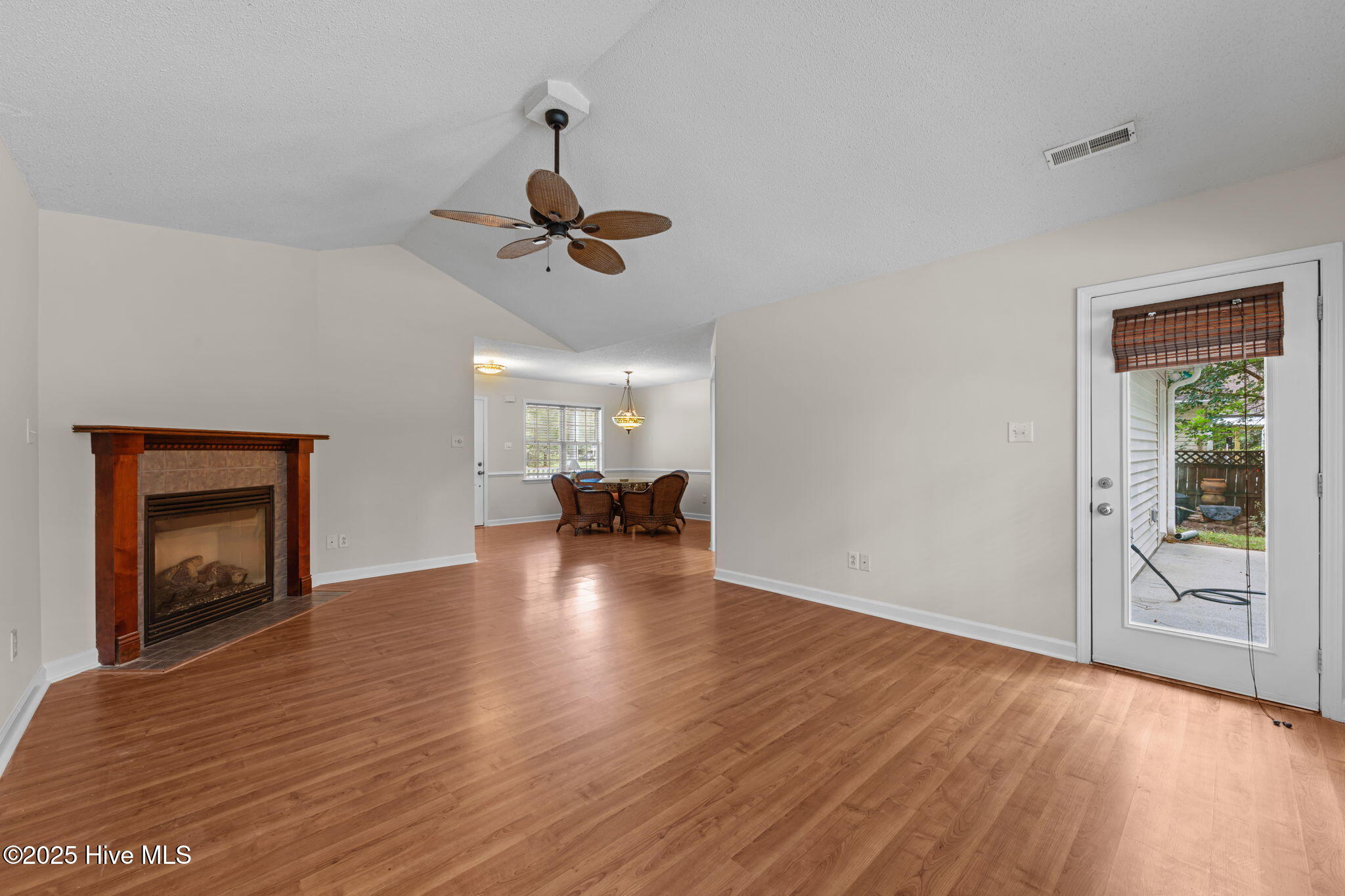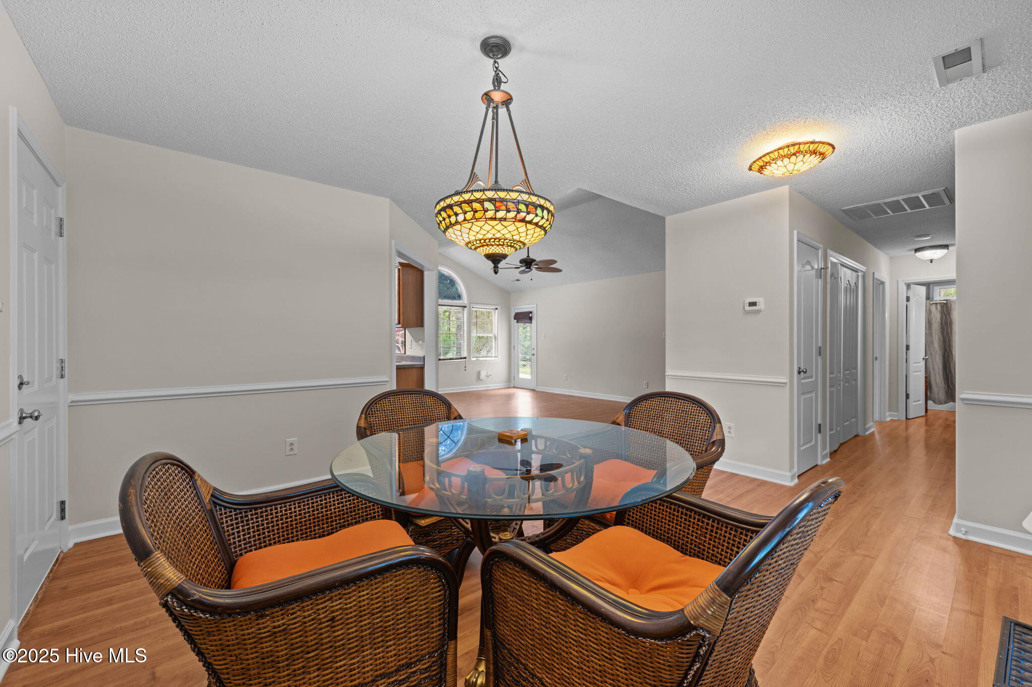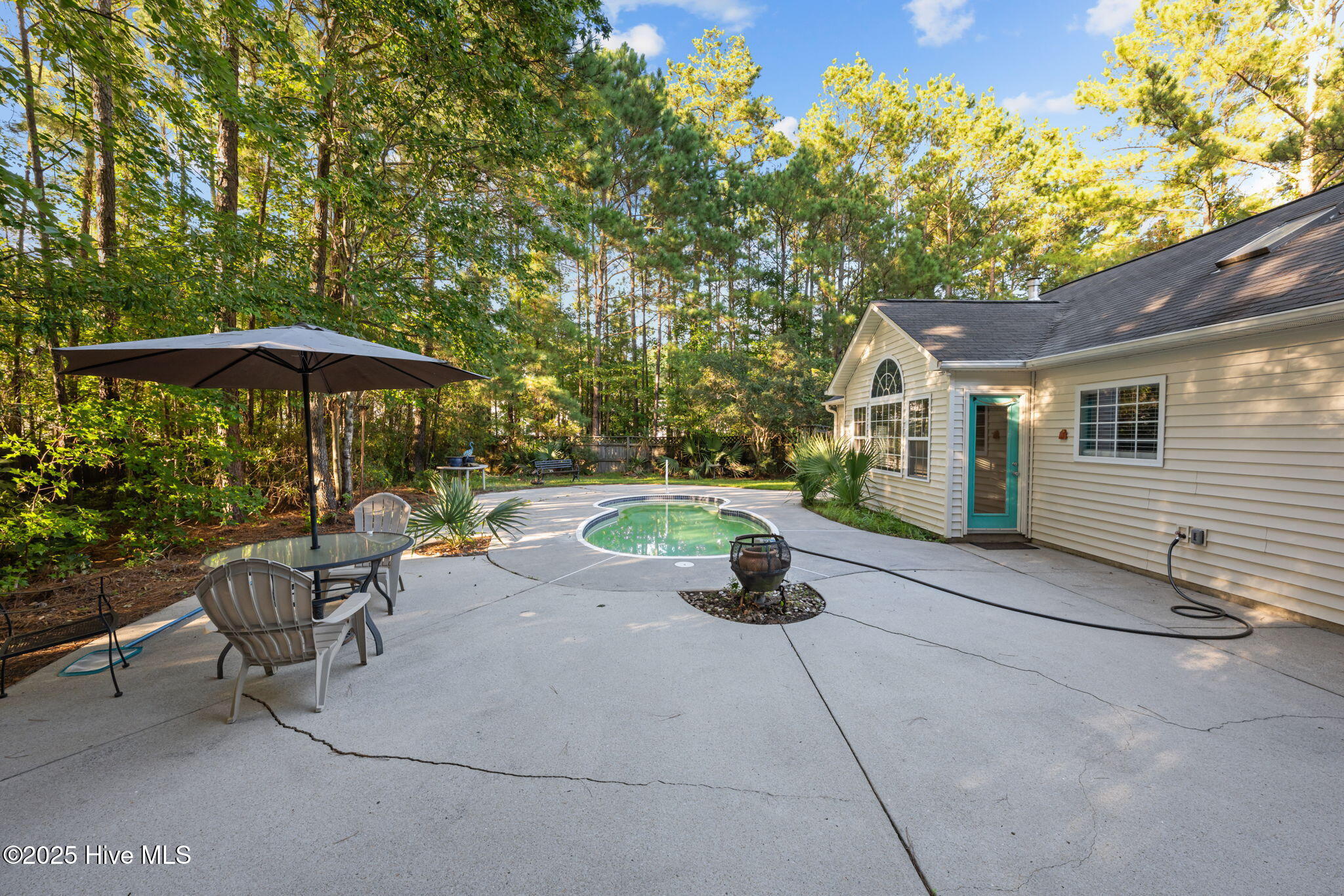 Welcome home to this beautifully maintained, one-owner home, offering inviting spaces both inside & out, located in desirable Derby Park. From the moment you arrive, the newly painted front door and charming rocking chair front porch set a welcoming tone. Step inside to an open-concept layout with wonderful flow from front to back—perfect for family living or entertaining. Most of the interior has been freshly painted, including all interior doors, with durable laminate flooring throughout the living, dining, and hallway areas. The spacious dining area, adorned with chair rail and a large double window, provides ample room for family meals, sits conveniently off the kitchen. A generous living room features soaring cathedral ceilings, a gas-log FP with tile hearth and surround, and a back wall of triple windows with a palatial transom window above, filling the space with natural light and offering beautiful views of the backyard. Two French doors open to your private outdoor oasis—an in-ground pool surrounded by a concrete patio and framed by a wooded border. The kitchen is both functional and bright, with abundant cabinetry, ample counter space, newly installed, never used appliances including a wall oven with built-in microwave, raised dishwasher, electric cooktop, and range hood—all replaced in 2025. A skylight and a window offer great natural light in this area. An updated black stainless steel refrigerator conveys with the home. The spacious owner's suite includes new carpet (June 2025), a ceiling fan, large walk-in closet, and a private bath with pedestal sink and step-in shower. Two additional bedrooms offer flexible space for new owners as guestroom, a home office, craft room, etc Nicely appointed hall bath for guests. Additional features include a one-car garage w/bookshelves for storage and a rear exit to the yard. In the garage is also pull-down attic stairs. Complete HVAC system was just recently replaced in 2025. More....