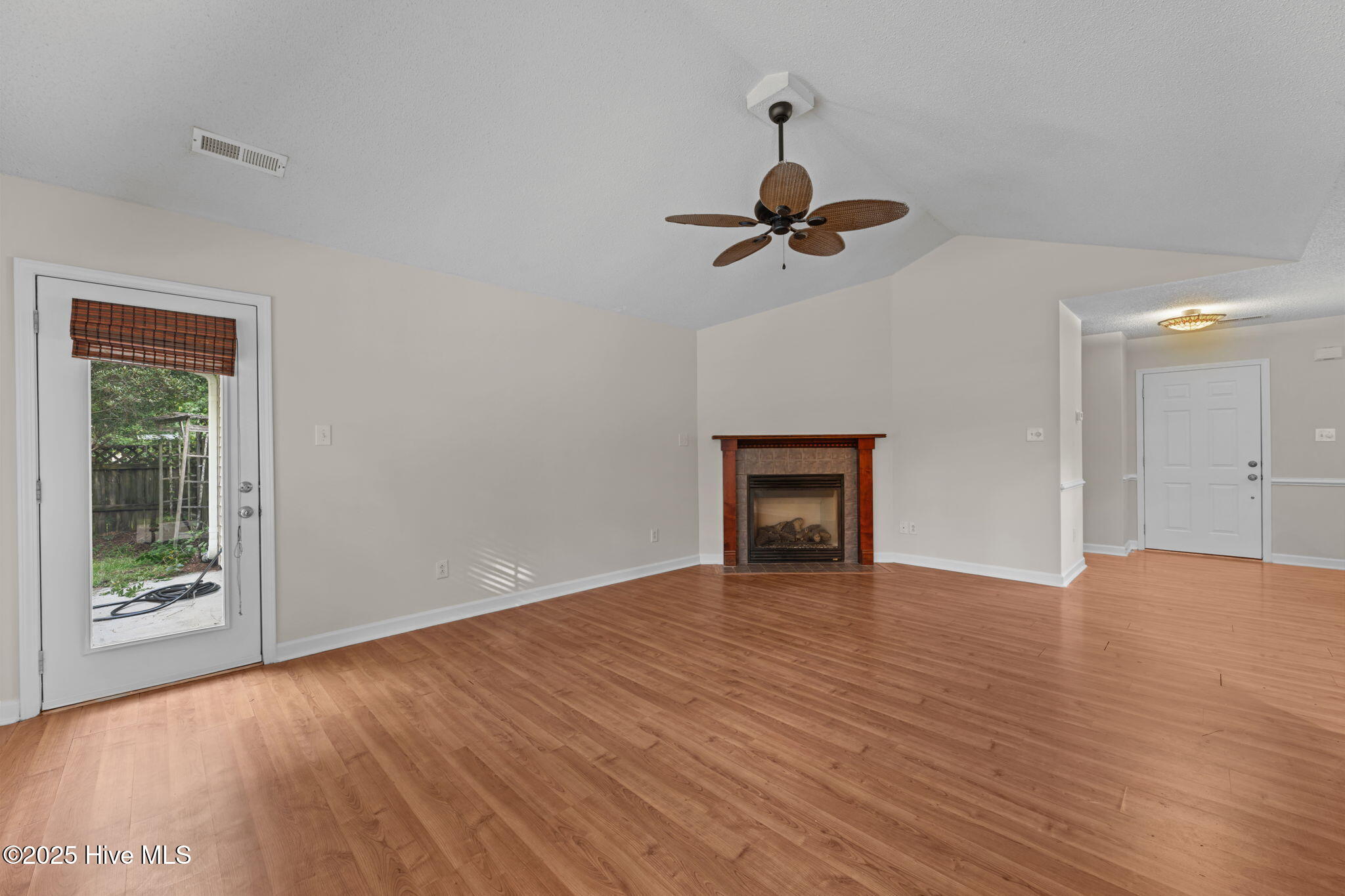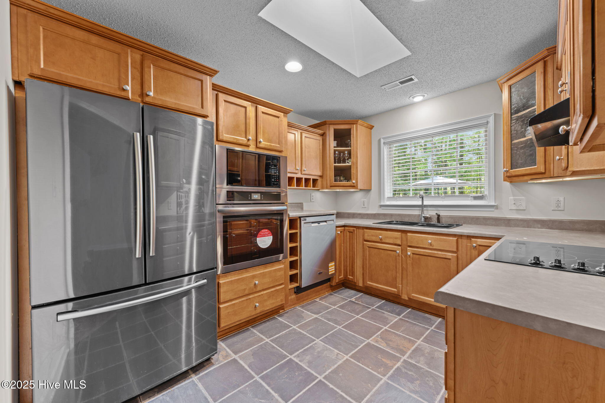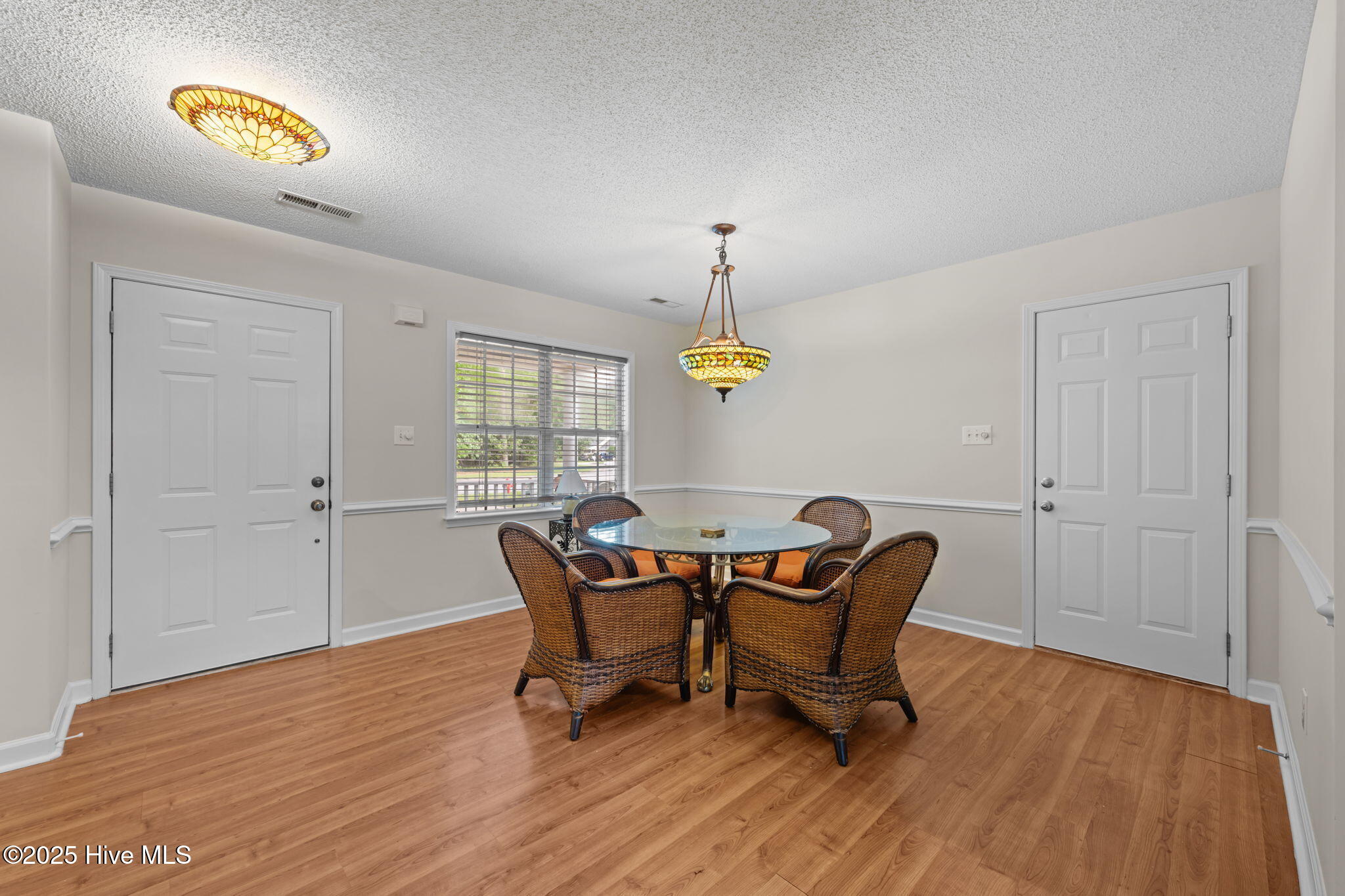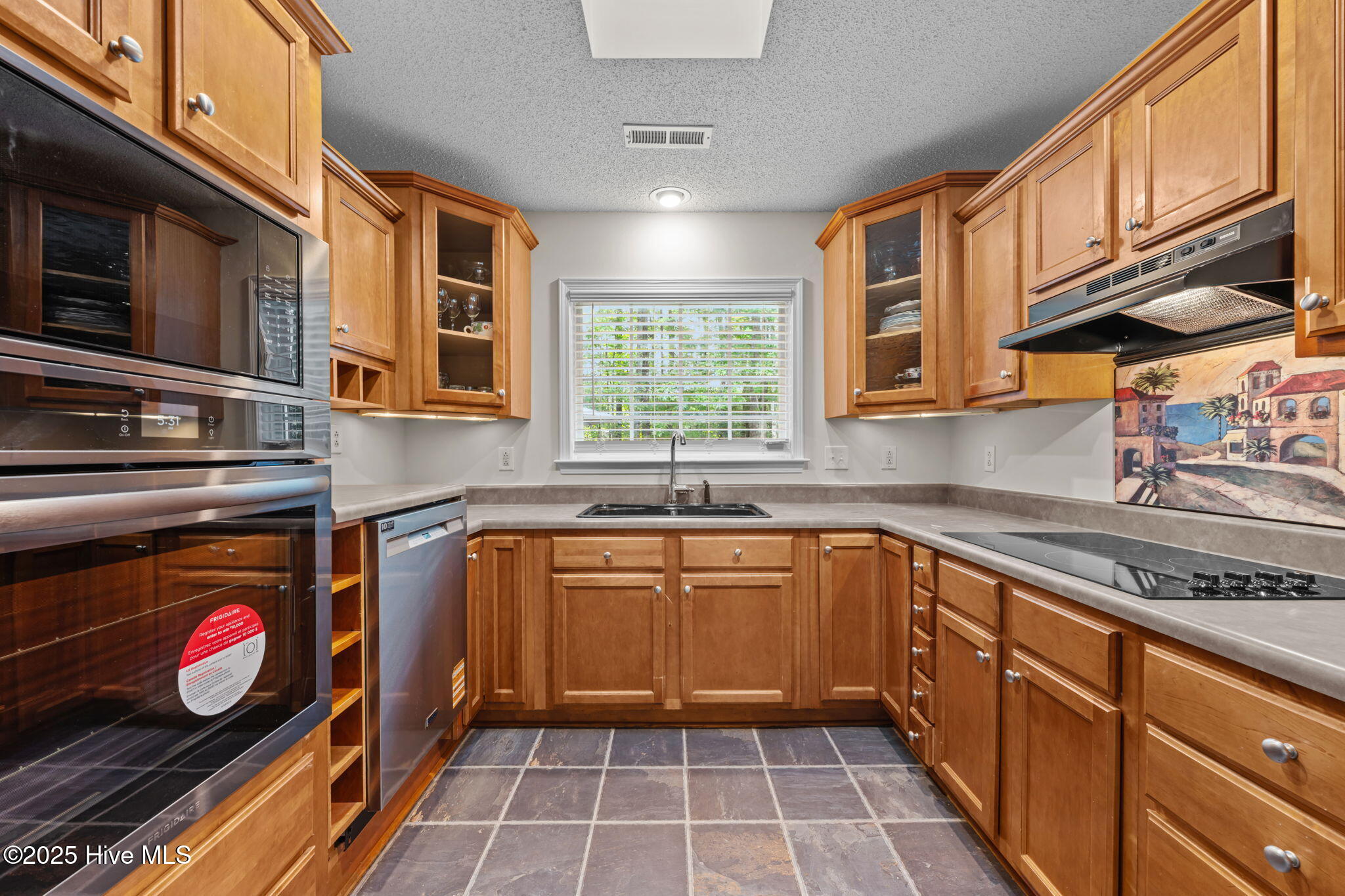 Welcome home to this beautifully maintained, one-owner home, offering inviting spaces both inside & out, located in desirable Derby Park. From the moment you arrive, the newly painted front door and charming rocking chair front porch set a welcoming tone. Step inside to an open-concept layout with wonderful flow from front to back—perfect for family living or entertaining. Most of the interior has been freshly painted, including all interior doors, with durable laminate flooring throughout the living, dining, and hallway areas. The spacious dining area, adorned with chair rail and a large double window, provides ample room for family meals, sits conveniently off the kitchen. A generous living room features soaring cathedral ceilings, a gas-log FP with tile hearth and surround, and a back wall of triple windows with a palatial transom window above, filling the space with natural light and offering beautiful views of the backyard. Two French doors open to your private outdoor oasis—an in-ground pool surrounded by a concrete patio and framed by a wooded border. The kitchen is both functional and bright, with abundant cabinetry, ample counter space, newly installed, never used appliances including a wall oven with built-in microwave, raised dishwasher, electric cooktop, and range hood—all replaced in 2025. A skylight and a window offer great natural light in this area. An updated black stainless steel refrigerator conveys with the home. The spacious owner's suite includes new carpet (June 2025), a ceiling fan, large walk-in closet, and a private bath with pedestal sink and step-in shower. Two additional bedrooms offer flexible space for new owners as guestroom, a home office, craft room, etc Nicely appointed hall bath for guests. Additional features include a one-car garage w/bookshelves for storage and a rear exit to the yard. In the garage is also pull-down attic stairs. Complete HVAC system was just recently replaced in 2025. More....