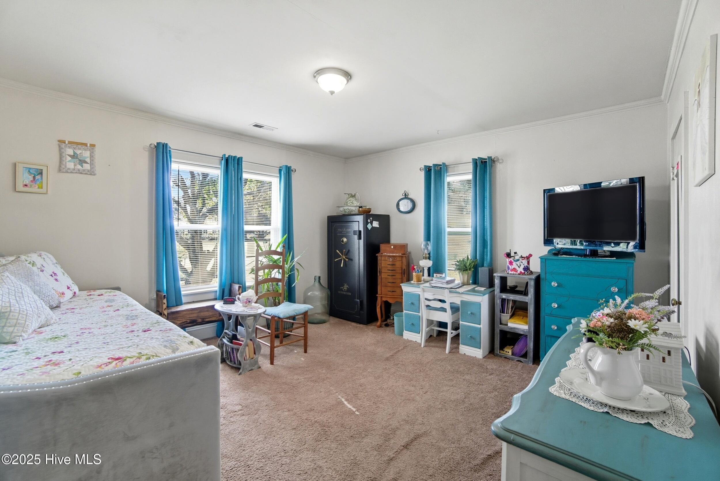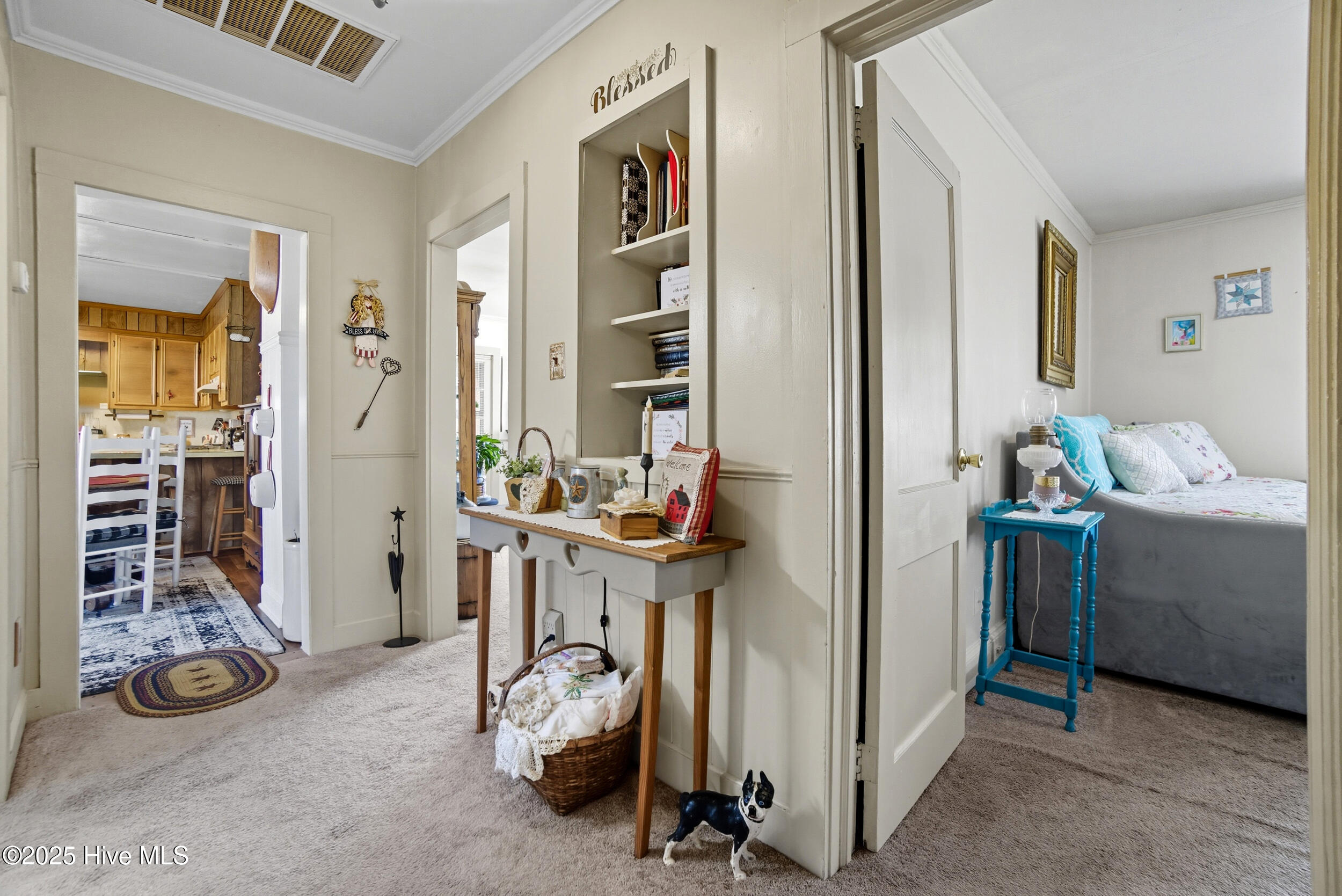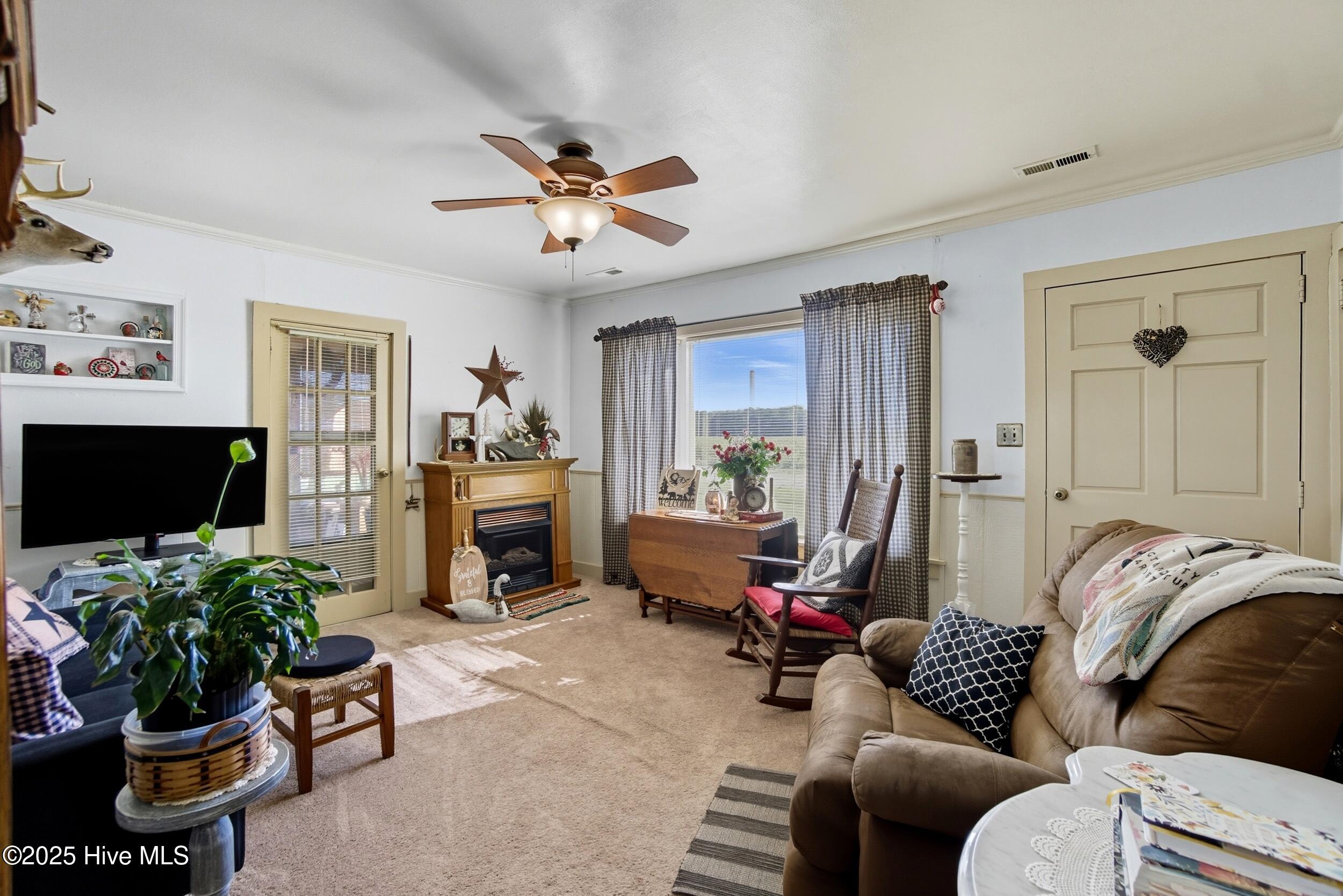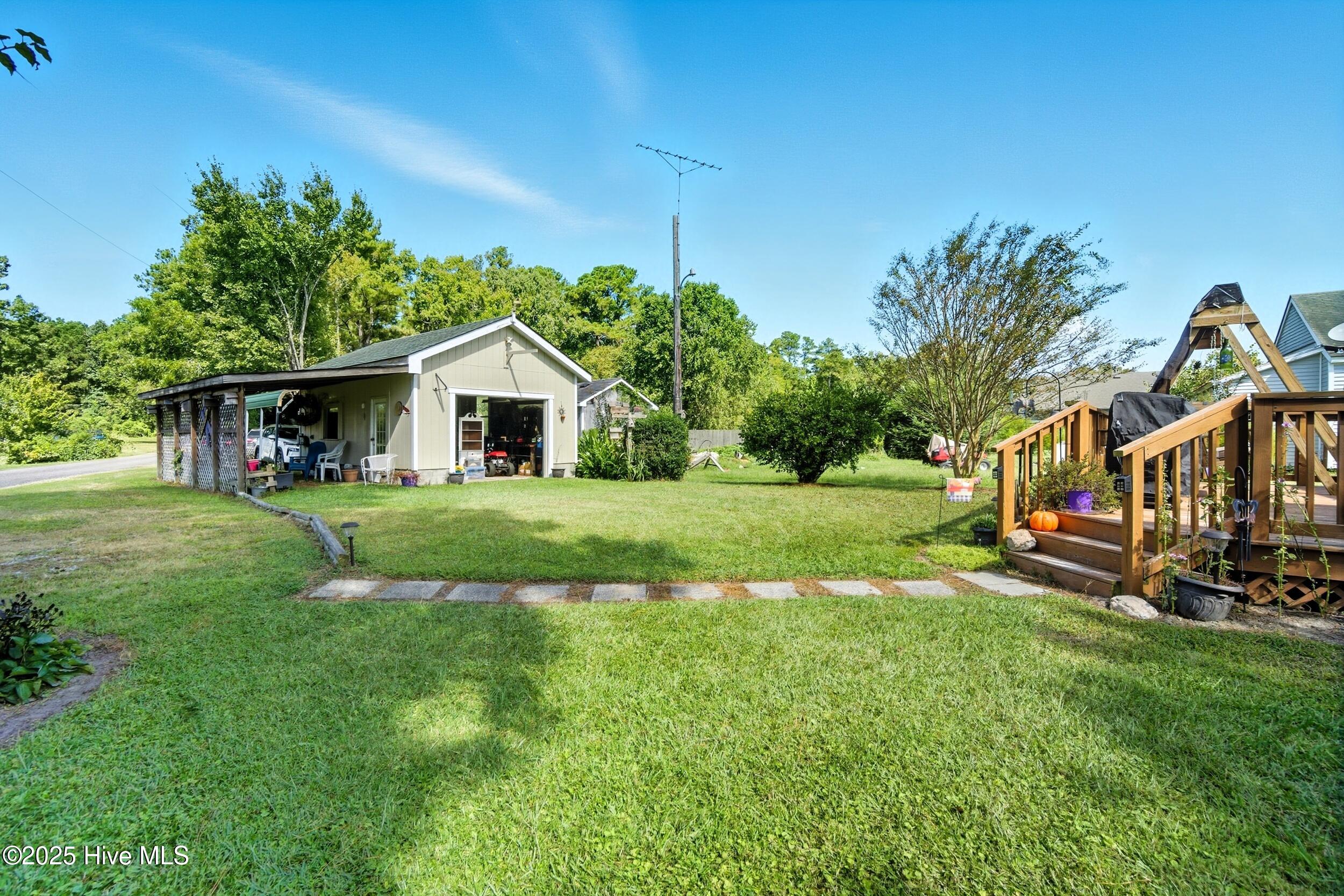 Looking for a cozy retreat with country charm? This well-cared-for 2-bedroom, 1-bath home offers comfort and convenience, just 10-15 minutes from shopping in Elizabeth City and the Coast Guard base. Inside, you'll find a functional layout with plenty of natural light, plus a spacious attic with full stair access for storage or potential expansion. Relax on the covered front porch or entertain on the large back deck. Recent updates include a durable metal roof completed in 2021. Outside, the property features a detached garage with electricity, additional carports, and plenty of workspace for projects. The tastefully landscaped yard and quiet surroundings make this the perfect spot to unwind and enjoy country living.