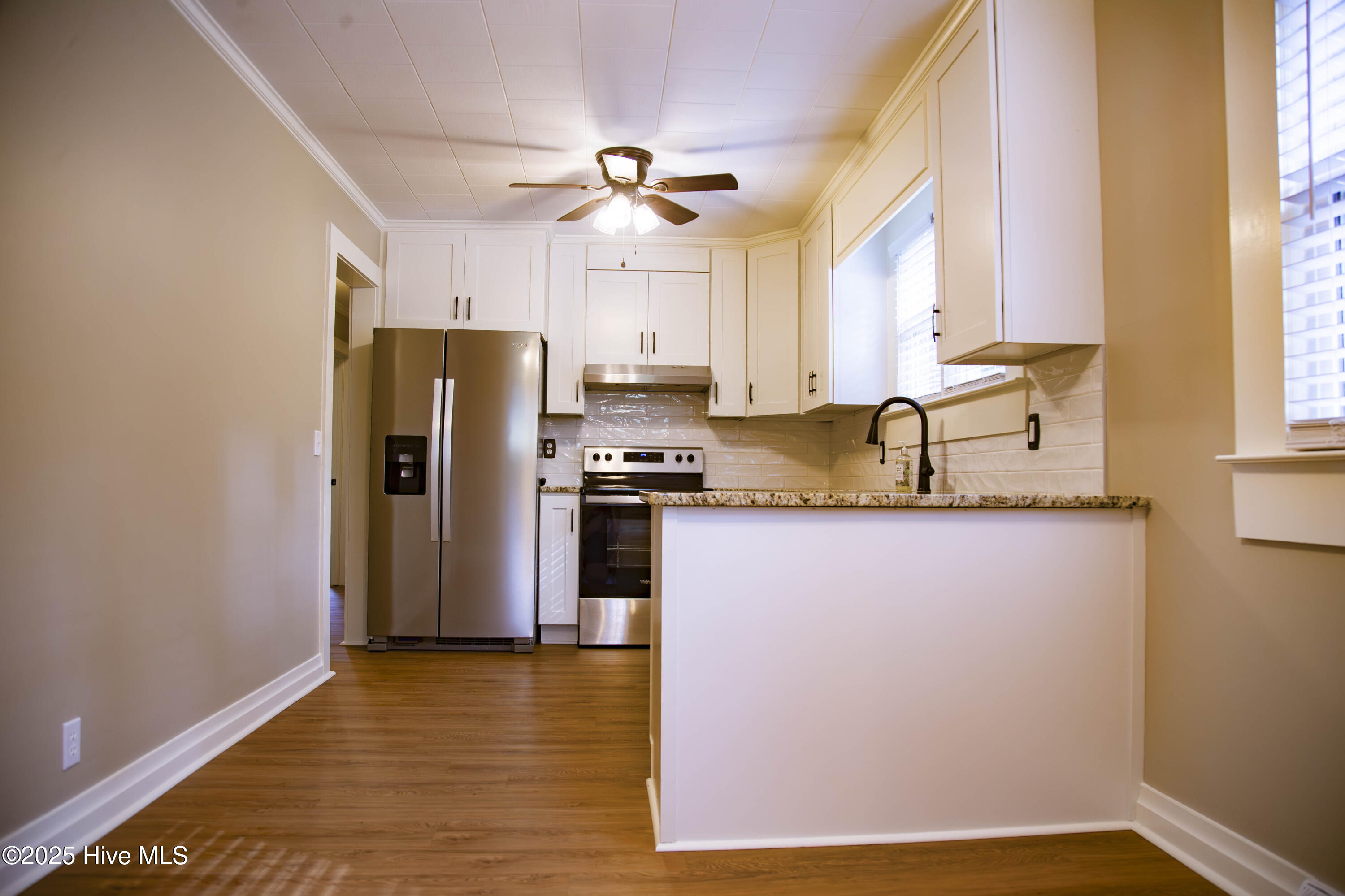 Charming 3-bedroom, 1-bath home in Biscoe, NC, situated on almost a ½-acre lot. Step inside to find a beautifully updated kitchen featuring new soft-close cabinetry, granite countertops, and subway tile backsplash. The bathroom has also been tastefully updated, while the entire home boasts fresh paint, new light fixtures, and refinished hardwood floors in the bedrooms. Enjoy outdoor living on the generous back deck, with a partially privacy-fenced backyard that includes a basketball court with concrete pad, outdoor building with electricity, and a 1-car carport. A metal roof provides peace of mind for years to come. This home blends comfort, updates, and outdoor amenities—ready for its next owner!