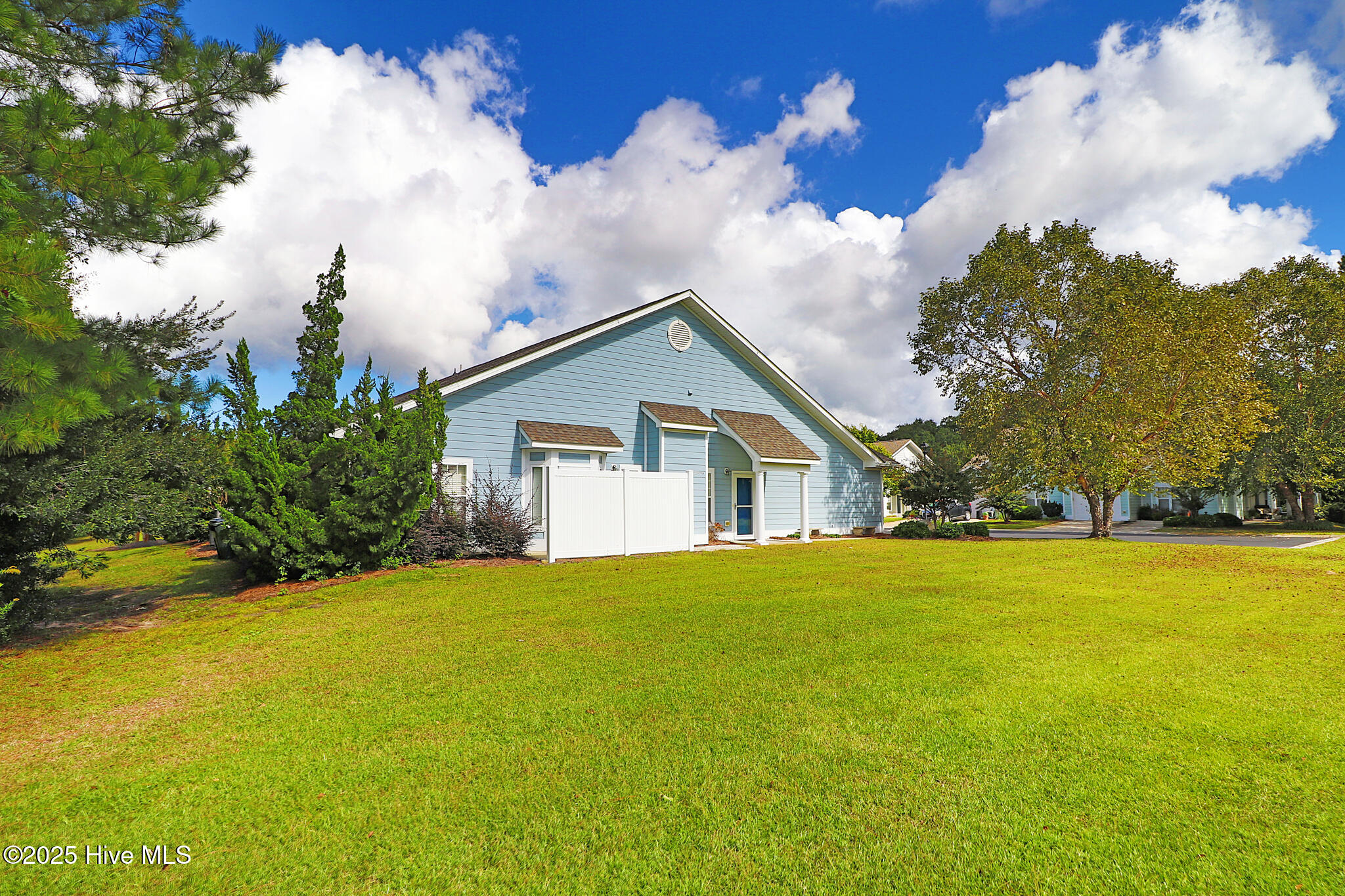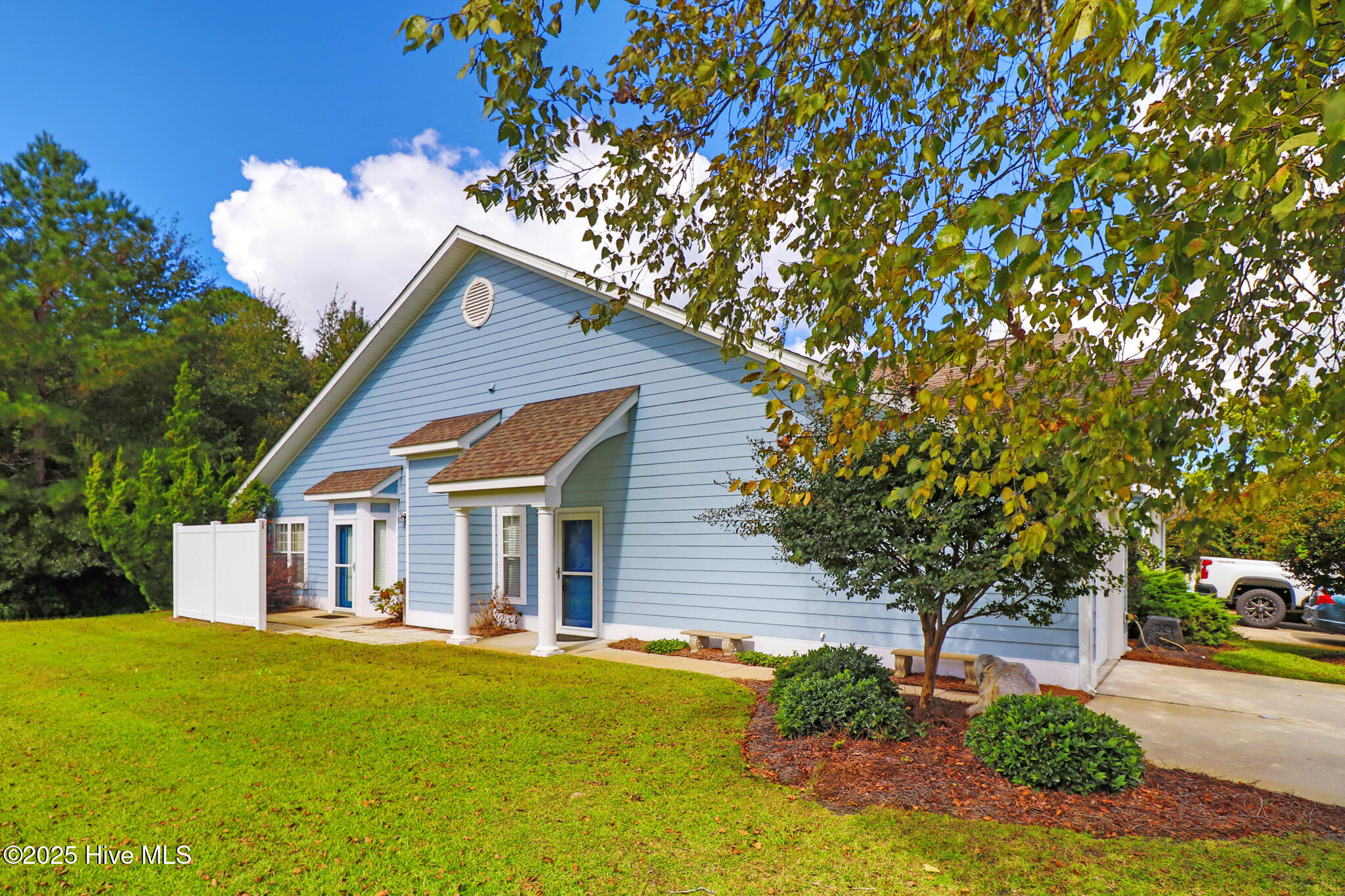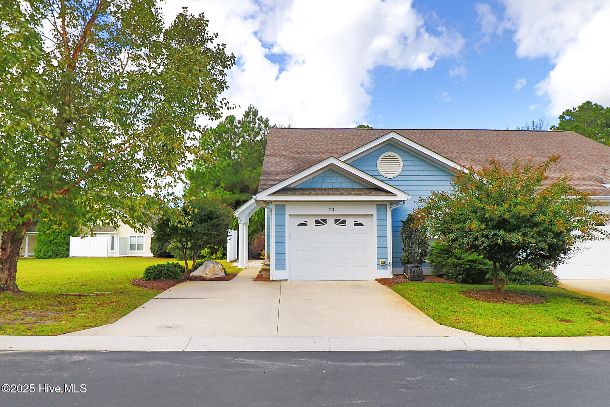 SELLERS OFFERING $3,000 PAINTING CREDIT. Welcome to 110 Treasure Cove, a bright and inviting end-unit townhome offering a low-maintenance coastal lifestyle in the desirable gated community, The Coves at Newport. The single-level split floor plan, designed for comfort and privacy, features an open-concept living and dining area with vaulted ceilings and an abundance of natural light. The kitchen offers ample counter space, pantry storage, and breakfast bar seating that opens seamlessly to the sunlit living room, perfect for entertaining and everyday living. Enjoy the coastal breeze, sip your morning coffee, or grill the perfect steak on the sunny private patio that extends the living space outdoors. The bright primary suite provides a relaxing retreat, comfortably accommodating a king-sized bed and offering an ensuite bathroom and double closets. Across the living area, two spacious bedrooms have generous closets and share a full bath. Avoid rainy days with the attached garage which offers additional storage. As a resident, you'll enjoy care-free living with access to community amenities including a pool, clubhouse, lawn care, exterior maintenance, pest control, master insurance, gated security, and over 80 cable channels. Ideally situated, this home offers easy access to shopping, dining, and daily conveniences, all just minutes away, and a short drive to local beaches. Whether you're looking for a primary home or a low-maintenance coastal retreat, this property checks all the boxes. Don't miss your chance to live in this great community!