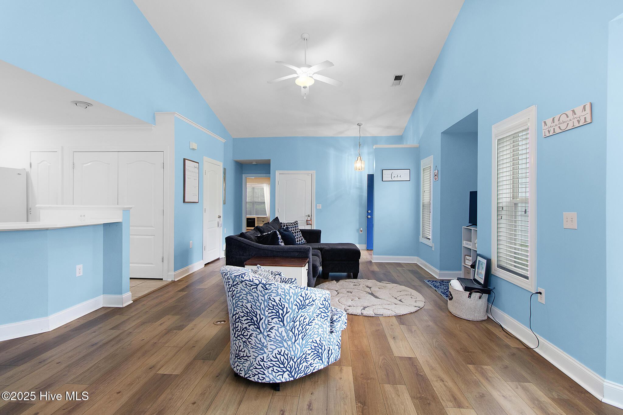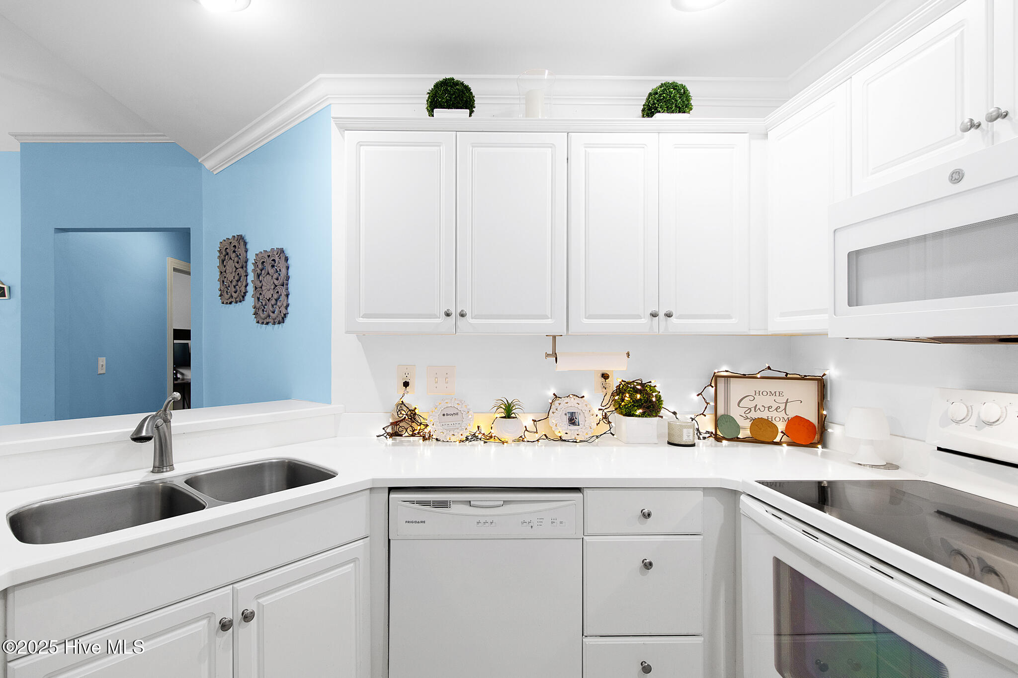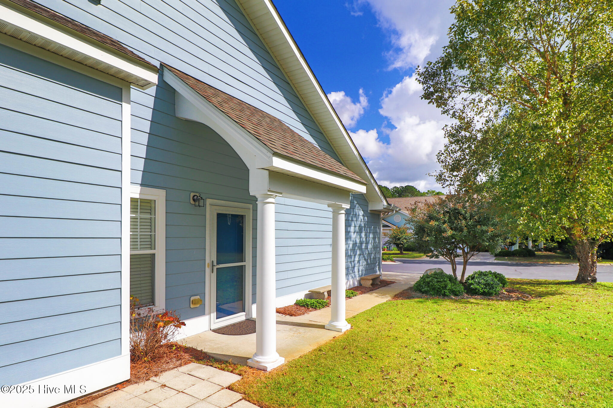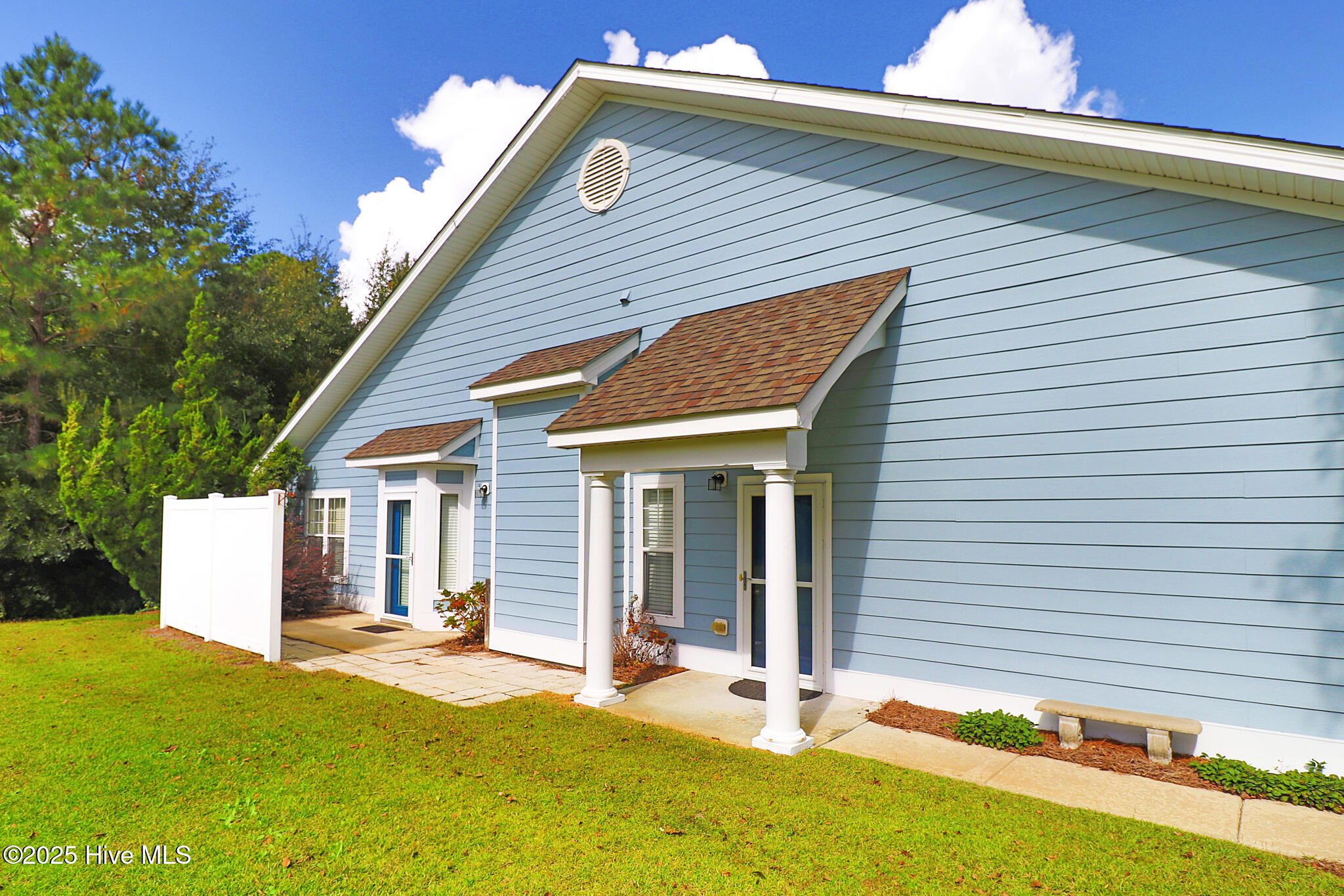 SELLERS OFFERING $3,000 PAINTING CREDIT. Welcome to 110 Treasure Cove, a bright and inviting end-unit townhome offering a low-maintenance coastal lifestyle in the desirable gated community, The Coves at Newport. The single-level split floor plan, designed for comfort and privacy, features an open-concept living and dining area with vaulted ceilings and an abundance of natural light. The kitchen offers ample counter space, pantry storage, and breakfast bar seating that opens seamlessly to the sunlit living room, perfect for entertaining and everyday living. Enjoy the coastal breeze, sip your morning coffee, or grill the perfect steak on the sunny private patio that extends the living space outdoors. The bright primary suite provides a relaxing retreat, comfortably accommodating a king-sized bed and offering an ensuite bathroom and double closets. Across the living area, two spacious bedrooms have generous closets and share a full bath. Avoid rainy days with the attached garage which offers additional storage. As a resident, you'll enjoy care-free living with access to community amenities including a pool, clubhouse, lawn care, exterior maintenance, pest control, master insurance, gated security, and over 80 cable channels. Ideally situated, this home offers easy access to shopping, dining, and daily conveniences, all just minutes away, and a short drive to local beaches. Whether you're looking for a primary home or a low-maintenance coastal retreat, this property checks all the boxes. Don't miss your chance to live in this great community!