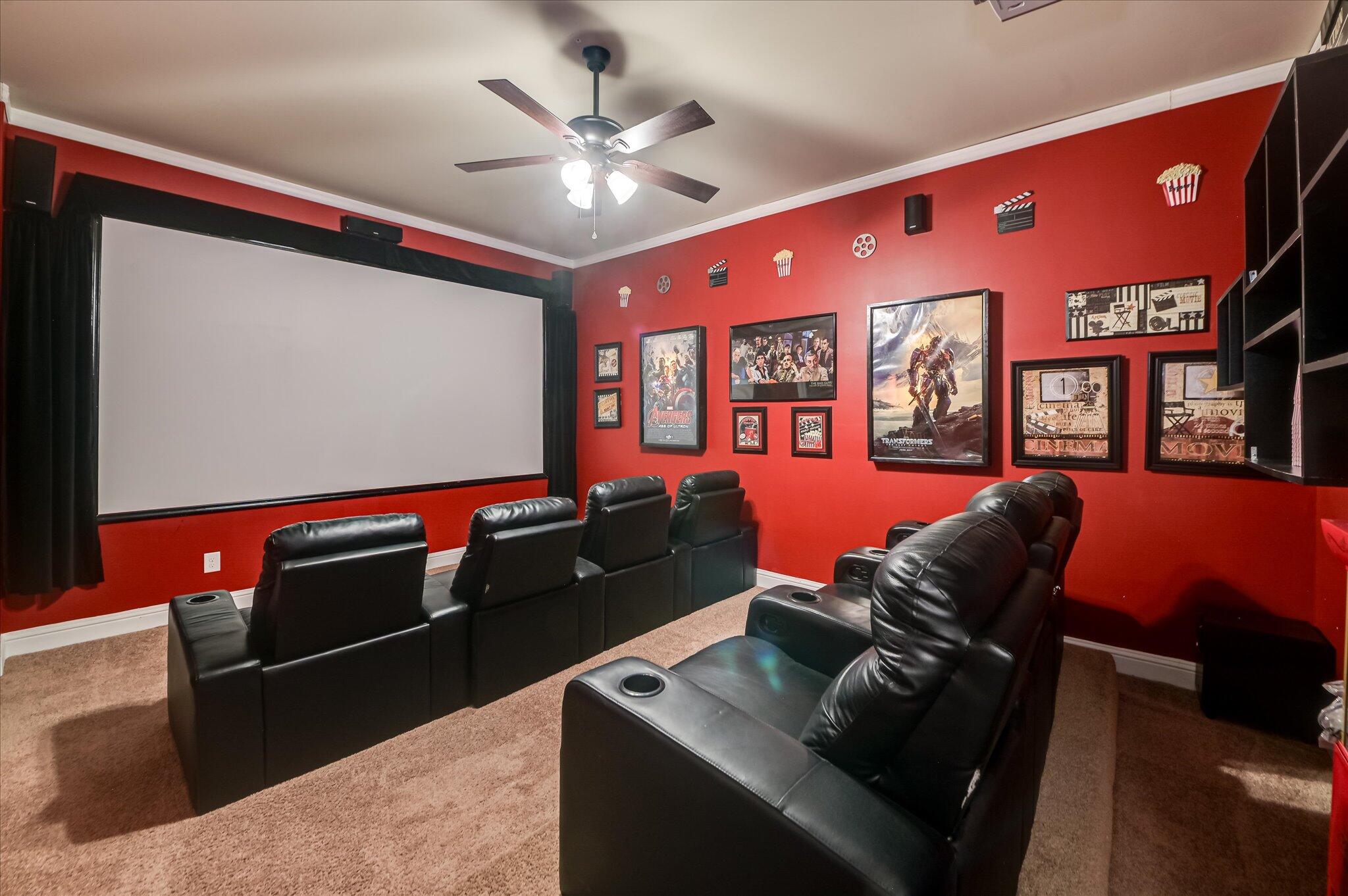 UP TO 15K IN SELLER'S CONCESSIONS WITH FULL PRICE OFFER!!! SCHEDULE A VIEWING TODAY!! EXQUISITE MODERN HOME WITH CUSTOM FINISHES AND AN ABUNDANCE OF ENTERTAINMENT AMENITIES Step into modern luxury and discover a meticulously designed, beautifully landscaped home featuring an expansive 6-bedroom, 4-full bathroom layout and a wealth of premium built-in features. This home offers the ultimate blend of comfort, style, and entertainment, perfect for any family. AN ENTERTAINER'S DREAM A grand open-air concept connects the living room and a large eat-in kitchen, ideal for seamless entertaining. The gourmet kitchen is equipped with a center island, ample pantry space, gleaming granite countertops, and tile flooring that extends throughout all bathrooms. A cozy coffered ceiling and a fireplace create a warm and inviting living room ambiance. Unwind in your private luxury home theater, complete with plush, reclining theater seating for the ultimate cinematic experience. Host guests effortlessly with a convenient main-floor guest bedroom and full bathroom. The private upstairs master suite Retreat to your spacious master suite, a private sanctuary on the second floor. Enjoy a large sitting room with an elegant tray ceiling and ceiling fan for ultimate relaxation. The master bedroom features a soaring vaulted ceiling, adding to its grand and open feel. Discover two custom-designed walk-in closets with upgraded custom wood cabinets and shelves, providing ample storage. The spa-like master bathroom includes a large garden tub, a beautifully tiled shower with a built-in seat, a dual vanity with granite countertops, and a separate, private toilet area. Luxurious living spaces and outdoor amenities The formal dining room, adorned with a coffered ceiling, is perfect for hosting memorable dinner parties. Convenience is key with the modern laundry room located on the second story. It features cheerful, sunny walls, a sparkling chandelier, and built-in cabinets for storage. Three large secondary bedrooms on the second floor offer vaulted ceilings, ceiling fans, and walk-in closets with California-style custom closet systems. A second full bathroom on the upper level offers a dual vanity and a separate area for the tub/shower and toilet, ensuring privacy. Enjoy serene outdoor living on the large screened-in deck accessible from the kitchen. A lower covered patio provides another relaxing outdoor space, complete with a screened-in jacuzzi area for a private soak. A versatile daylight finished basement Experience the expansive daylight finished basement with high ceilings and a separate outside entrance. Gather in the family room, featuring a cozy fireplace for those relaxing evenings in. The convenient kitchenette and wet bar with custom cabinetry and a mini-fridge is perfect for serving guests. A versatile additional room offers a dedicated space for work, hobbies, or recreation. The basement also includes a full bathroom and bedroom #6, providing a private retreat or in-law suite. A PEACEFUL AND PRIVATE BACKYARD OASIS Discover a scenic and peaceful, fully fenced backyard, offering a private sanctuary for relaxation and recreation. Mature trees line three sides of the lot, providing natural beauty and tranquility. A convenient graveled parking area accommodates up to three vehicles, providing easy access to the lower level of the home.