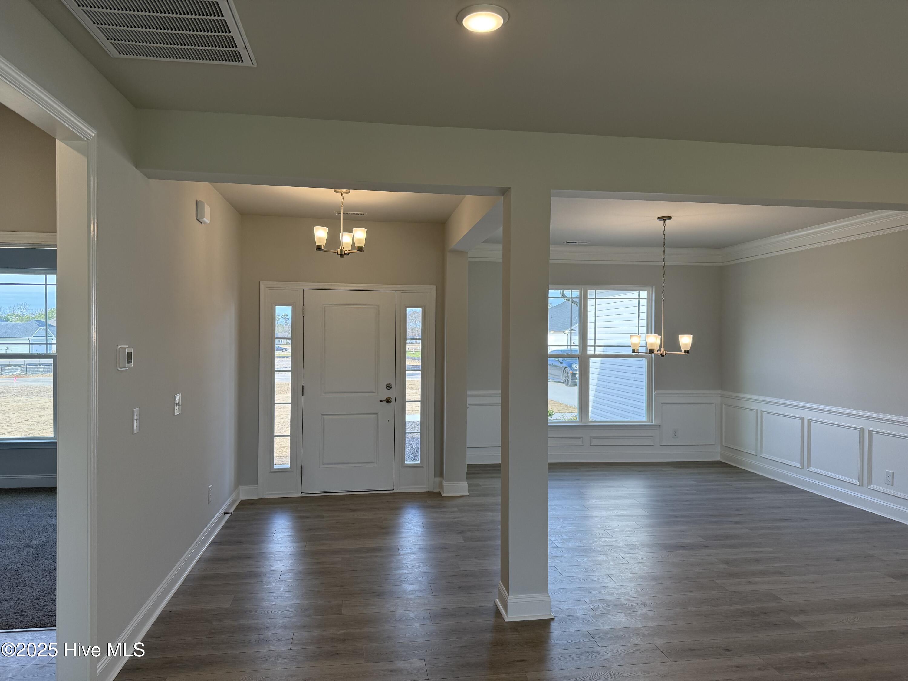 Welcome to the stunning Magnolia Estates! This beautiful 3-bedroom, 2-bath home offers 1,826 square feet of comfortable, open-concept living on a .48-acre homesite. Step inside through the grand entrance and be greeted by a formal dining room accented with crown molding, chair railings, and shadow boxes — the perfect space for entertaining. The spacious kitchen features a huge island, granite countertops, and stainless steel appliances, seamlessly flowing into the inviting family room with a cozy gas log fireplace. The owner's suite showcases elegant tray ceilings and a luxurious bathroom complete with double vanities with cultured marble countertops, a tile shower, and a relaxing garden tub. The grand walk-in closet offers plenty of storage space. Two additional bedrooms are thoughtfully positioned on the opposite side of the home for added privacy. A laundry room and two-car garage add convenience and functionality. Relax outdoors on the 16' x 14' covered concrete patio — perfect for enjoying peaceful evenings or weekend gatherings. Come experience Magnolia Estates living at its finest!