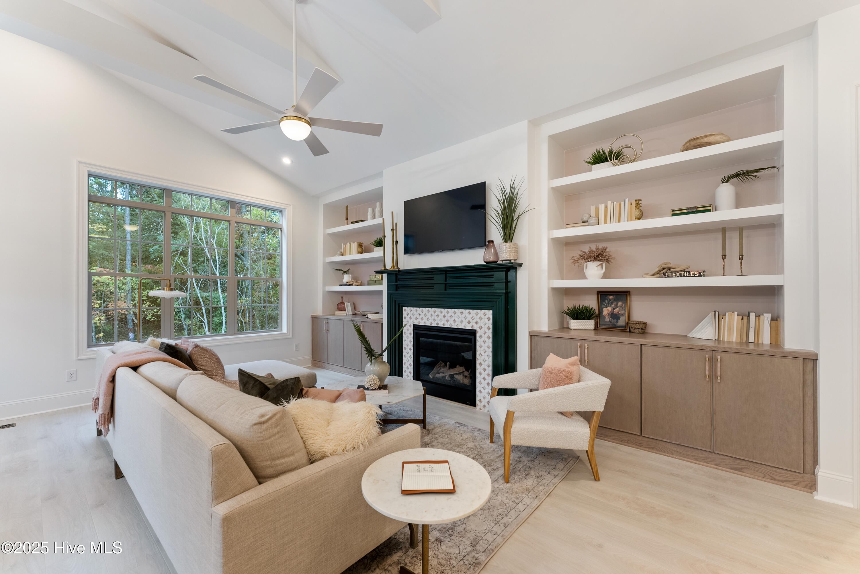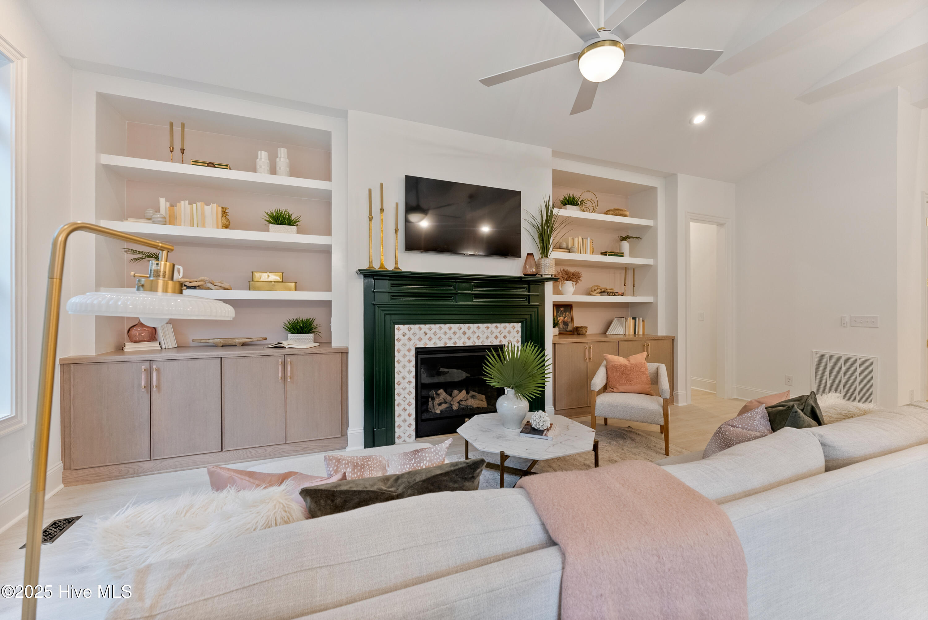 152 Coventry in Brices Creek Harbour features the Cooper floorplan with the Lowcountry elevation. In the home, 3 bedrooms, 2 baths, across 2,029 square feet of well-planned living space. The exterior highlights a brick foundation accent with Hardie® siding in a mix of lap and board-and-batten. Inside, the open concept includes RevWood flooring throughout the main living areas, a spacious family room with a gas fireplace, and a kitchen finished with quartz countertops, Electrolux Gallery appliances, and a walk-in pantry. The primary suite features a tiled bath and a walk-in closet, while two additional bedrooms offer flexibility for family, guests, or office use. A dedicated laundry room with tile flooring adds everyday convenience. Outdoor living is extended with both front and rear porches, perfect for gathering or relaxing. Additional features include crown molding in common areas, Kohler plumbing fixtures, a tankless gas water heater, and a gas furnace. Life in Brices Creek Harbour means enjoying a community surrounded by wooded beauty and easy access to the water. Whether launching a kayak, taking a walk along tree-lined streets, or spending time on the porch, this neighborhood offers a balance of nature and convenience. This home is currently under construction and is being offered as a pre-sale — giving buyers the opportunity to personalize selections while it's being built.
