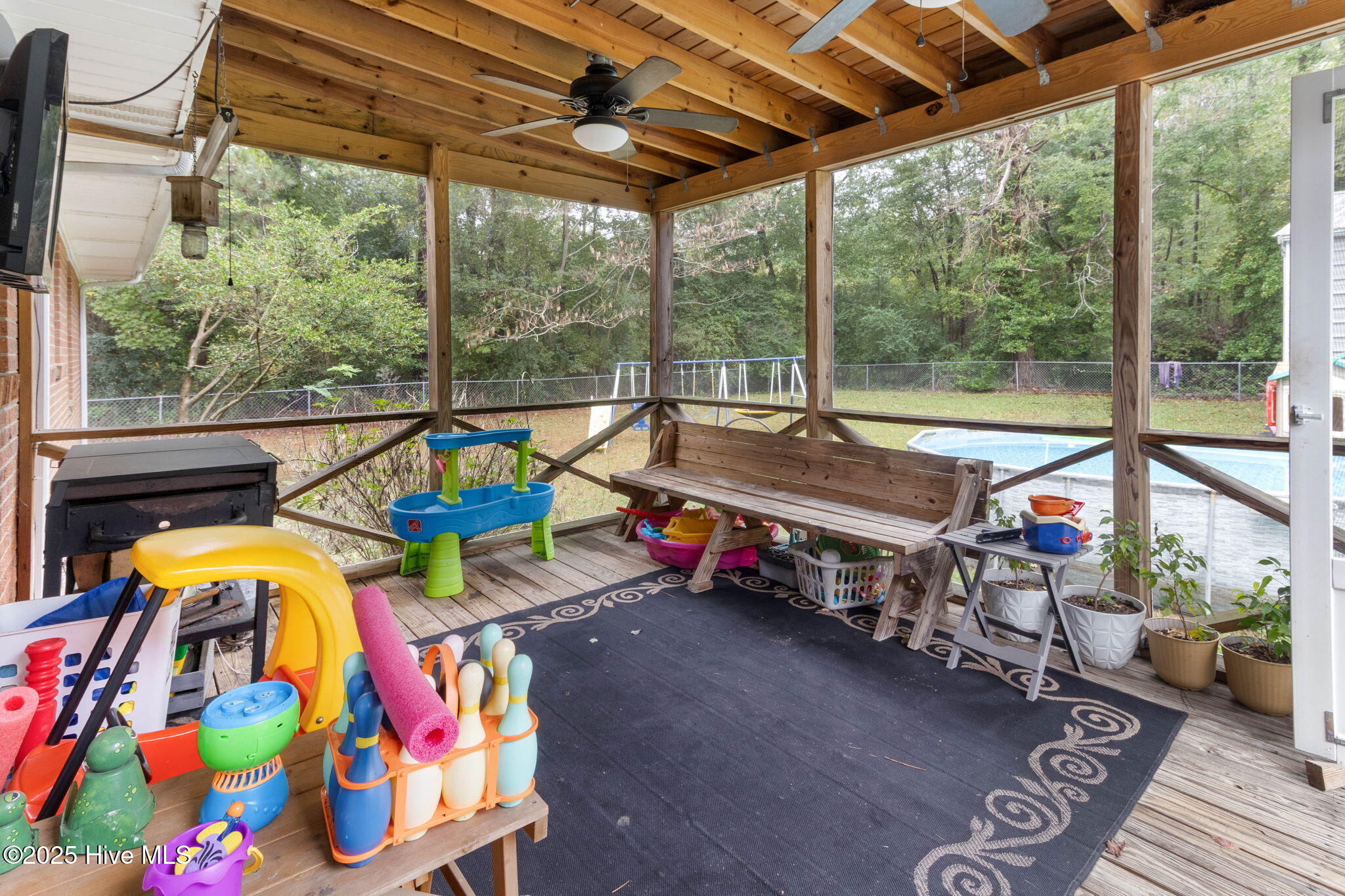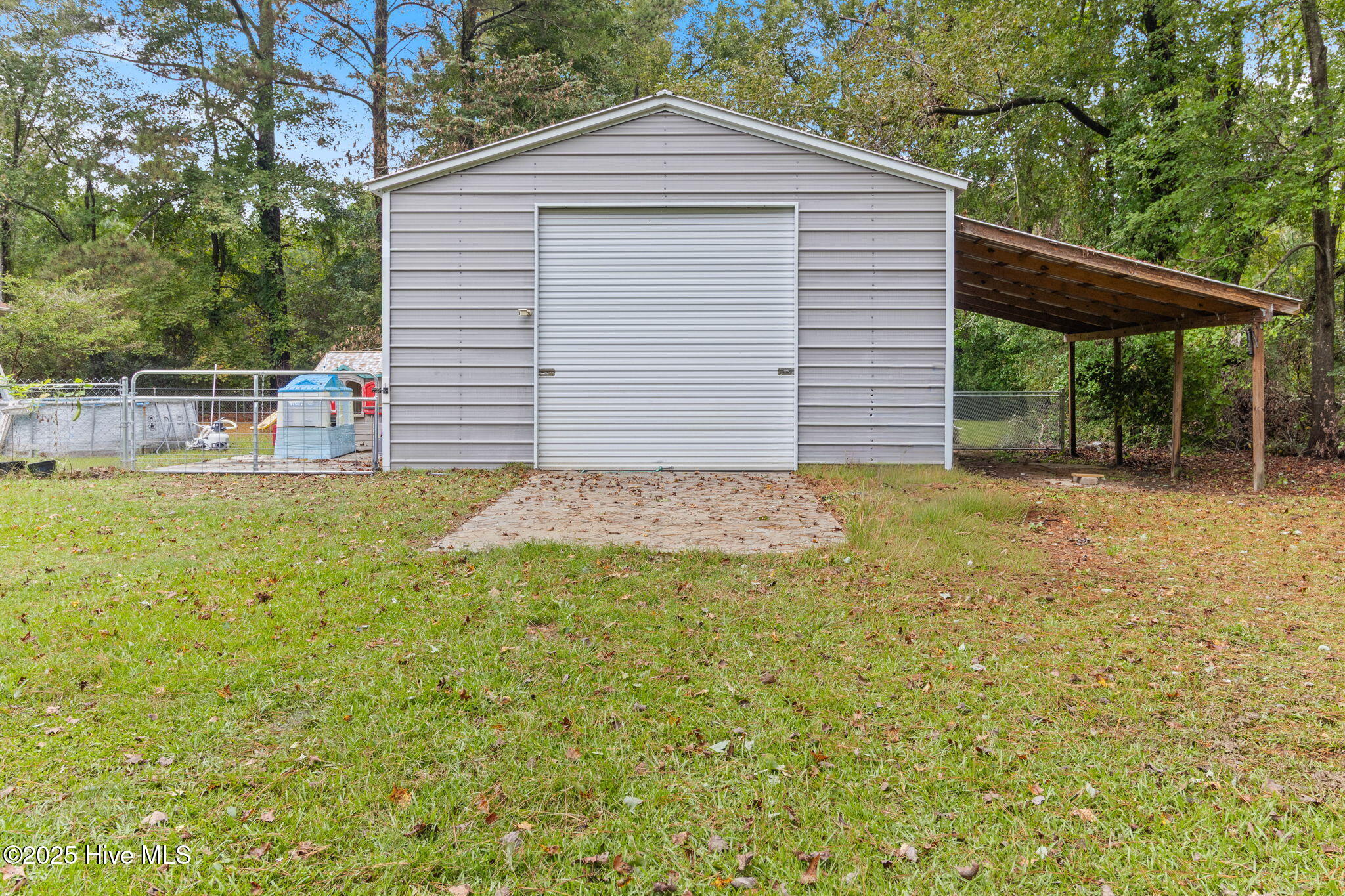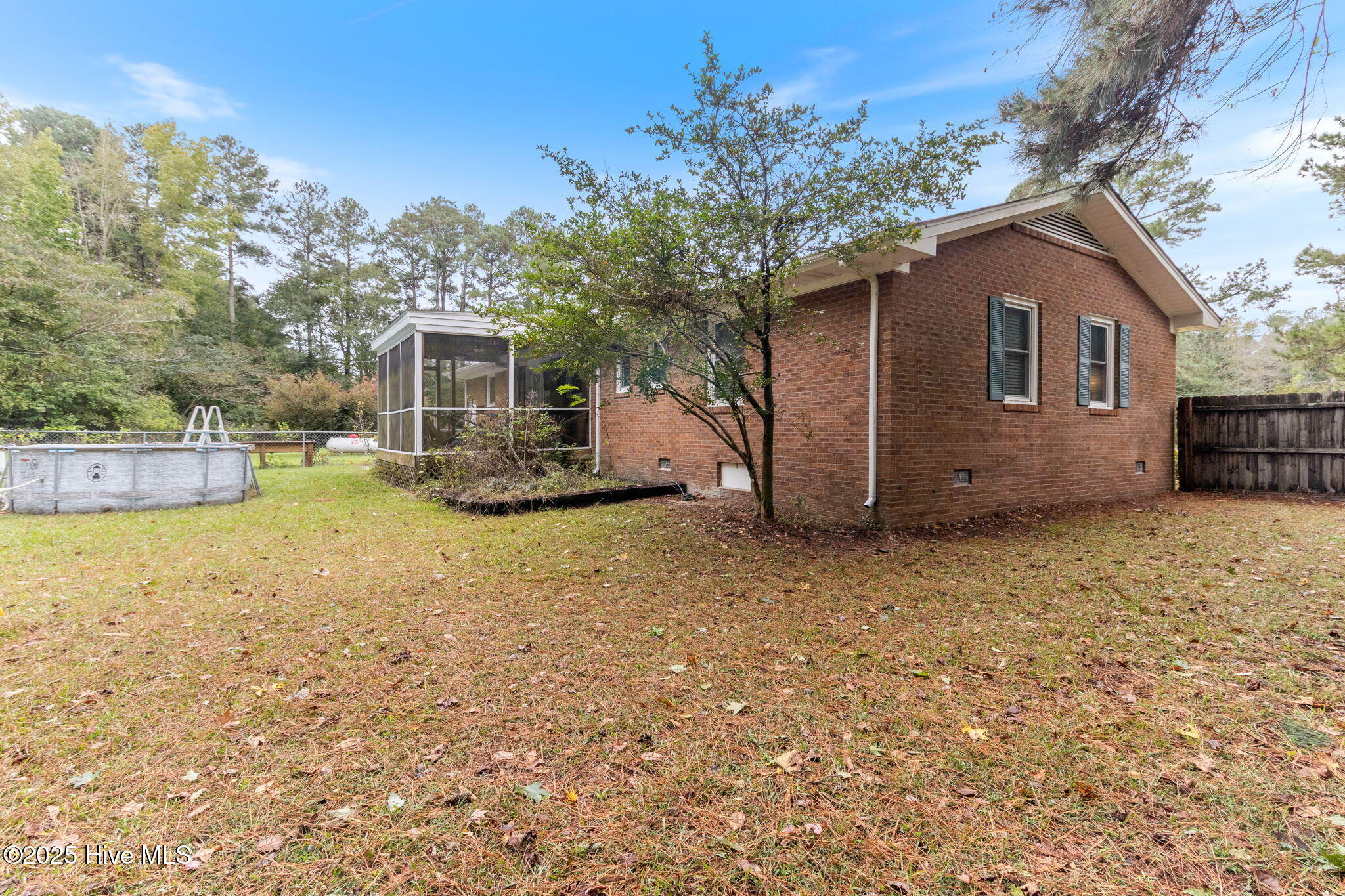 Welcome home to this lovely 3 bedroom, 2 full bathroom residence perfectly situated within the city limits on approximately one acre of land. You'll have peace of mind knowing the home features a newly installed roof and recently painted rooms throughout, offering a fresh, move-in-ready appeal. As you enter, you are greeted by a welcoming front living room. The home offers fantastic separate living spaces, including a large, cozy step-down den, ideal for entertaining or a relaxed movie night. A major convenience is the dedicated laundry room which includes a utility sink. Enjoy the outdoors year-round from the comfortable screened-in porch. The fully fenced-in backyard is your private oasis, featuring a refreshing above-ground pool for summer fun. A major bonus is the substantial 24' x 25' metal building! This workshop includes electricity and a convenient lean-to for additional covered storage, offering endless possibilities for a workshop, hobbies, or extra vehicle/equipment storage. With a great layout, peace-of-mind upgrades, and fantastic outdoor amenities on a generous lot, this home offers convenience, comfort, and spaceāall within the city!