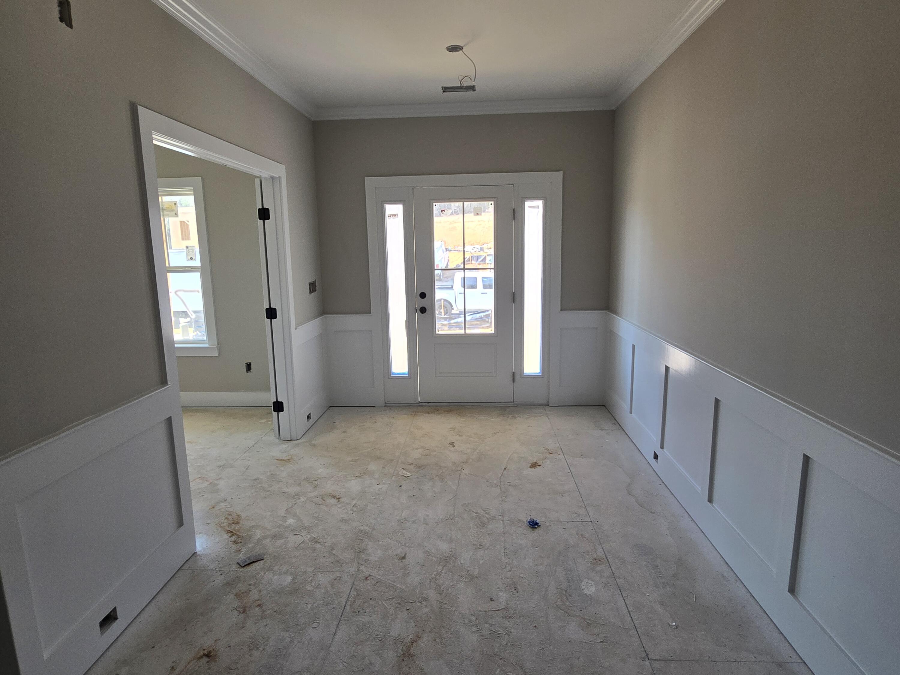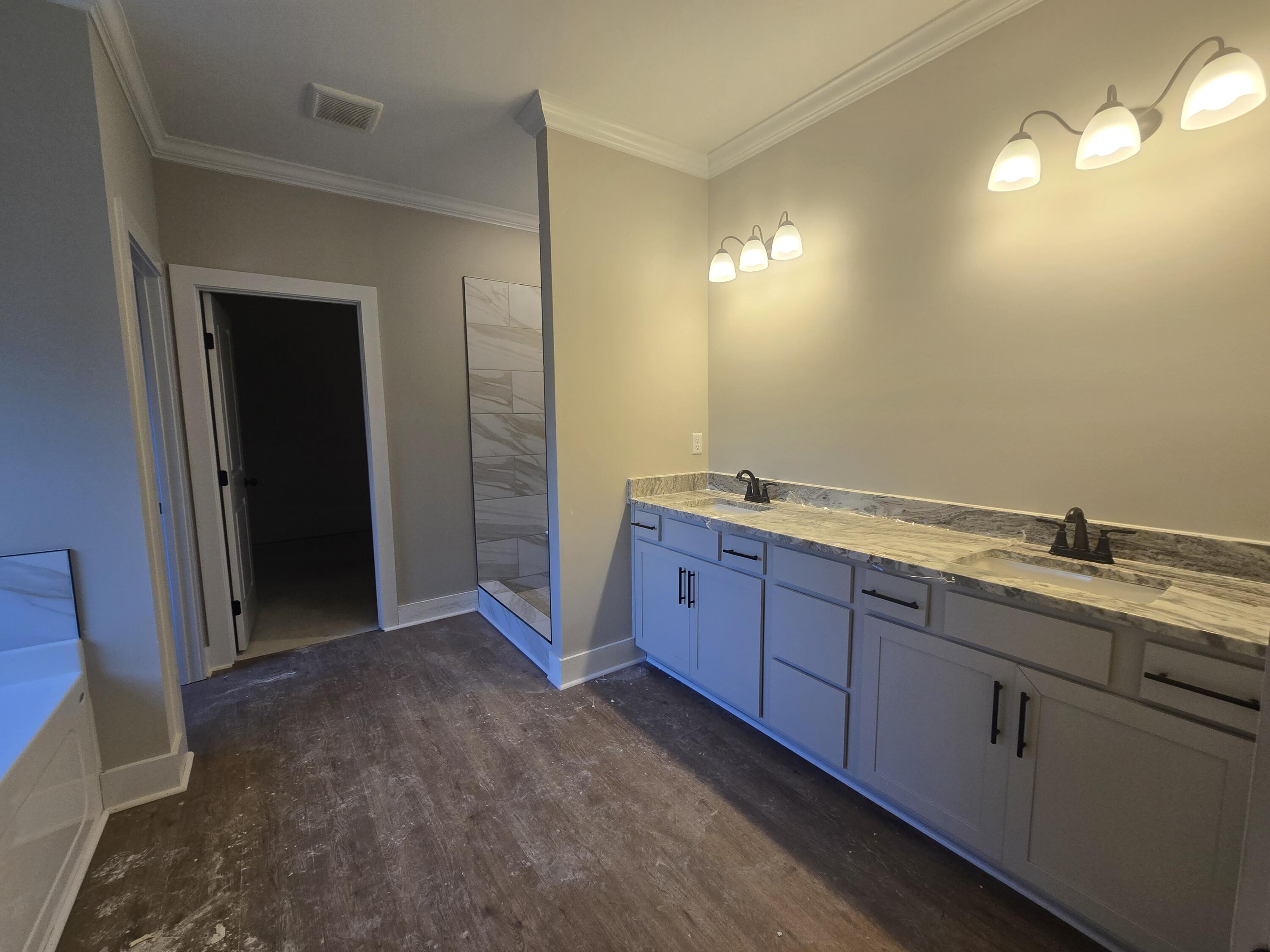Sawyer Plan with finished basement built by Winchester Home Builders features hardi exterior, stone water table, 3 Car Garage, covered front and rear porches, accent metal shed roof over window. The open concept split bedroom floor plan offers 4146 sq. ft. & includes 5 BR, Office, Game room, 3 full and 2 half baths. The main floor entry Foyer leads to the G/R with gas log fireplace and stone surround that is open to the Gourmet II kitchen w/island, cooktop, double ovens, soft close cabinets, pull out trash, pantry with barn door, quartz counters, air switch, soap dispenser, SS appliances, & tile backsplash. Owner's suite with trey ceiling, walk-in closet, his and her sinks, water closet, tile floor, soaking tub and Designer Tile shower. Two additional bedrooms with shared bath, Office, laundry & Powder room complete the main level. Downstairs, you will enter into the Recreation room with Kitchenette, flex area, two additional bedrooms that share full bath and an additional powder room. LVP flooring throughout the main living areas and basement Rec room. Additional options include hardwood stairs, granite counters in all full baths, black fixtures (incl plumbing, light, door hardware and accessories), cabinets in laundry room, 3/4 lite fiberglass front door, Exterior side door off of garage, Radiant barrier roof decking, tankless water heater, home has been prewired for whole house generator but generator not included and Quality Builders Home Warranty.