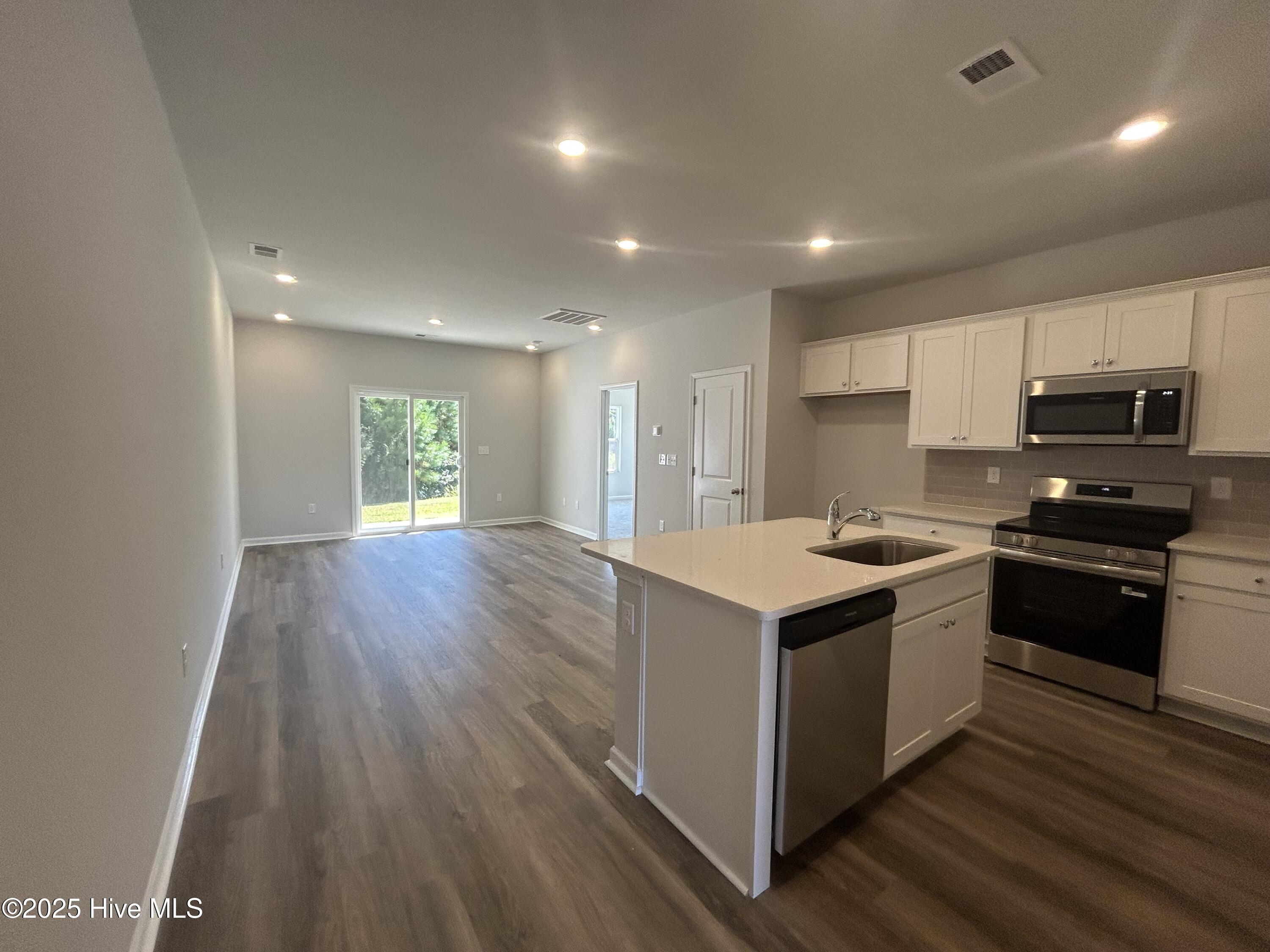 Welcome home to this stunning Glenville townhome, featuring a garage and a spacious 2-car driveway. Thoughtfully designed for modern living, this home offers a bright, open main level with a stylish kitchen that flows seamlessly into the living and dining areas—perfect for both relaxing and entertaining. The first-floor primary suite provides a peaceful retreat with a large walk-in closet, dual vanities, and a walk-in shower. Upstairs, you'll find two additional bedrooms, a full bath, and a versatile loft space ideal for a home office or cozy lounge. Enjoy outdoor living with a covered front porch and a private covered patio overlooking the backyard. With its inviting layout, elegant finishes, and convenient location, this home perfectly blends comfort and style. Move-in Ready luxury townhome featuring granite kitchen countertops, LVP flooring, LED lighting, main floor primary suite, and so much more. Care-free lifestyle with all exterior maintenance and insurance covered by HOA fee. Community allows short and long term rentals including day rentals.