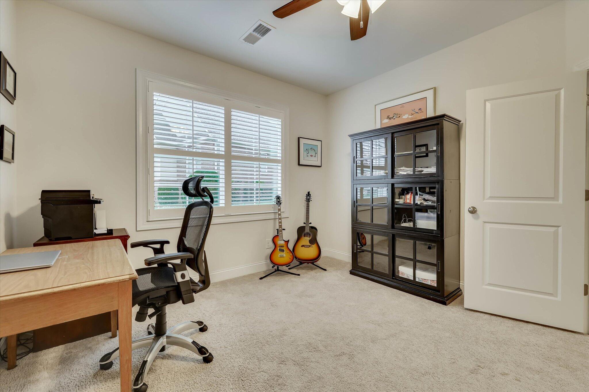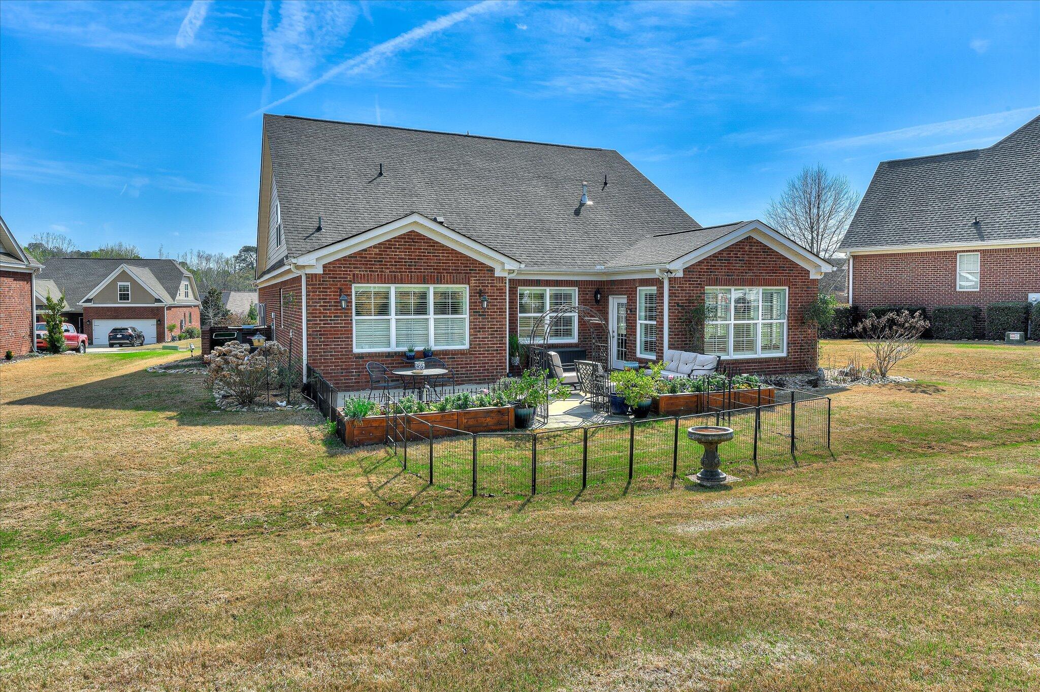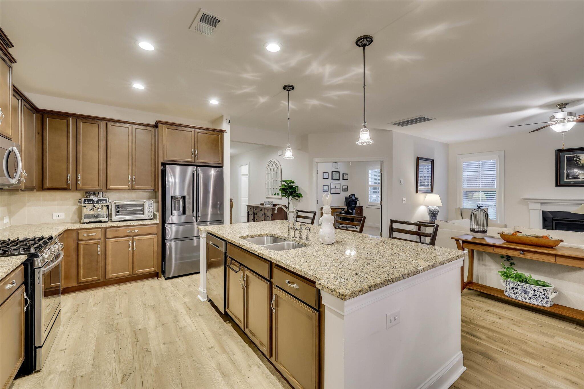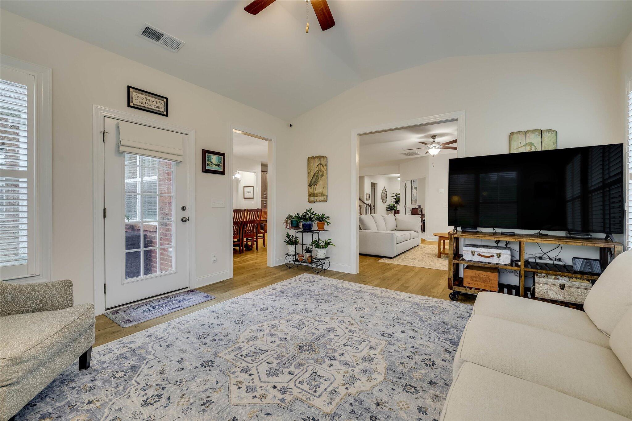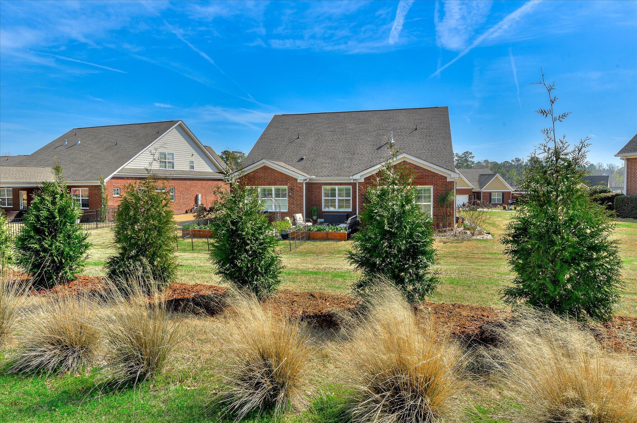 Step into timeless elegance and refined comfort in this beautifully designed, move-in-ready home located in the highly sought-after community of Mount Vintage Plantation, where lifestyle and luxury come together. This thoughtfully crafted home offers an open-concept floor plan perfect for both everyday living and effortless entertaining. At the heart of the home is the chef's kitchen, featuring a gas range, custom cabinetry with pull-out shelving, and generous counter space that flows seamlessly into the spacious great room and dining area. The inviting living room is centered around a cozy gas fireplace and opens into a sun-drenched sunroom, filling the space with warmth and natural light. Step outside to a professionally landscaped patio designed by a master gardener, creating the perfect setting for peaceful mornings or elegant evenings outdoors. The homeowner also recently invested in mature privacy trees, creating a beautiful natural backdrop and enhanced seclusion for the next owner to enjoy. The main-level owner's suite serves as a relaxing retreat with dual vanities, a soaking tub, separate walk-in shower, and spacious walk-in closet. A second main-level bedroom with a nearby full bath offers comfort for guests, while a large flex room provides endless possibilities as a home office, library, or additional sitting area. Upstairs, you'll find a generously sized third bedroom and an oversized 22x21 walk-in attic, providing exceptional storage or future expansion potential. Living in Mount Vintage means enjoying an unmatched resort-style lifestyle, featuring a 27-hole championship golf course, six Har-Tru clay tennis courts, bocce ball courts, a Junior Olympic-size swimming pool, an elegant clubhouse, and The Grille restaurant. Residents also enjoy an active social calendar with clubs, events, and activities year-round. Additional highlights include custom plantation shutters, a tankless water heater, and a two-car garage, making this home the perfect blend of luxury, comfort, privacy, and community living.