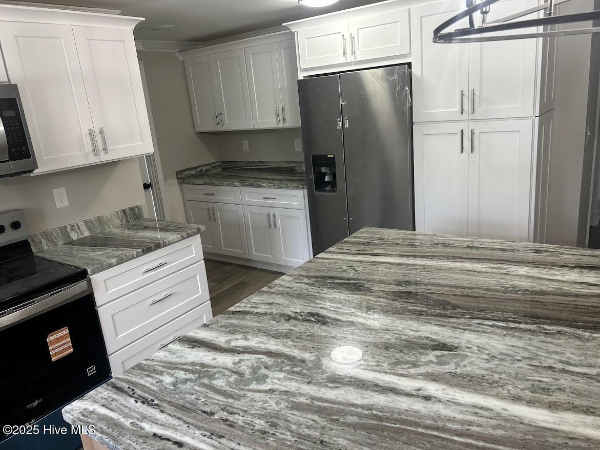 OVER 2060 square feet with new granite counter tops, new kitchen cabinets and new appliances in the huge kitchen. The kitchen also has built in book cases with an electric fireplace with speakers. A large deck off the kitchen for enjoying the nice NC weather. All new LVP flooring throughout for easy cleaning, great for the kids and dogs. There is a fenced back yard. 3.5 baths for the busy family with new toilets and new bathroom vanities. New lights to finish off this nicely remodeled home. No HOA. A new water heater in the garage.