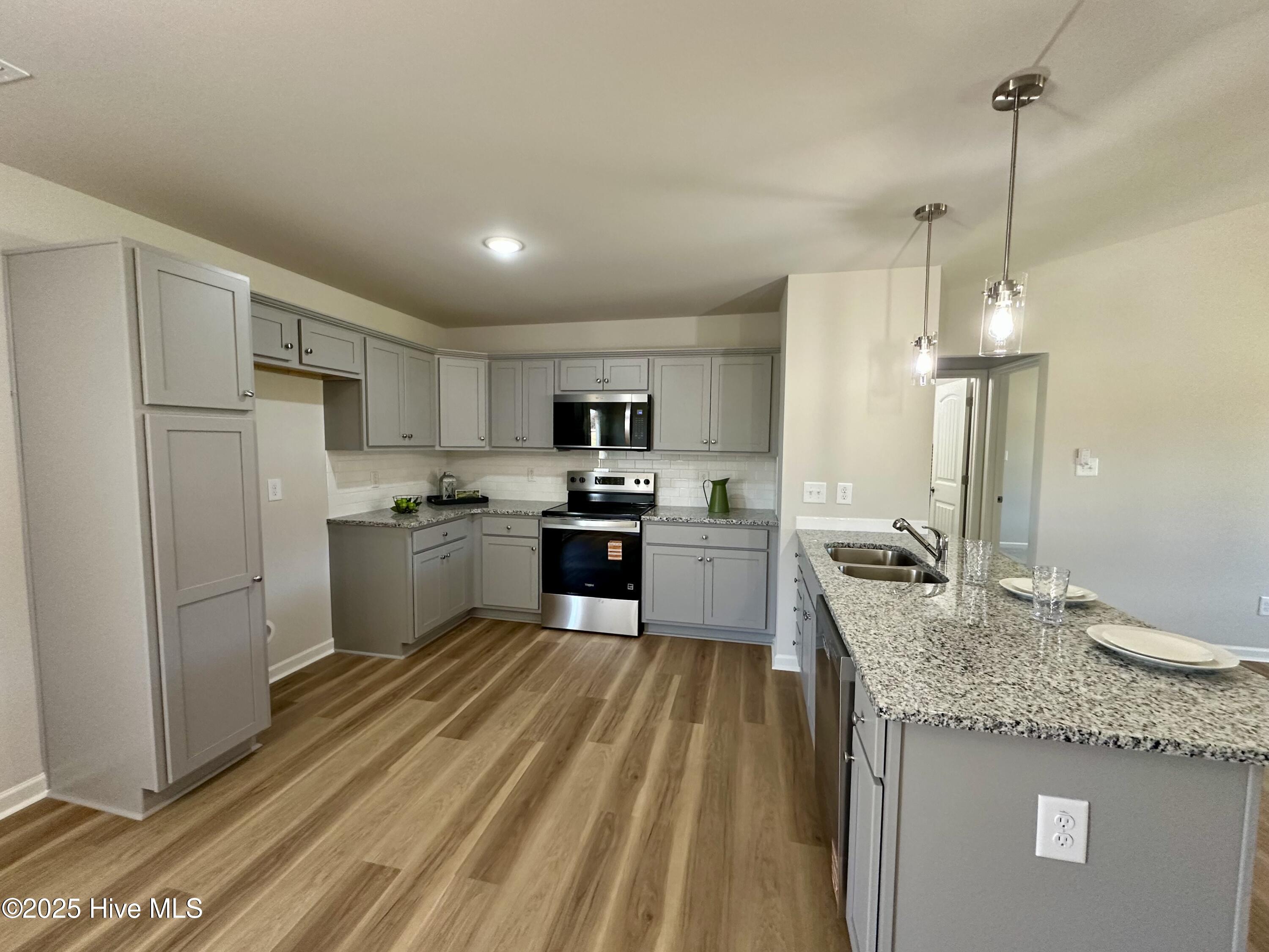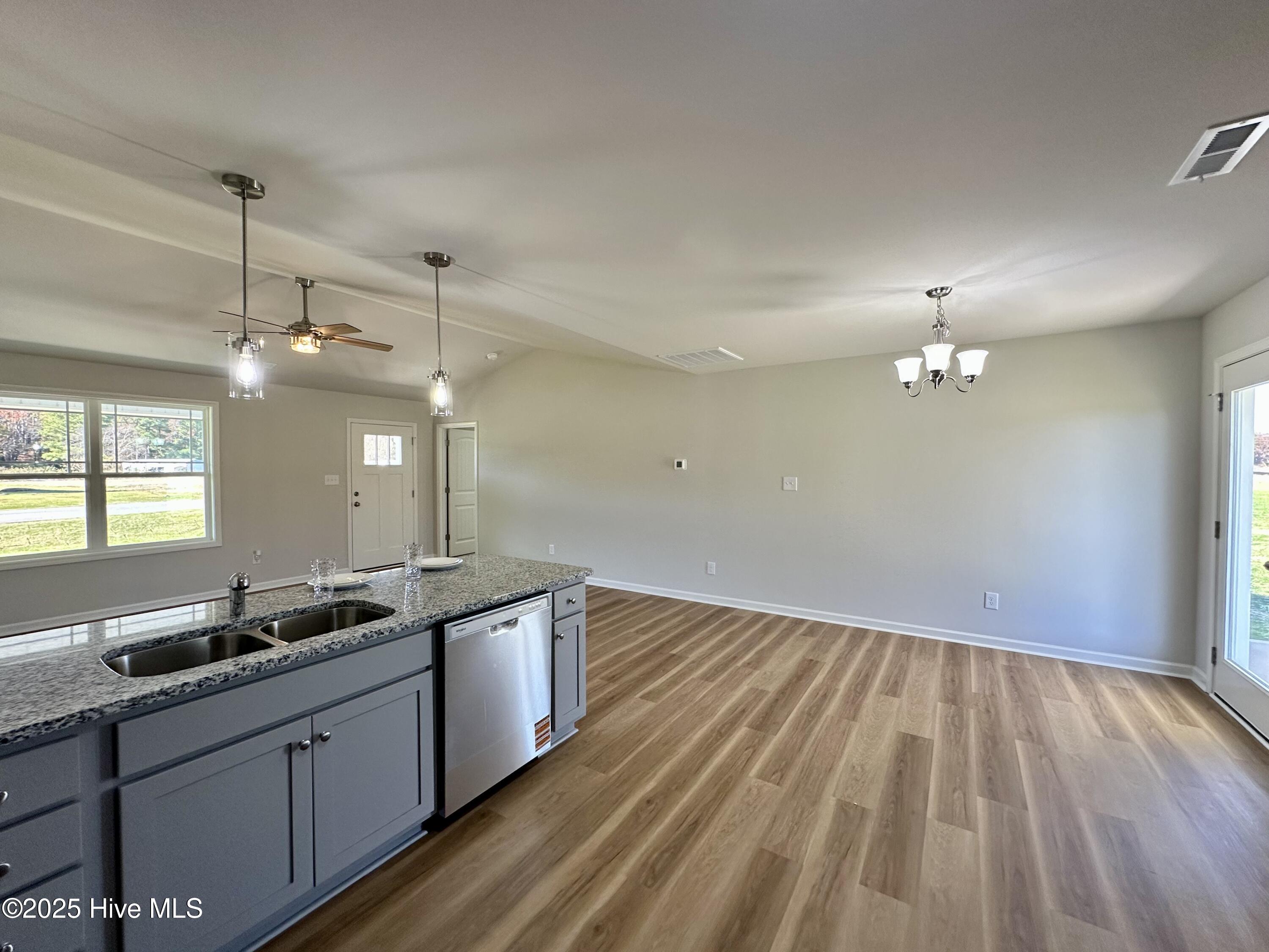 The Brandon-Welcome to this charming new home featuring a sprawling front porch that extends the full width of the home and is perfect for rocking chairs, porch swings, and evenings outdoors. Step inside to find a bright, open layout highlighted by a vaulted ceiling and luxurious LVP flooring. The family room showcases a beautifully accented fireplace with elegant trim. ~The dining area is conveniently located just off the kitchen and provides access to the covered back patio. The kitchen impresses with granite countertops, tile backsplash, an eat-at bar, built-in pantry, and ample cabinetry. Privately situated on one side of the home, the primary suite offers a spacious walk-in closet and a stylish bath complete with double vanity, granite countertops, and LVP flooring. Two additional bedrooms, each with walk-in closets, share a full hall bath with granite countertops and LVP flooring. Step outside to relax under your covered back patio and enjoy views of your expansive backyard for the perfect spot to unwind or entertain. Welcome home