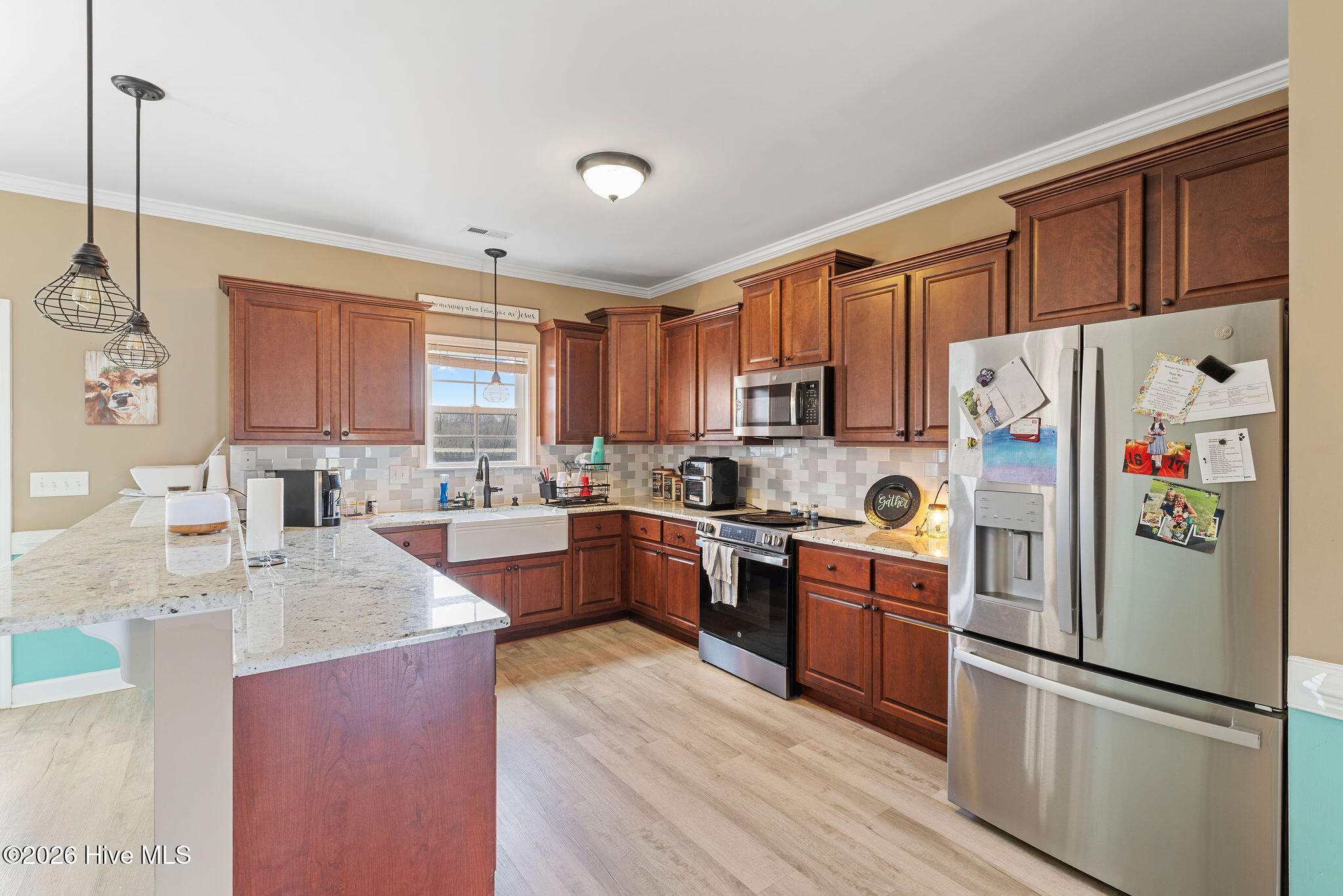 This spacious home offers over 2,400 sq ft of living space, featuring brand new LVP flooring and carpet throughout. The updated kitchen includes a farmhouse sink, new appliances, granite countertops, new cabinets, and a stylish backsplash. Both bathrooms showcases walk-in showers. Additional spaces include a large Bonus Room and a versatile Flex Room ideal for office, playroom, or guest use. Exterior features include a privacy fence and ample yard space. The modern upgrades make this home a perfect blend of function and luxury!