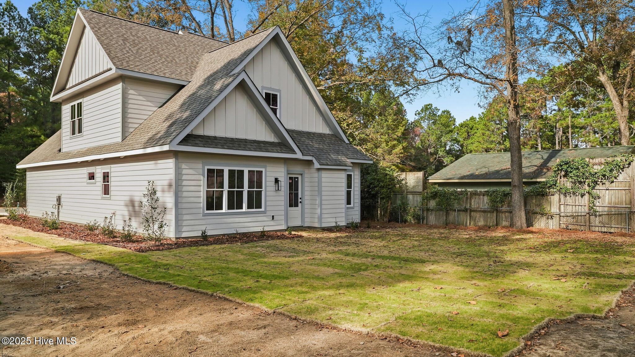 Welcome to 1405 N May Street, a brand-new home by local builder Pineland Homes & Remodeling, thoughtfully designed to offer both comfort and an exceptional lifestyle. Located just minutes from downtown Southern Pines, this home features a wonderful floor plan with beautiful finishes and unexpected quality at this price point. A solid wood arched front door welcomes you into a dramatic foyer with soaring ceilings that immediately make a statement. The main living area centers around a stunning kitchen with warm gray cabinetry, quartz countertops, a custom range hood, and a gas range—creating an inviting space for cooking and gathering. The main-floor primary suite provides a peaceful retreat with a spacious walk-in closet and a luxurious bath featuring a double vanity and a walk-in shower. Upstairs, a bright and sunny loft offers flexibility for a reading nook, office area, or cozy lounge space. Two additional bedrooms share a well-appointed hall bath, and a convenient walk-in storage room adds valuable functionality. With a two-car garage, thoughtful design, and refined selections throughout, this home perfectly captures the blend of craftsmanship, style, and livability that Pineland Homes is known for. 1405 N May Street is truly a special place to call home. ***Home is much farther along thatn photos show*** Completion for end of Dec is possible. Preferred lender: Meredith Bolton with Main Street Home Loans.