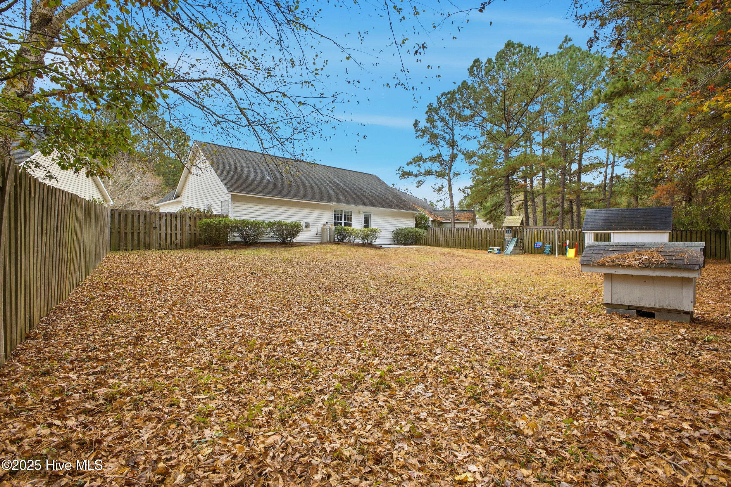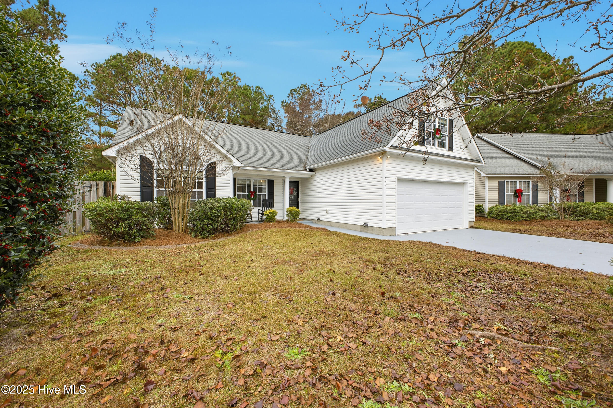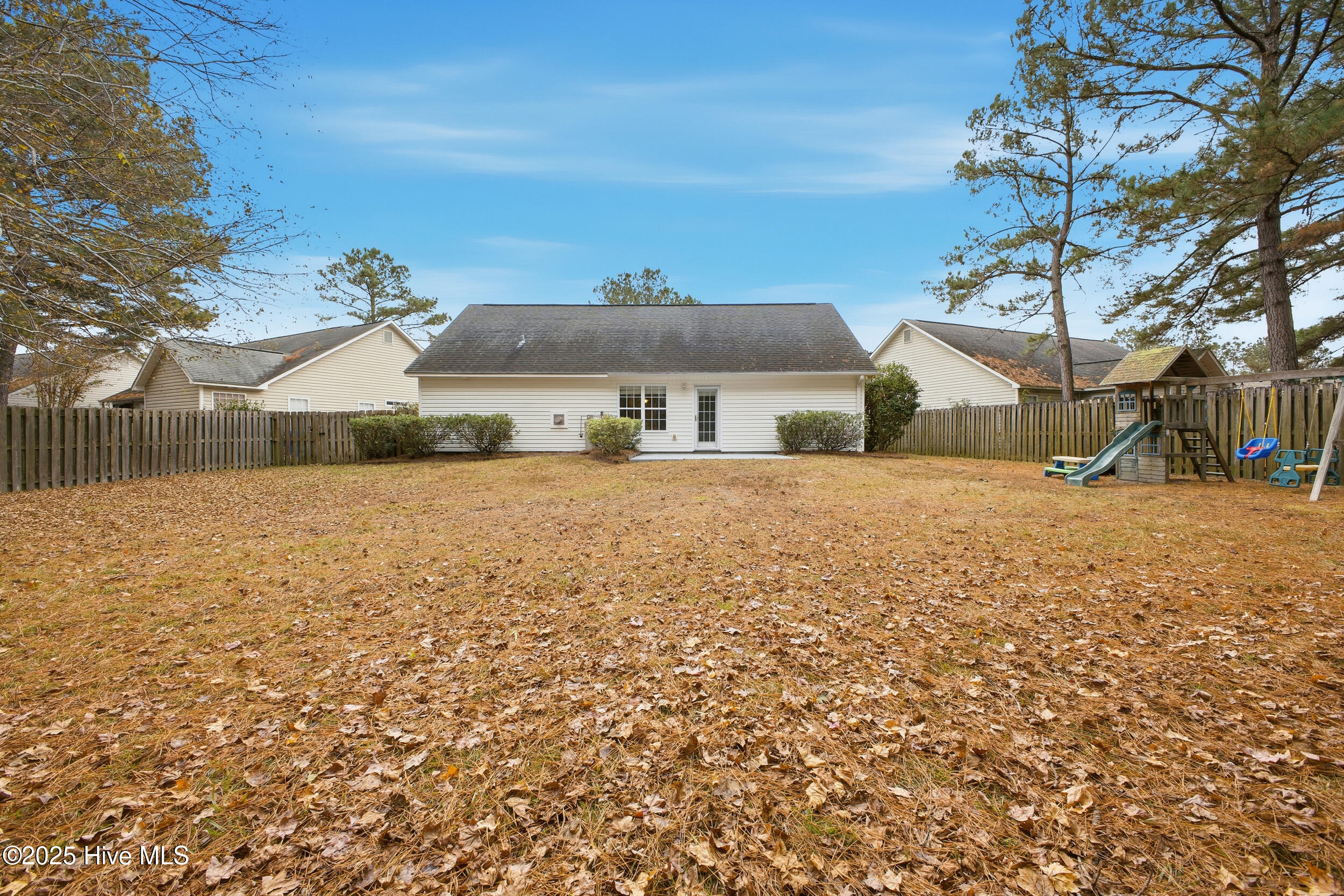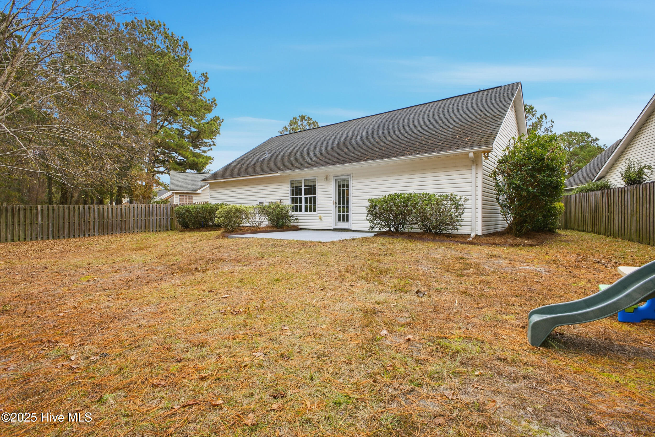 Discover this inviting 4-bedroom, 2-bath home, set on a generous .24-acre fenced lot in one of Leland's most loved neighborhoods. Just a short stroll from the community pool, this home offers an easy, comfortable lifestyle in a truly charming setting. Step inside to an open living, dining, and kitchen layout filled with natural light and easy-care LVT flooring. The kitchen features a new refrigerator, microwave and dishwasher while the home's thoughtful layout places two guest bedrooms and a full bath on one side for privacy, with the primary suite tucked quietly away on the other. The primary retreat includes dual closets, a soaking tub, walk-in shower, and double vanities. A dedicated laundry room with cabinet storage keeps everything tidy, and the upstairs 4th bedroom could also make a great office, or bonus play space. Outside, enjoy a fully fenced backyard, gutter leaf guards, established landscaping, and plenty of room to garden or play. The adorable wired playhouse—with a chandelier and its own mini-split—adds a unique touch families and guests will adore. Wedgewood at Lanvale is known for its warm community spirit, holiday events, neighborhood strolls, sidewalks, ponds, yard sales, and fun gatherings around the community pool and playground. All of this is just minutes from shopping and dining, and an easy drive to Downtown Wilmington or the BEACH.