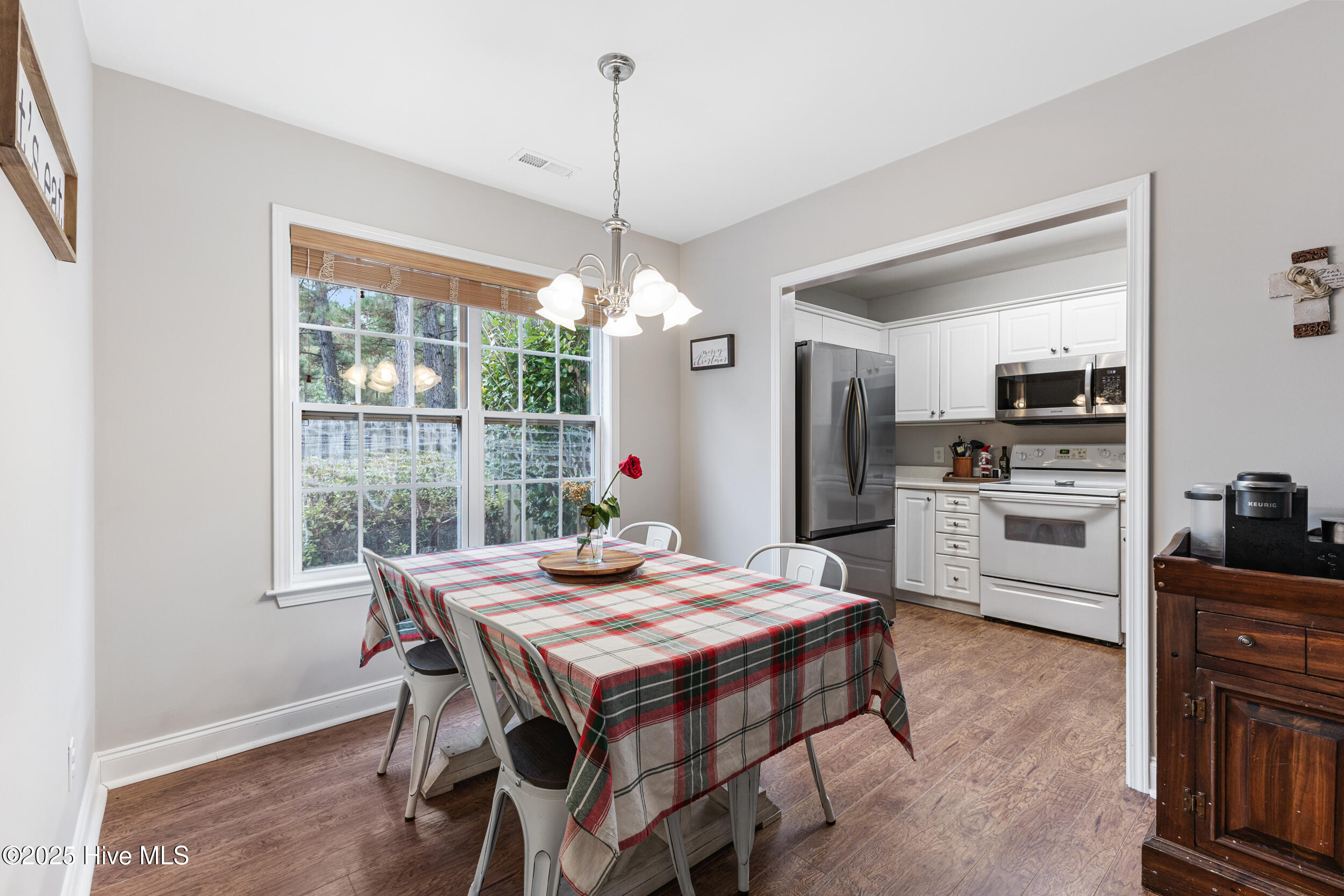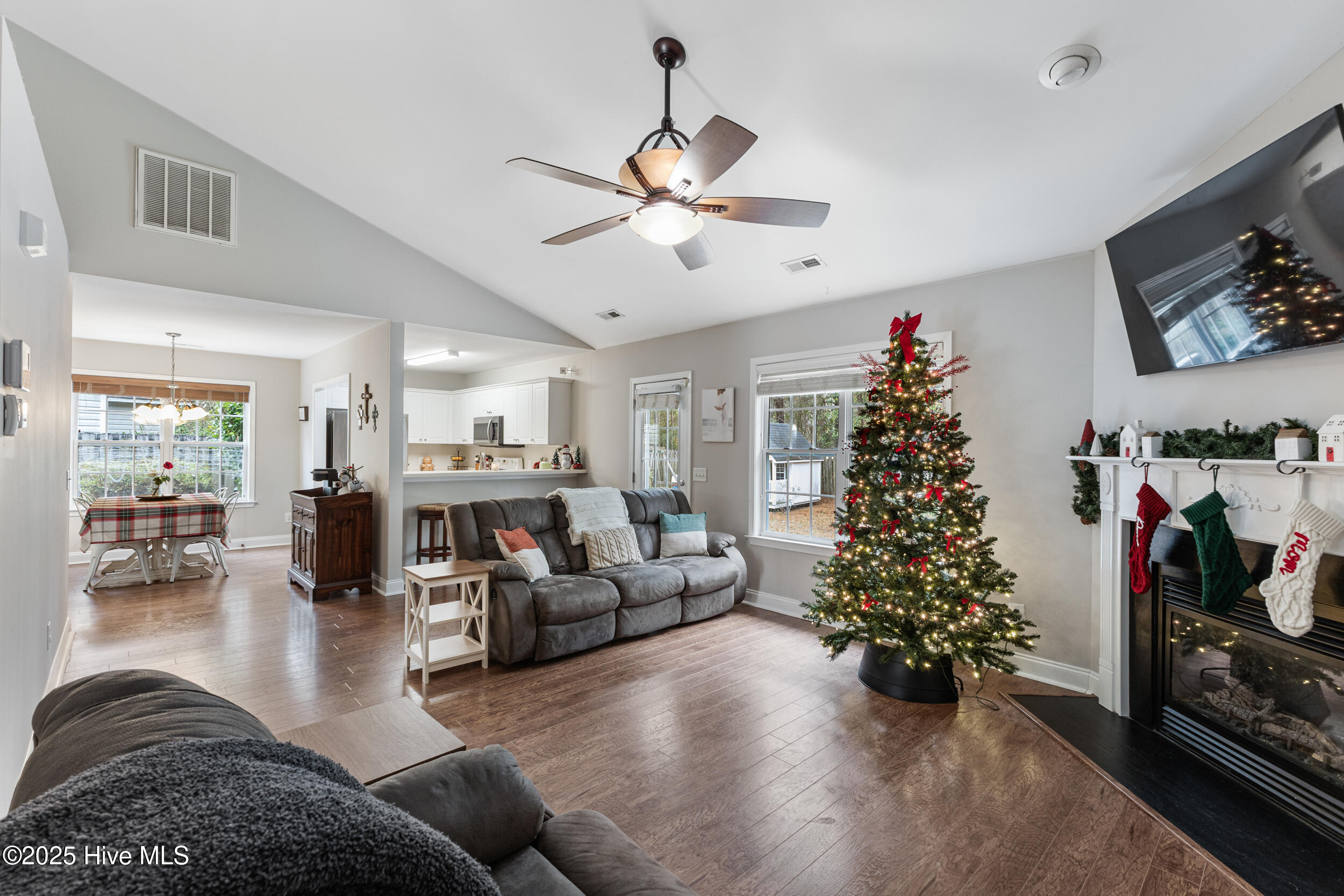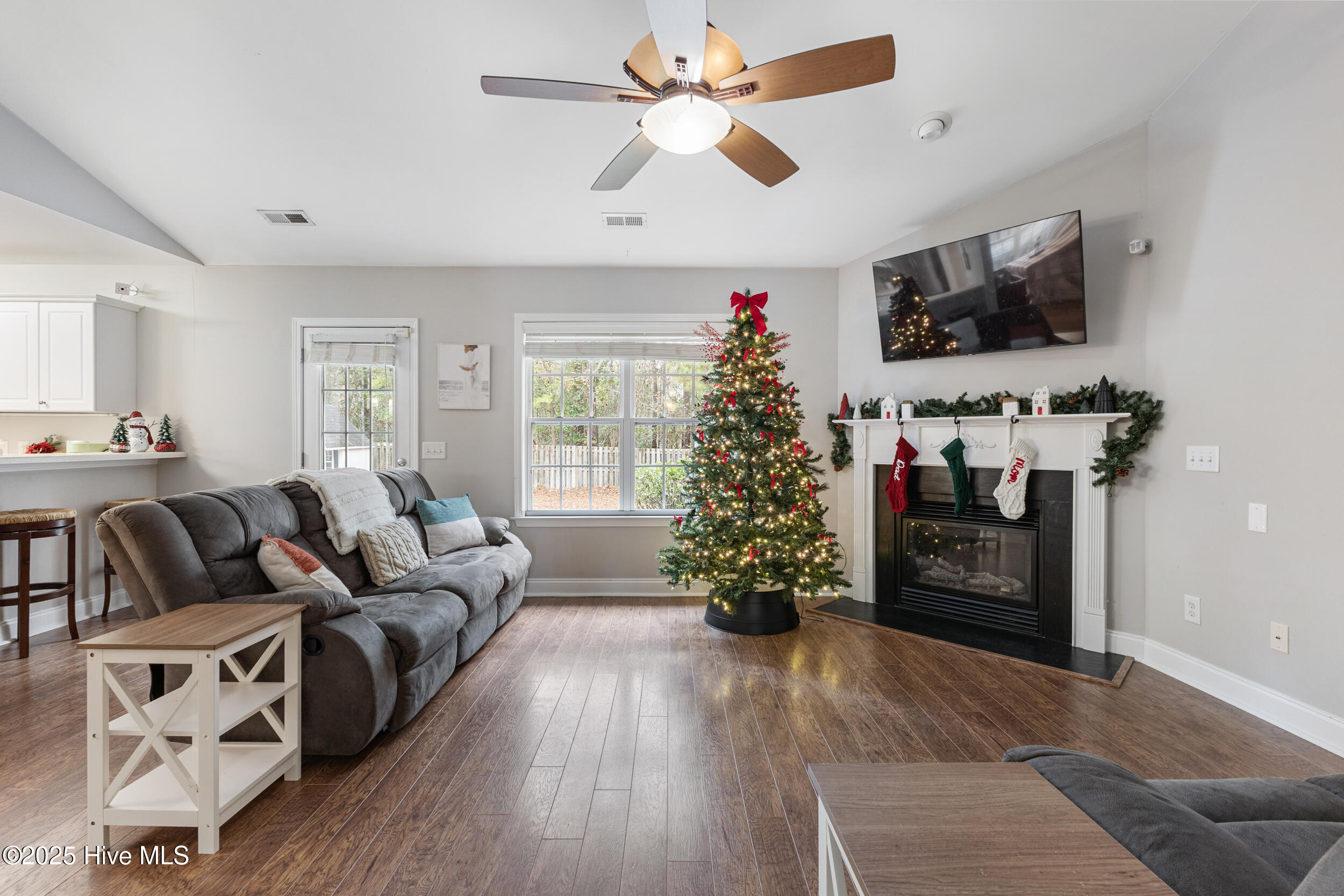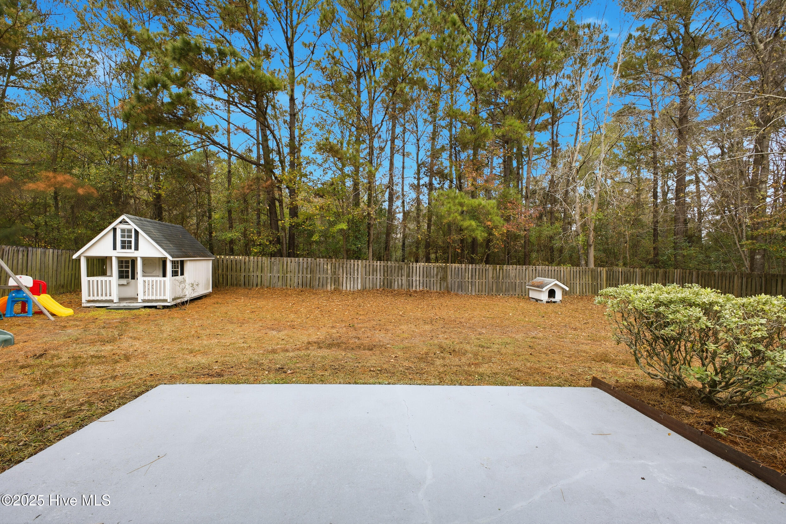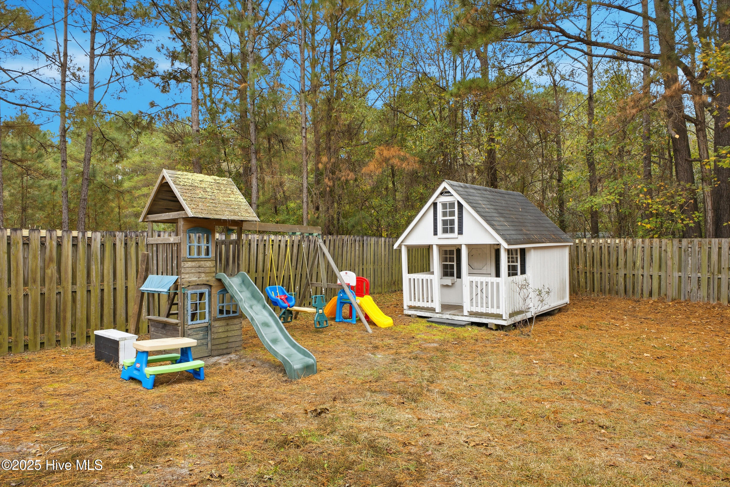 Discover this inviting 4-bedroom, 2-bath home, set on a generous .24-acre fenced lot in one of Leland's most loved neighborhoods. Just a short stroll from the community pool, this home offers an easy, comfortable lifestyle in a truly charming setting. Step inside to an open living, dining, and kitchen layout filled with natural light and easy-care LVT flooring. The kitchen features a new refrigerator, microwave and dishwasher while the home's thoughtful layout places two guest bedrooms and a full bath on one side for privacy, with the primary suite tucked quietly away on the other. The primary retreat includes dual closets, a soaking tub, walk-in shower, and double vanities. A dedicated laundry room with cabinet storage keeps everything tidy, and the upstairs 4th bedroom could also make a great office, or bonus play space. Outside, enjoy a fully fenced backyard, gutter leaf guards, established landscaping, and plenty of room to garden or play. The adorable wired playhouse—with a chandelier and its own mini-split—adds a unique touch families and guests will adore. Wedgewood at Lanvale is known for its warm community spirit, holiday events, neighborhood strolls, sidewalks, ponds, yard sales, and fun gatherings around the community pool and playground. All of this is just minutes from shopping and dining, and an easy drive to Downtown Wilmington or the BEACH.