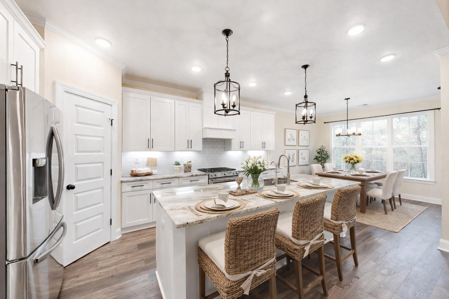 Stunning One-Level Living with Flex Space that could be a 5th bedroom with a private full bathroom! Welcome to your dream home, this exquisite 4-bedroom, 3.5-bathroom residence is perfectly situated on over half an acre! Step onto the expansive rocking chair front porch and through the gorgeous stained front entry doors into a beautiful foyer adorned with charming board and batten! The open floor plan boasts an inviting living room featuring a soaring vaulted ceiling, new upgraded ceiling fan, a cozy gas fireplace with shiplap detailing, and sliding glass doors that seamlessly connect to a screened porch - perfect for enjoying the beauty of indoor/outdoor living! The heart of the home is the gourmet kitchen, equipped with a massive island with bar seating, stunning granite countertops, a stylish backsplash, a KitchenAid gas range, a sleek vent hood, a pantry, a 3-tier Whirlpool dishwasher, an under-mount Whirlpool microwave and the refrigerator stays! Enjoy casual meals in the bright breakfast room or host elegant dinners in the dining room, which features a beautiful coffered ceiling and board and batten detailing! Retreat to the main-level owner's suite, complete with two spacious walk-in closets and a luxurious bathroom that includes a double sink granite vanity, framed mirrors, a tiled shower, a relaxing soaking tub, and a convenient linen cabinet! Two additional generously-sized bedrooms are located on the main level, with a nearby full bathroom featuring a double sink granite vanity! Ascend to the huge upstairs flex room, perfect for a game room or home office, which includes its own private bathroom! Walk-in attic access, a half bath with a granite top vanity, and a well-appointed laundry room with ample cabinet space and an LG top-loading washer and an LG dryer! Walk-in attic access that is partially floor with plenty of storage room! Step outside to your private oasis! The lovely patio overlooks a landscaped, and fenced backyard that blends right into the beautiful nature surroundings, what an ideal for relaxation! Enjoy the convenience of an oversized side entry 2-car garage! The home is protected from the rain by professionally installed gutters fitted with leaf filters! Throughout the home, many improvements and upgrades have been made by the current owners - Interior Upgrades: In December 2024, a brand new dishwasher, kitchen refrigerator, washing machine and dryer were installed! The interior living spaces were professionally painted in Spring 2025! New light fixtures and ceiling fans were installed in most rooms, complete new property fence was professionally installed in September 2025, an upgraded on-demand high capacity tankless hot water system was added, and new comfort-height commodes were installed in two bathrooms! Automatic lights were installed in the laundry room and the adjacent hallway - a huge help when you have your hands full! Exterior Upgrades: The landscaping in the entire yard was renovated and upgraded! This included expanding the front and rear sprinkler systems, installing weed-blocking fabric in planters and replanting most flower beds. As you can see, the hard work has all been done for you to make this a most attractive, comfortable and well-functioning home, where maintenance is a breeze! Don't miss this great opportunity to own the delightful haven you've been searching for! Great location with easy access to SRS, Fort Gordon and much more!