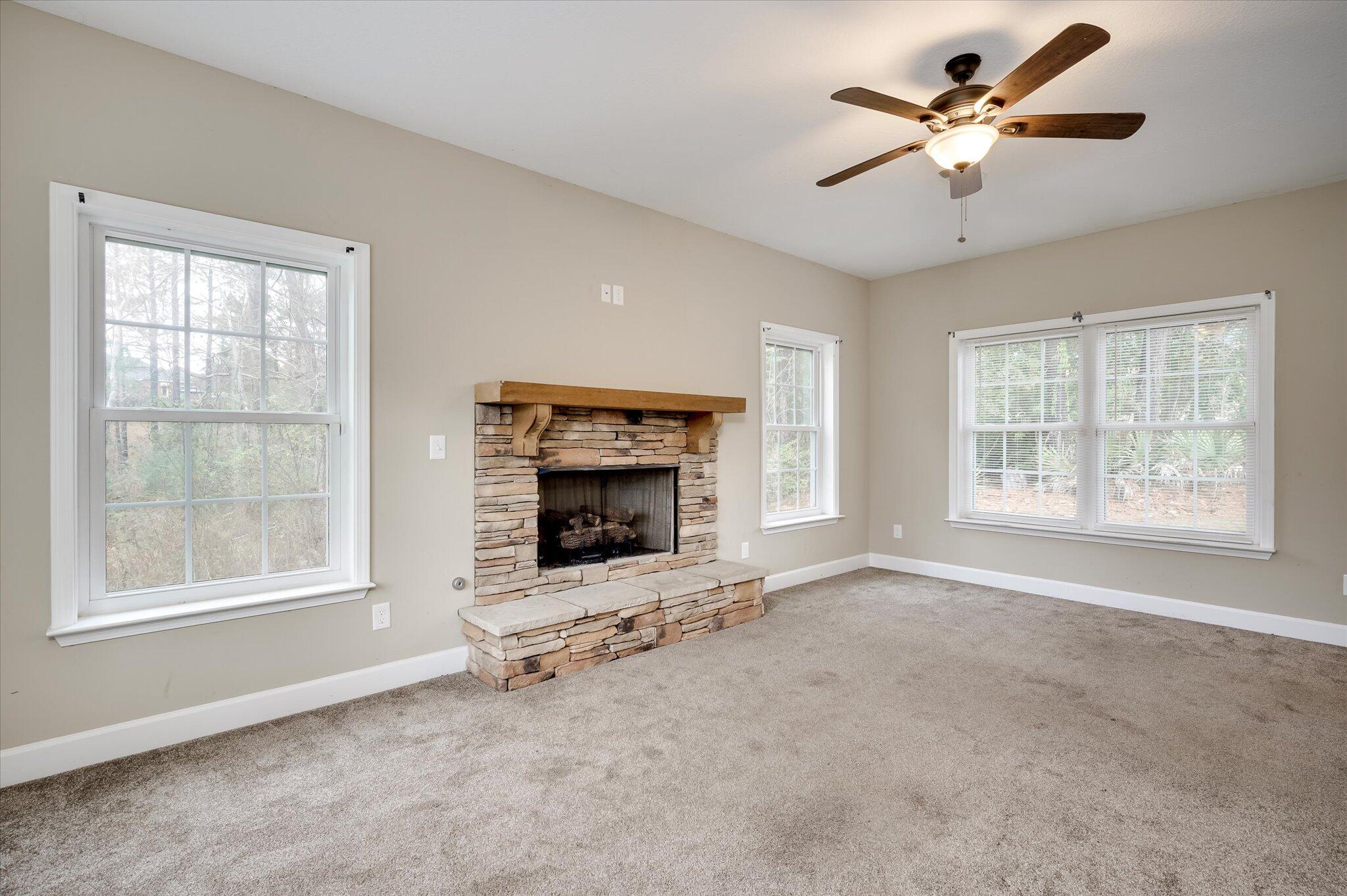 Waterfront lot home nestled on 2.55 acres in River Chase. Custom built in 2020, features 3 bedrooms with office. Spacious kitchen with large breakfast bar, stainless steel appliances, and tons of cabinets. Stack stone fireplace in keeping room just off kitchen. Sizeable Great Room perfect for entertaining. Owner Suite with nice walk-in closet, on suite with large soaker tub and walk in shower. Second and third bedrooms with ceiling fans. Side entry garage.