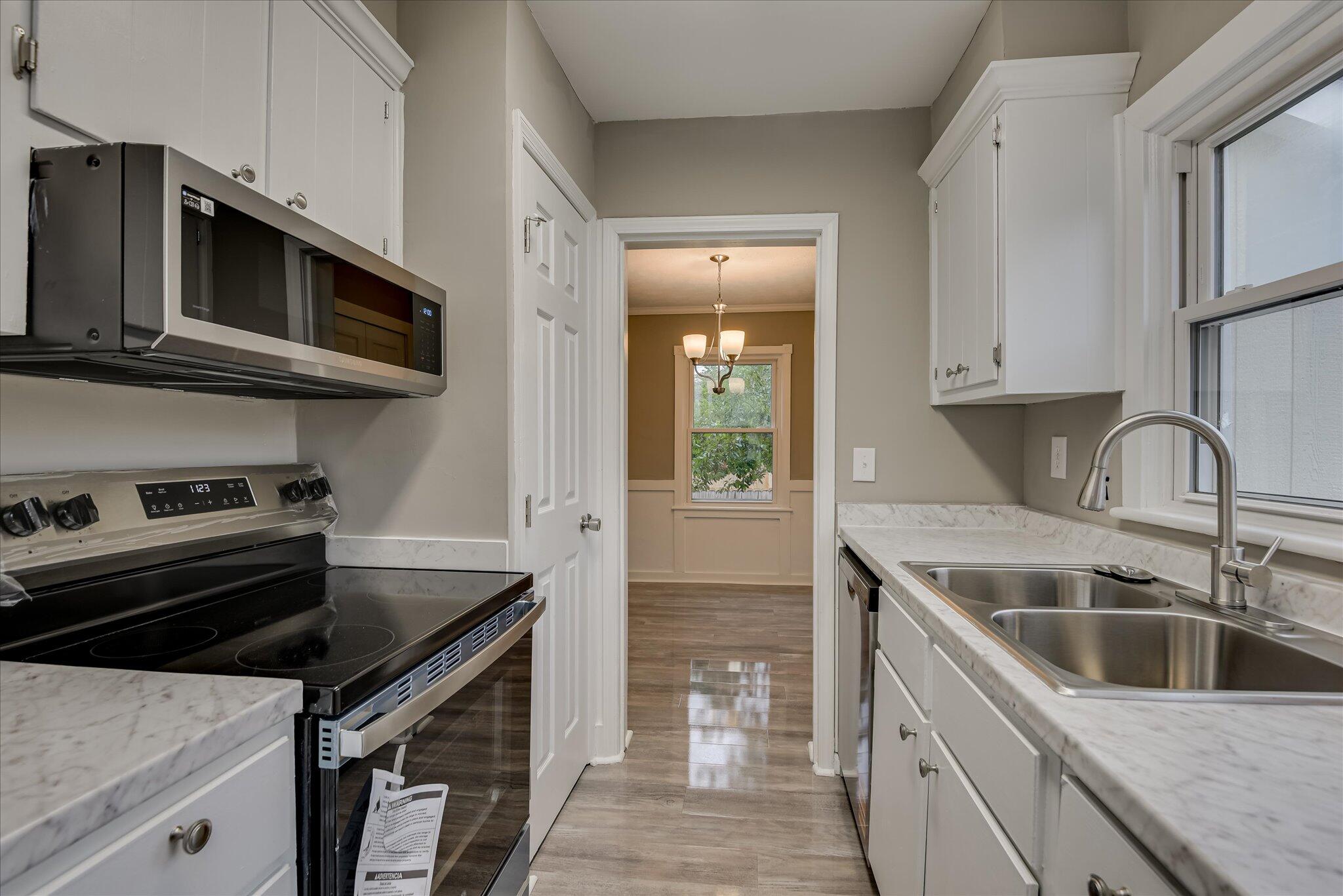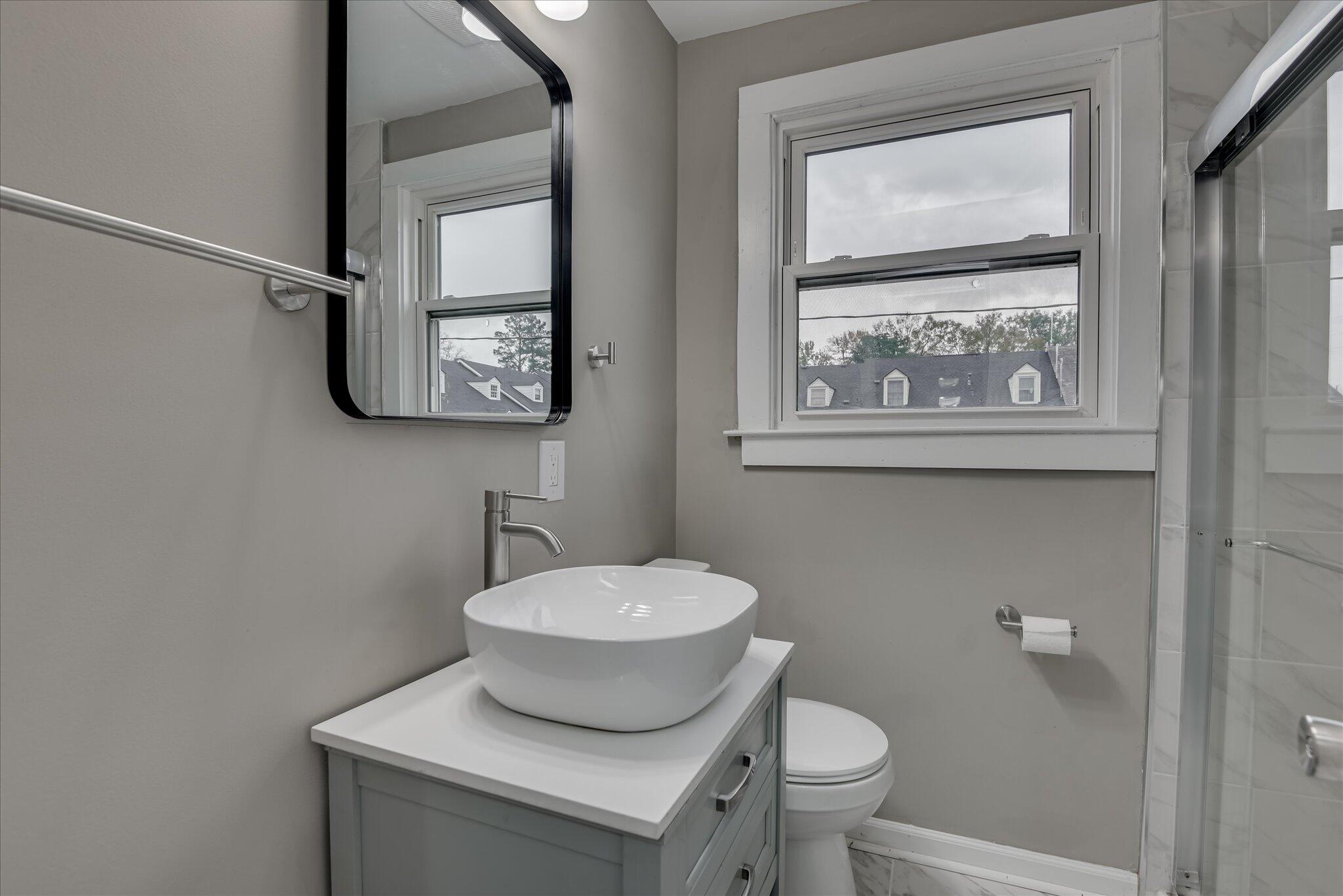 Welcome to your newly renovated condo, Unit B1, perfectly situated between Augusta University's Summerville Campus and the vibrant Surrey Center. This prime location places you just minutes from downtown, the medical district, an array of restaurants, shopping destinations, and picturesque parks. Step inside to discover a thoughtfully designed space that blends modern convenience with stylish updates. The main level features an open and airy living room that flows seamlessly into the dining area and kitchen, along with a lovely laundry room for added convenience. Recent renovations include beautiful luxury vinyl plank (LVP) flooring and fresh paint throughout, creating a bright and welcoming atmosphere. The kitchen truly stands out with striking white cabinetry accented by elegant stainless steel hardware, a double-basin stainless steel sink, and new countertops. A full suite of stainless steel appliances complements the contemporary design, making the kitchen both functional and aesthetically pleasing. Upstairs, you'll find two comfortable bedrooms and a beautifully renovated full bathroom with tile flooring. The bedrooms feature inviting plush carpet, adding warmth and comfort. The updated bathroom showcases a modern design with new tile, a stylish vanity, a commode, and a walk-in tile shower with a glass shower door, offering a spa-like retreat. Additional features include a private courtyard—perfect for relaxing or entertaining outdoors—and a reserved parking space at the rear of the building. Monthly association fee covers essential services such as water, trash pickup, and termite control, ensuring a hassle-free living experience. With its modern updates, thoughtful design, and unbeatable location, this condo is an ideal choice for anyone seeking a stylish and convenient home in the heart of Augusta.
