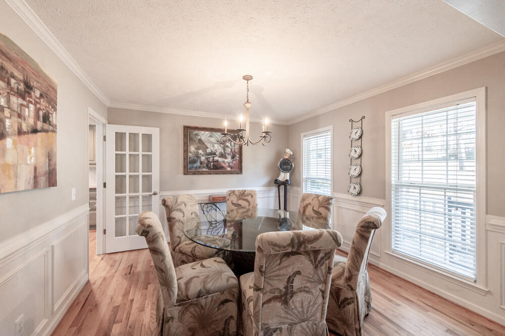 Welcome home to this 3 bedroom + bonus room, 2 bath home perfectly situated on a corner lot with mature landscaping and timeless curb appeal and no HOA! A rocking chair front porch invites you inside, while a side-entry two-car garage adds both convenience and charm! Step into an open, light-filled floor plan featuring hardwood floors throughout! The elegant dining room with wainscoting flows seamlessly into the kitchen through a stylish glass-paneled door, ideal for both everyday living and entertaining or use as a home office! The spacious living room boasts a vaulted ceiling, fireplace, ceiling fan, and abundant natural light, opening effortlessly to the kitchen! The kitchen is a true centerpiece, offering granite countertops, a center island with bar seating, tile backsplash, 6-burner gas stove, refrigerator, dishwasher, pantry, ceiling fan, and a sunny breakfast area overlooking the backyard! The owner's suite provides a peaceful retreat with a vaulted ceiling and ceiling fan, while the ensuite bath features a double sink vanity, soaking tub, and separate shower! Two additional bedrooms include ceiling fans and share a full hall bath with double sink vanity! An additional bedroom or flex room with a vaulted ceiling and ceiling fan offers endless possibilities for an office, guest room, or play space! Enjoy outdoor living with a backyard garden and deck, perfect for relaxing or entertaining! A laundry room with extra storage completes this thoughtfully designed home - where comfort, style, and functionality come together beautifully! No HOA! Great location with easy access to SRS and all Aiken has to offer!