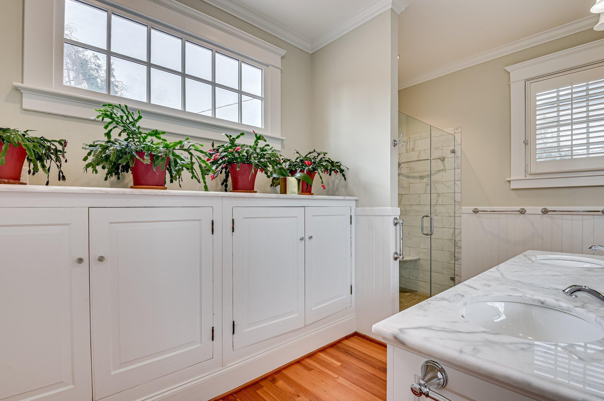 Beautiful updated 3bd/3bth classic Summerville home with all the charm of high ceilings, hardwood floors, oversize windows, plantation shutters, and three fireplaces. 2700 heated sq ft in main house with an additional 863 sq ft 1 bd/1bth detached guest cottage. Tasteful renovations preserving the character of the home make this a gem. Delightful large screened porches front and rear with ceiling fans offer space for outdoor dining and rocking chair days. The owners suite and a second bedroom are on the main level, large upstairs bedroom has its own bath with lots of additional space for creative and customized use. Updated country kitchen with white cabinets, black countertops and tiled backsplash offers a gas cooktop, built-in microwave and stainless sink. Refrigerator and W/D stay! The redesigned tile bathrooms are gorgeous, and you'll be pleased with the size and function of the closets and laundry area in a home of this age. The guest cottage is fully equipped with kitchen and laundry, has its own screened porch, and rents for 1400 a month! A brick driveway and stone patio within a fenced yard completes this handsome property. Walking distance to Summerville Campus of AU. In a popular family neighborhood. Call today for your private showing.