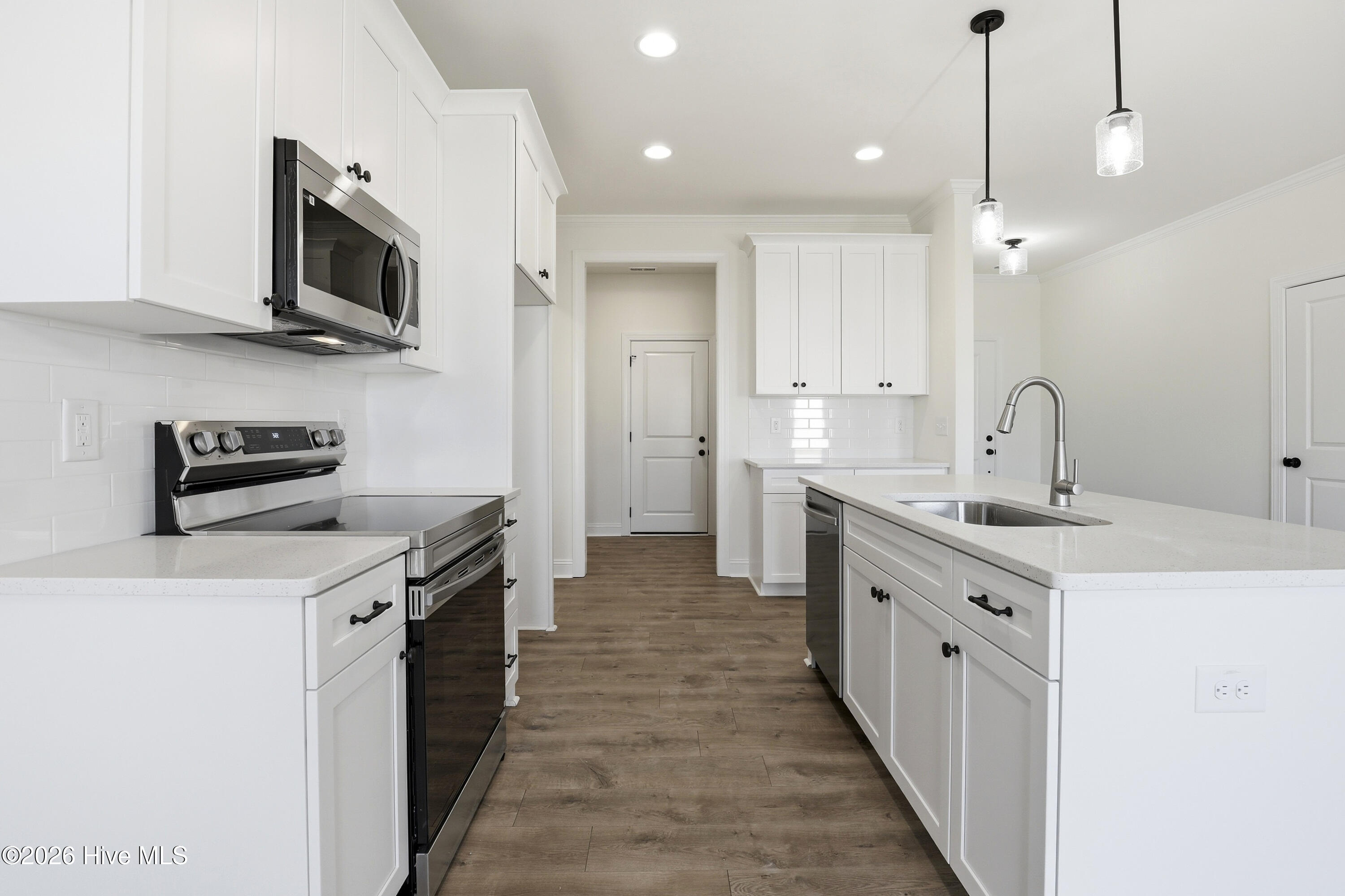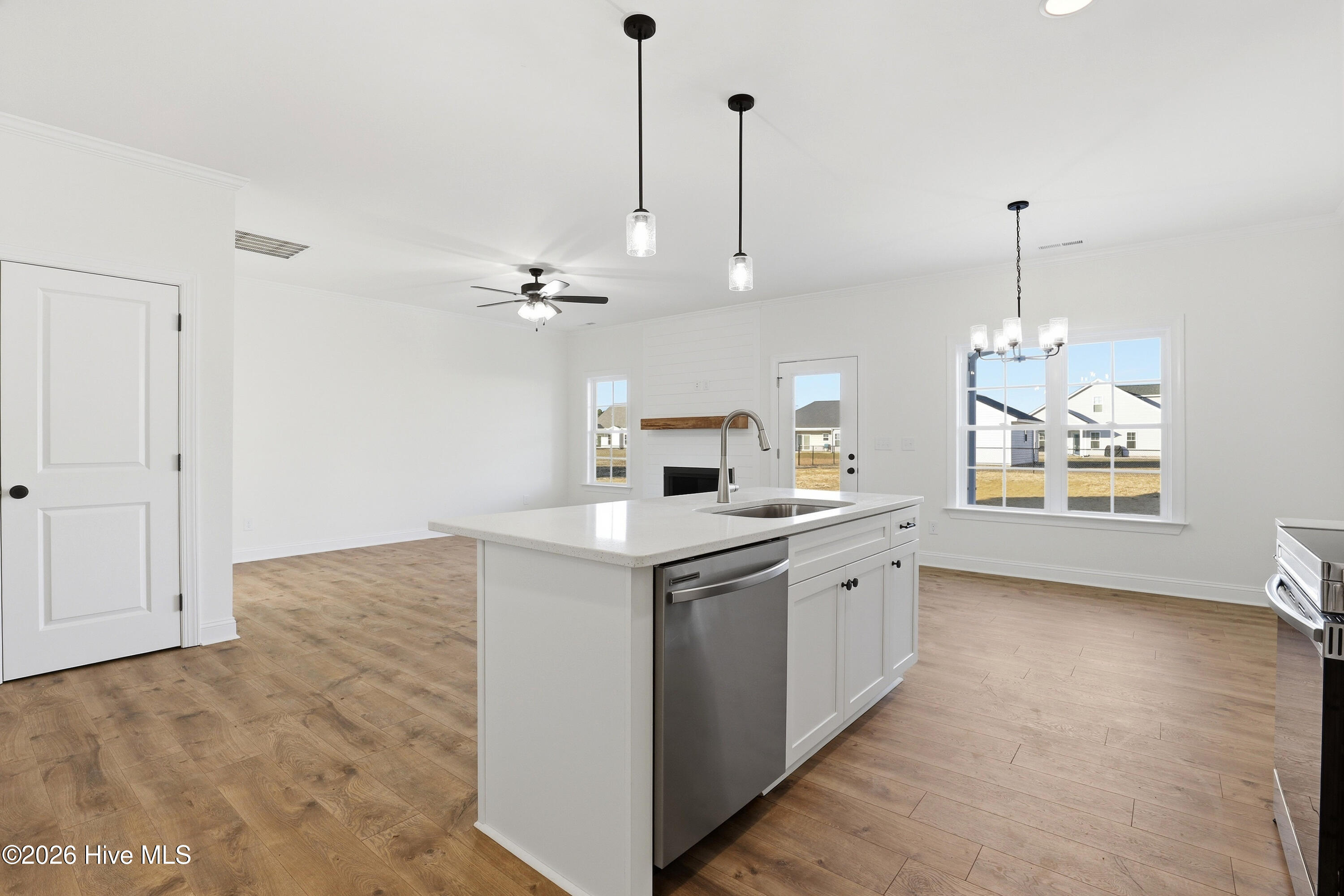 3 BDR, 2 BA Split Bedroom Home sits on .38ac cul-de-sac lot in Edgerton Farms Estates. Open Floorplan with Large Family Room featuring a gas Fireplace!! Designer Kitchen with Granite Countertops, Undermount Stainless Steel Sink, Tile Backsplash, Stainless Appliances, ISLAND and PANTRY!! Sunny Dining Area. Primary Bedroom with TWO Walk in Closets. Primary Bathroom with Dual Vanity and Step in Shower. 2 more Bedrooms with Great Closets. Spacious laundry room!! Enjoy the Outdoors on the Covered Porch overlooking the .38 ac Yard!! This ranch is the perfect place to call home!!