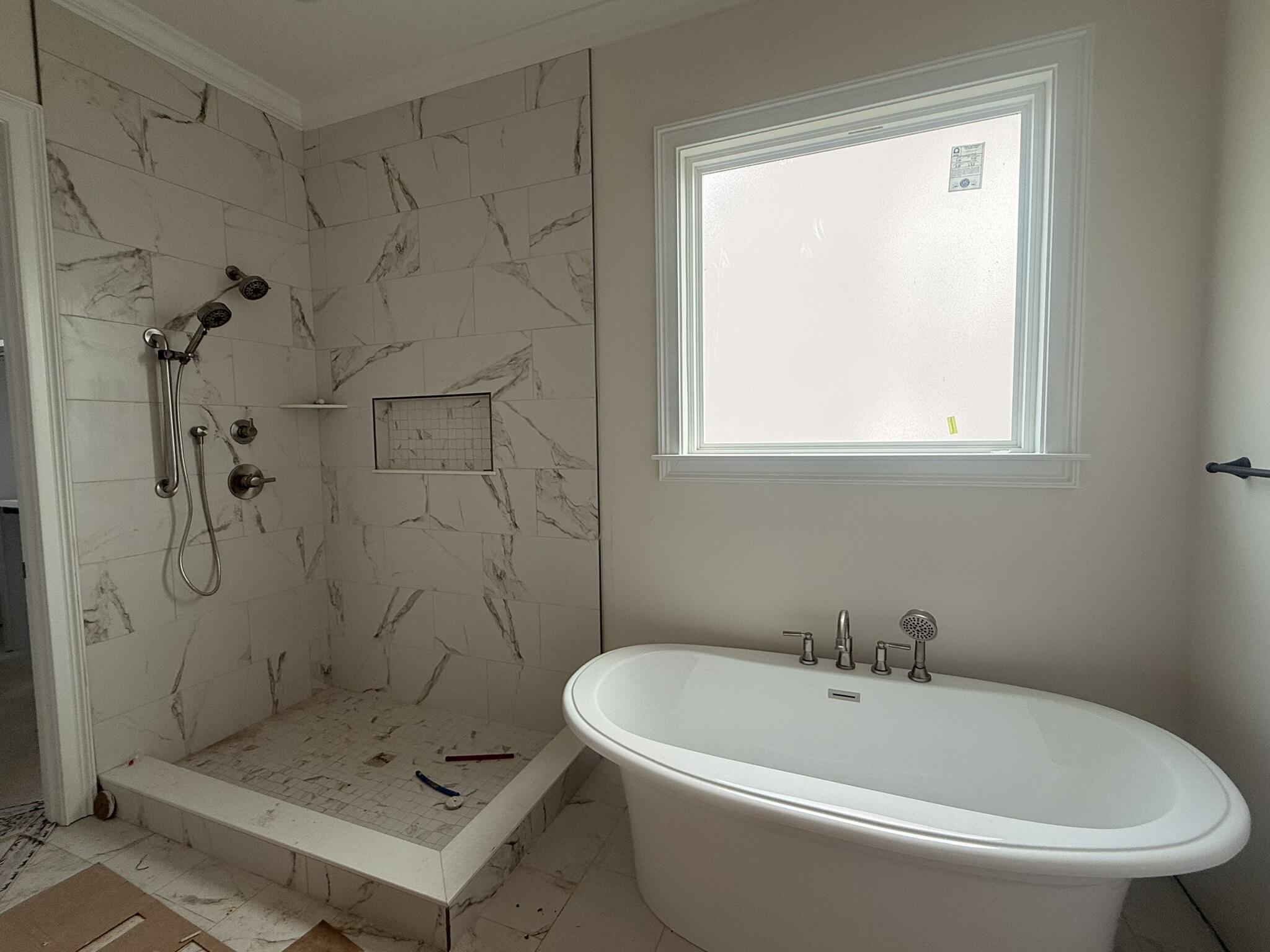 Stunning new home built by Southeastern Family Homes! The Tea Olive is a beautiful floor plan with the primary suite and a guest suite on the main level! Welcoming and spacious great room with decorative beams and gas fireplace. Open living floor plan flows from the great room to the dining area and fully equipped kitchen with island, custom cabinetry, gas range, double ovens. Laundry room, mudroom, and walk in pantry are all adjacent to the kitchen. The luxurious primary suite has a freestanding tub, walk in tiled shower, double sinks, and walk in closet. Decorative beams flow through the primary suite as well. Upstairs there are three more bedrooms with two baths and a loft area. Hardwoods throughout the main living areas and stair treads. 10 foot ceilings and 8 foot doors on main level. Front and back covered porches. Fully landscaped front and back lawns with sprinkler system and privacy fence. Located in award winning Riverside/Greenbrier school zone! Convenient location to recreation, schools, and Evans Towne Center! Under Construction and Expected Completion around Spring 2026.