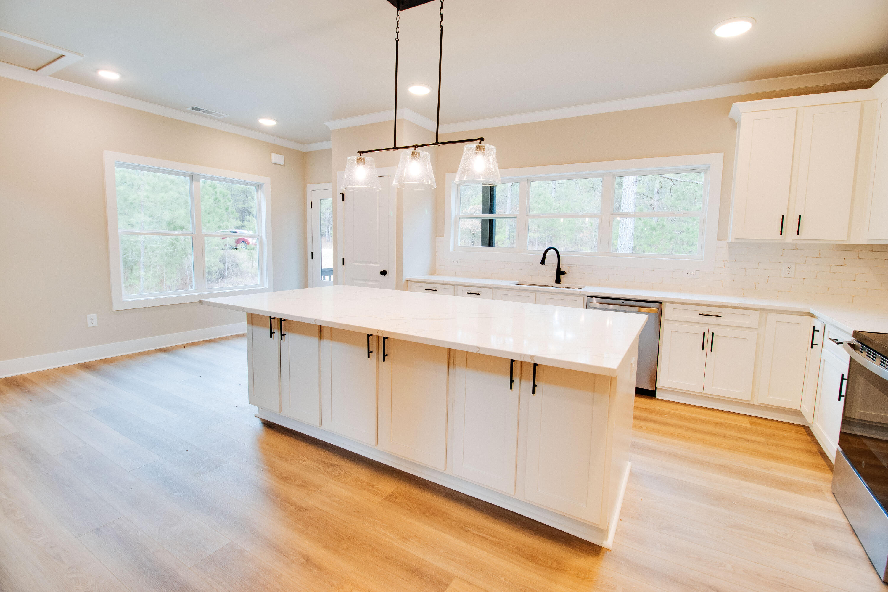 Welcome to this brand new construction in the sought-after Stillwater Coves community on Clarks Hill Lake, where modern design meets lakefront living. A covered entryway welcomes you into a bright foyer that opens to an airy, open-concept floor plan filled with natural light. The heart of the home is the oversized kitchen, thoughtfully designed with abundant counter space, modern appliances, and a spacious layout that flows seamlessly into the massive living room—perfect for everyday living and entertaining alike. The primary suite, tucked away on the back left side of the main level, offers a private retreat with a direct entrance to the screened-in back porch, ideal for enjoying peaceful lake views and morning coffee. Two additional bedrooms and a full bath complete the main floor, providing comfort and flexibility for guests or family. Upstairs, you'll find two more generously sized bedrooms, a full bath, and a mechanical room with extra storage space, adding both function and convenience. Situated on a dockable lot with direct access to Clarks Hill Lake, this home offers the perfect blend of luxury, space, and outdoor enjoyment in one of the area's fastest-growing lake communities. Don't miss the opportunity to make this beautiful new lakefront home your own.