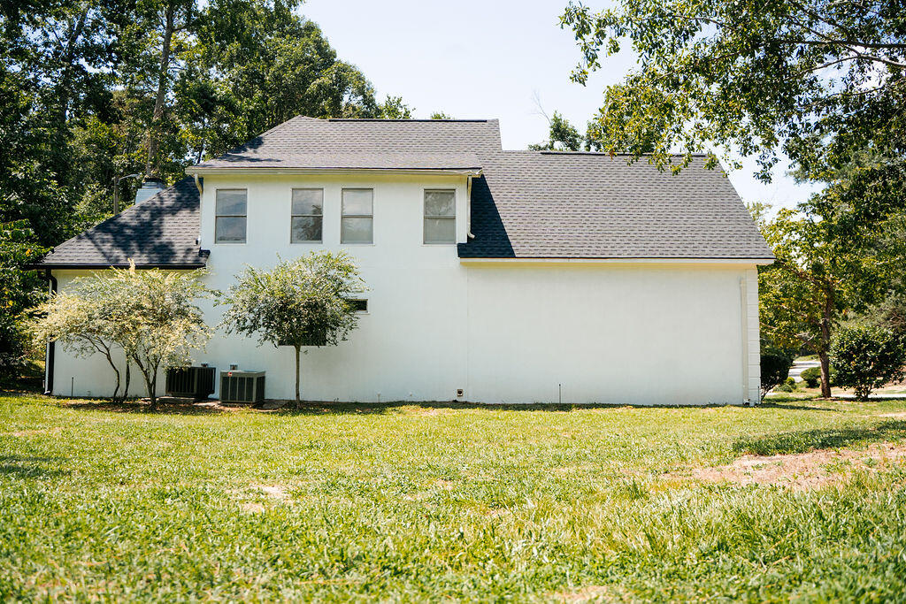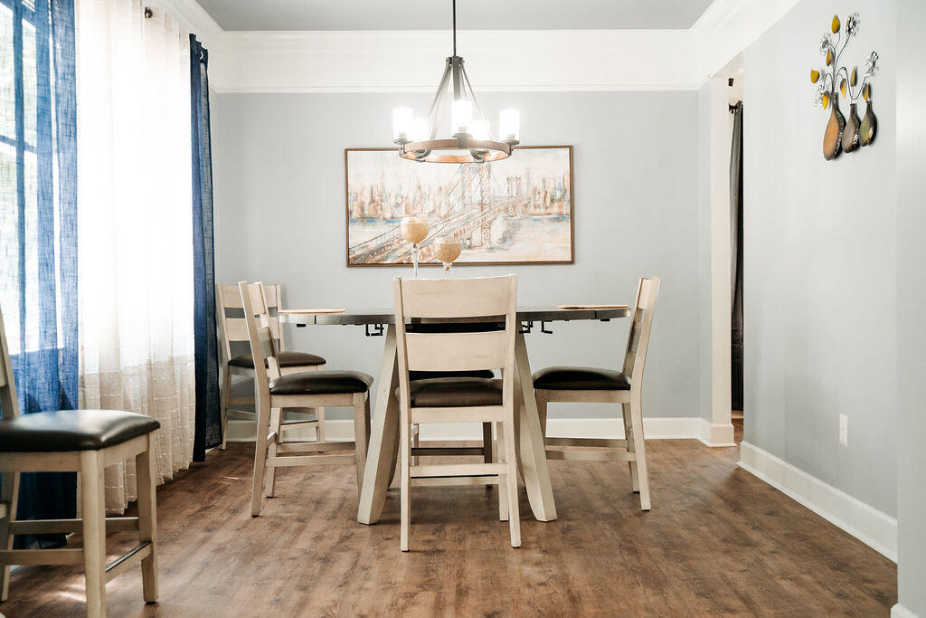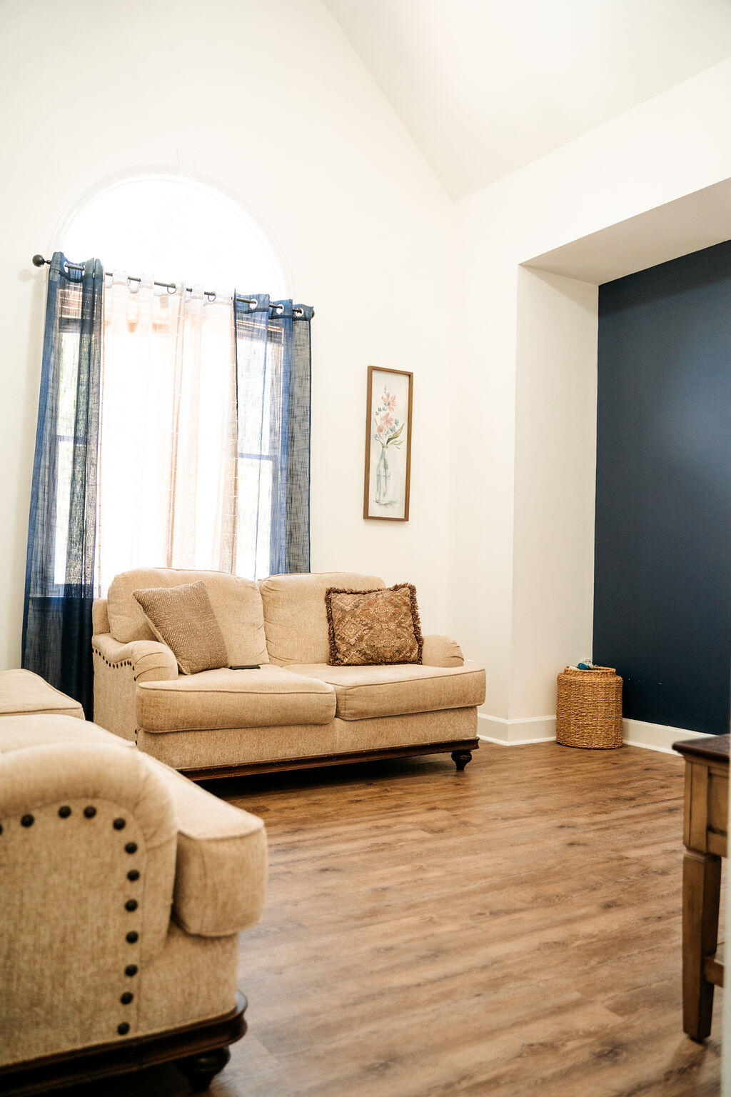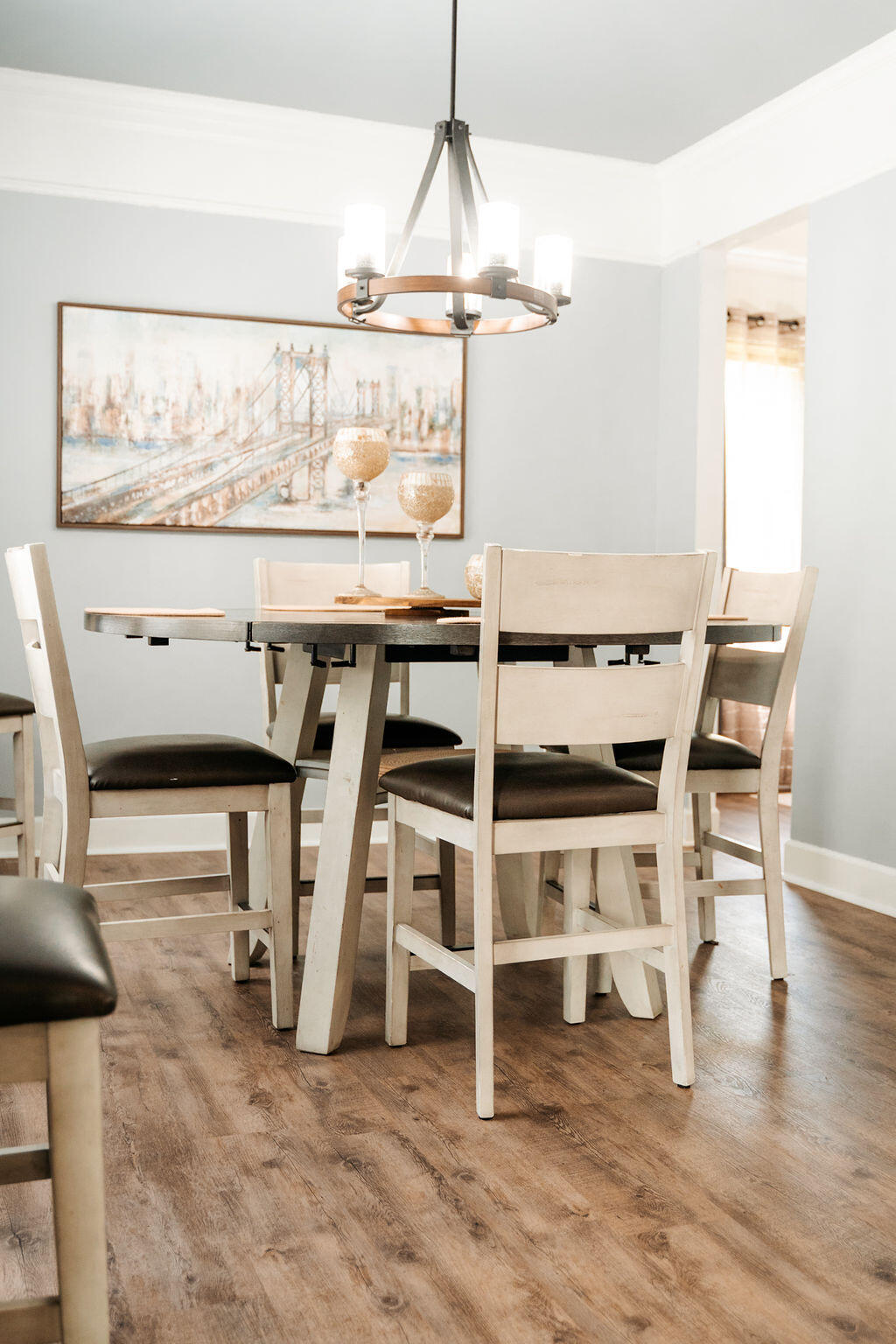 Experience the rare comfort of room to breathe in this immaculate, beautifully updated home set on nearly two wooded private acres. With over 3,100 square feet, four bedrooms, and 2.5 baths, this home offers space that feels both generous and welcoming. Fresh interior and exterior paint, a brand-new roof, and new flooring throughout mean you can move right in and start enjoying it from day one. The kitchen is a true standout, featuring new granite countertops, a designer backsplash, stainless steel appliances, and abundant cabinetry, flowing naturally into a formal dining area made for meaningful gatherings. A grand foyer opens to a sun-filled family room with soaring ceilings and a wood-burning fireplace that invites you to slow down and stay awhile. The main level also includes a flexible room for an office or play space, a convenient laundry area, and a well-appointed primary suite. Upstairs, three spacious bedrooms provide comfort and versatility. Outside, a large deck surrounded by mature trees creates a peaceful retreat with privacy you'll appreciate every day. A two-car garage and ample storage add function, while the location offers quiet living just minutes from shopping, dining, and the military base. This home delivers updates, space, and value in a way that's hard to find.