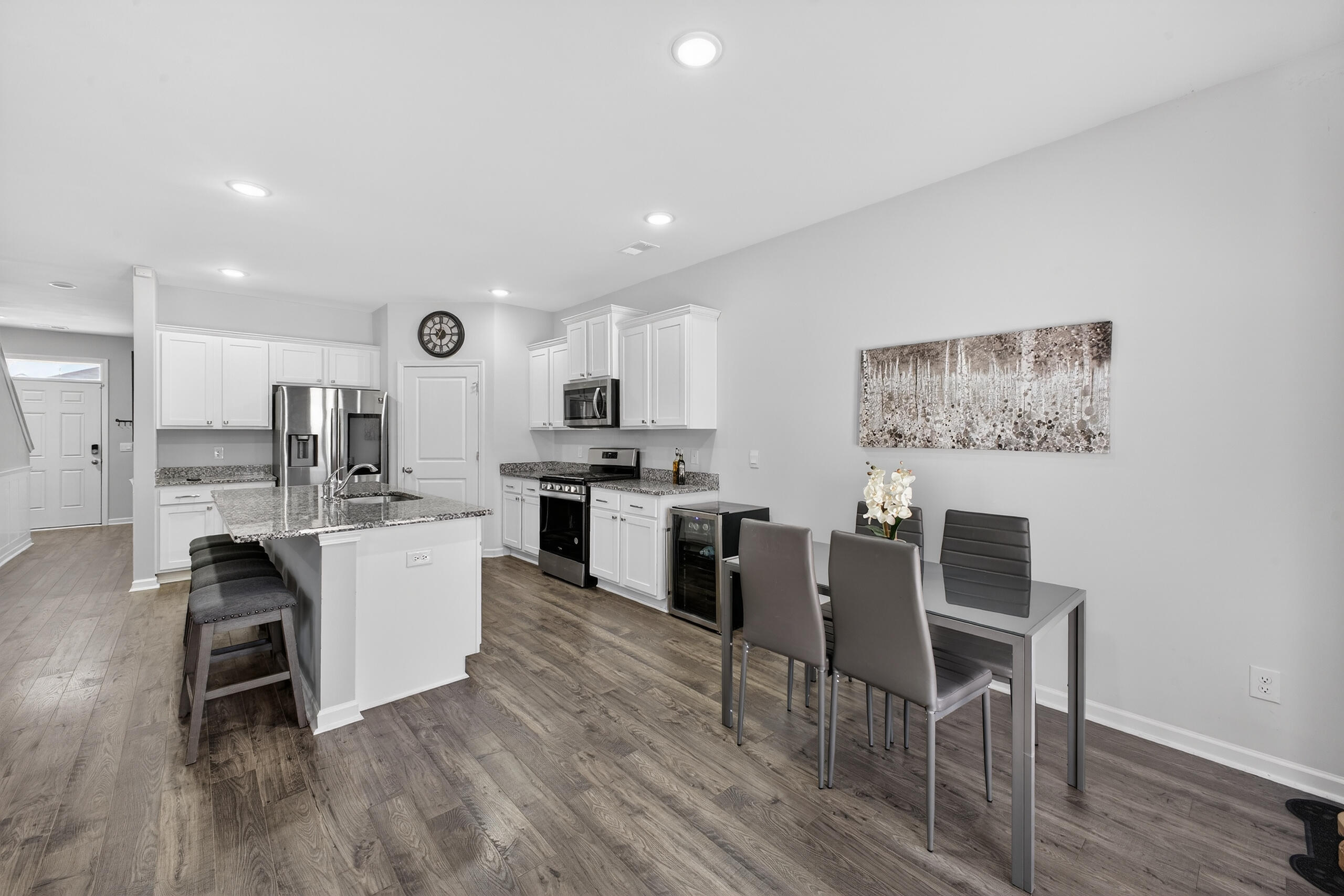 .Move-in ready and thoughtfully upgraded, this modern home built in 2023 offers the feel of new construction with added enhancements already in place. The open floor plan is filled with natural light and features spacious rooms designed for comfortable everyday living and entertaining. The kitchen includes a stainless appliance package highlighted by a smart-screen refrigerator, while additional upgrades include Deako light switches, integrated smart-home technology, security cameras, and an alarm system. Updated lighting and ceiling fans add both style and functionality throughout the home. Outside, enjoy a fully fenced backyard with upgraded landscaping and a private wooded backdrop, providing additional privacy and outdoor living space. Located in a community with a neighborhood pool, zoned for Mossy Oak Elementary School, and conveniently situated near Fort Eisenhower, shopping, and dining. All measurements, including square footage, are approximate and deemed reliable but not guaranteed. Buyer to verify