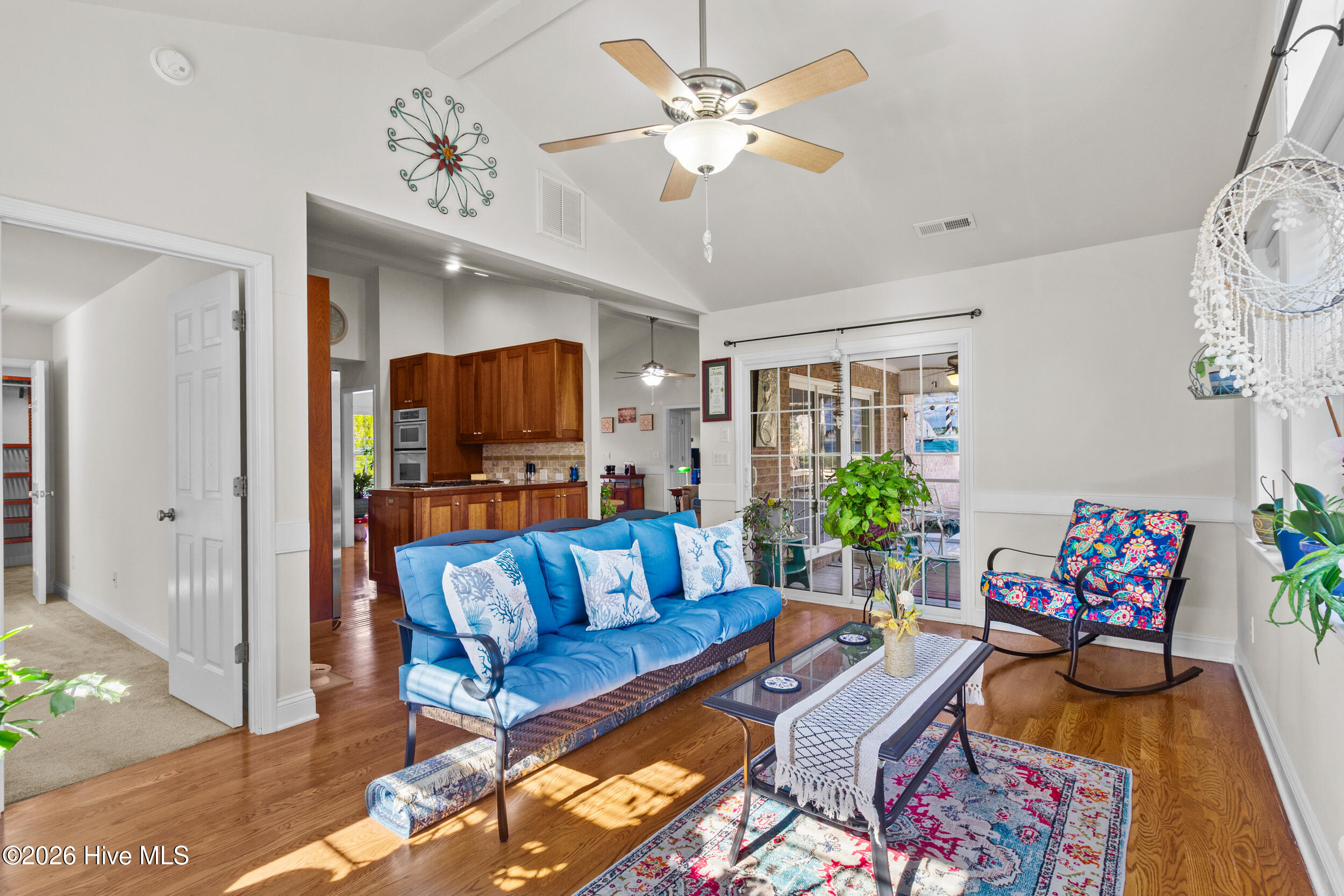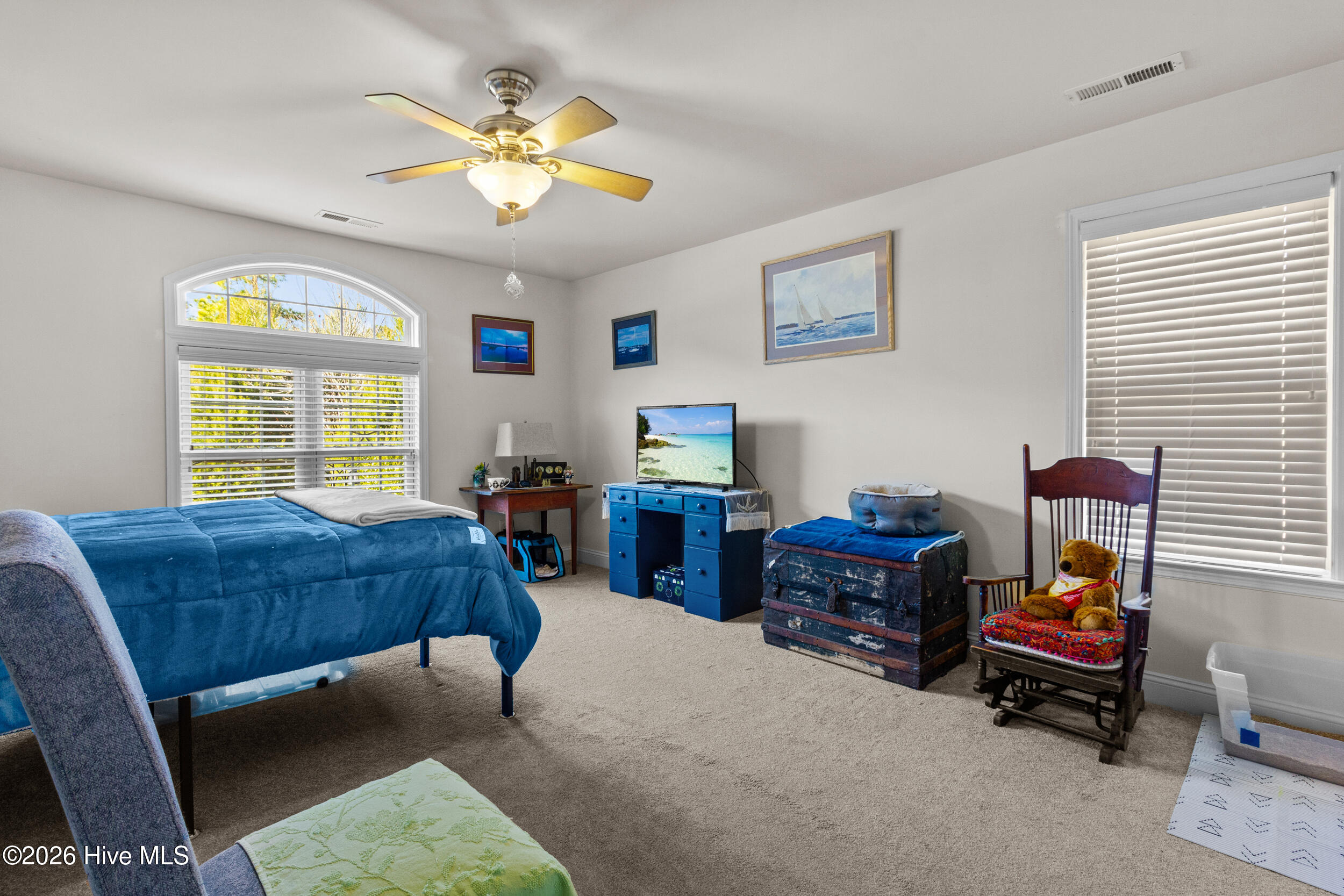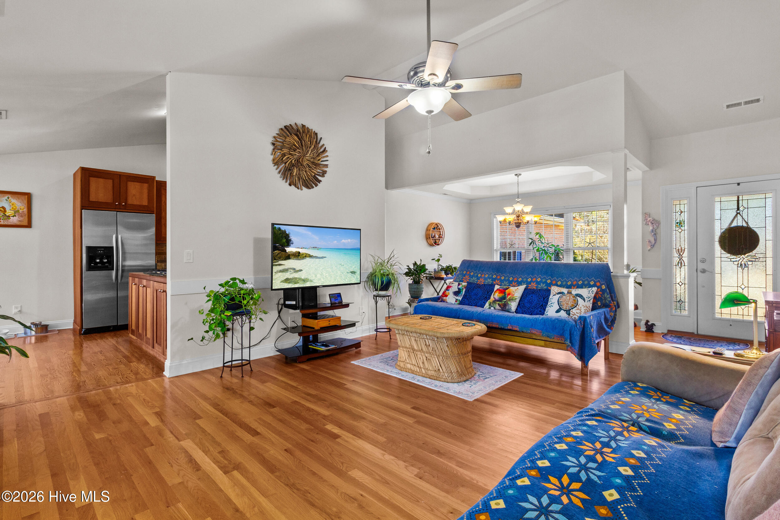 Beautiful brick home located in the desirable Fairfield Harbour community, offering a light and bright interior with a well-designed, open floorplan and minutes from downtown New Bern. Wood flooring highlights the spacious living room with vaulted ceilings, while the dining area flows seamlessly into the living space, creating an inviting setting for everyday living and entertaining. A separate family room provides additional flexibility. The kitchen features cherry wood cabinetry, stainless steel appliances, and a pantry, offering both style and functionality. Bedrooms are generously sized, with the main bedroom offering two walk-in closets and a private ensuite with dual sinks. A finished room over the garage (FROG) adds valuable living space and includes a full bath and walk-in closet, ideal for guests, a home office, or bonus room. Outdoor living is enhanced with a screened porch off the back, an additional grilling deck, and a large backyard with a stone patio—perfect for relaxing or entertaining. The attached two-car garage has been drywalled and includes extra storage space. Additional features include an eight-zone irrigation system and a water softener with reverse osmosis. Fairfield Harbour offers an exceptional lifestyle with waterfront access, fishing, golf, tennis, swimming, walking trails, a dog park, and a vibrant community with year-round social activities.